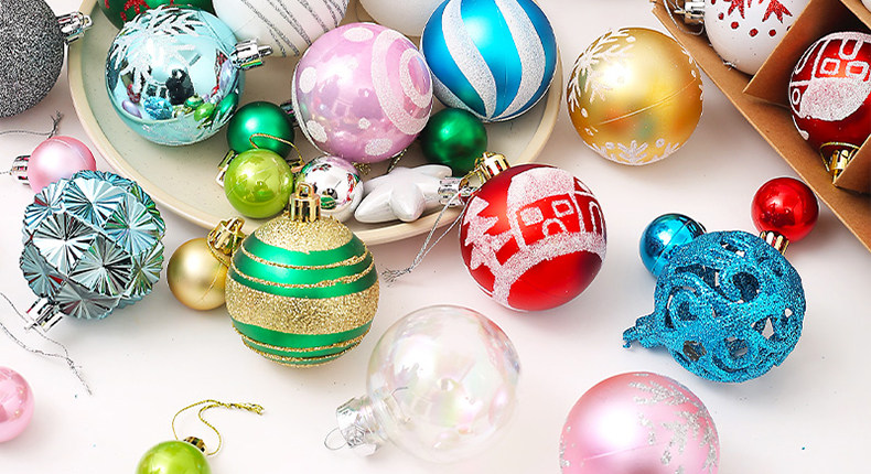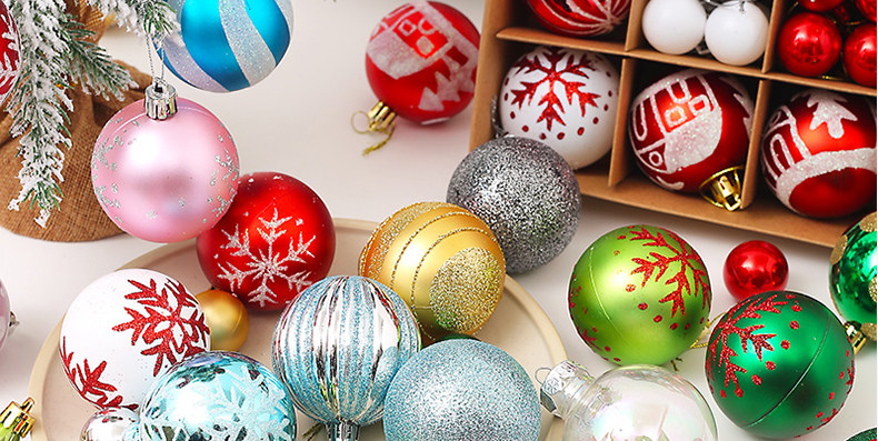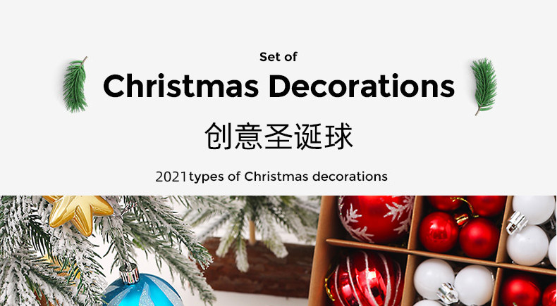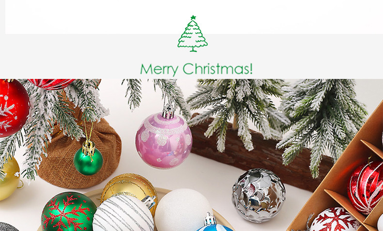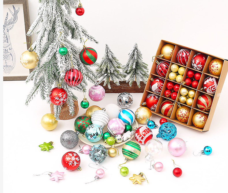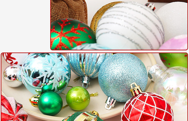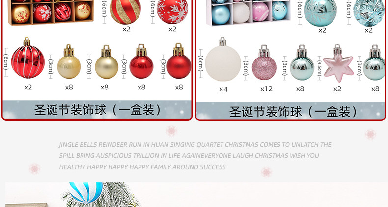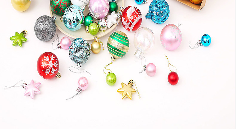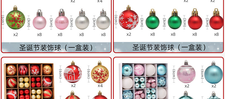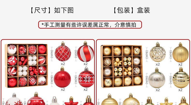 跨境现货盒装圣诞球挂饰6CM电镀异形彩绘礼盒套装圣诞树吊球挂件