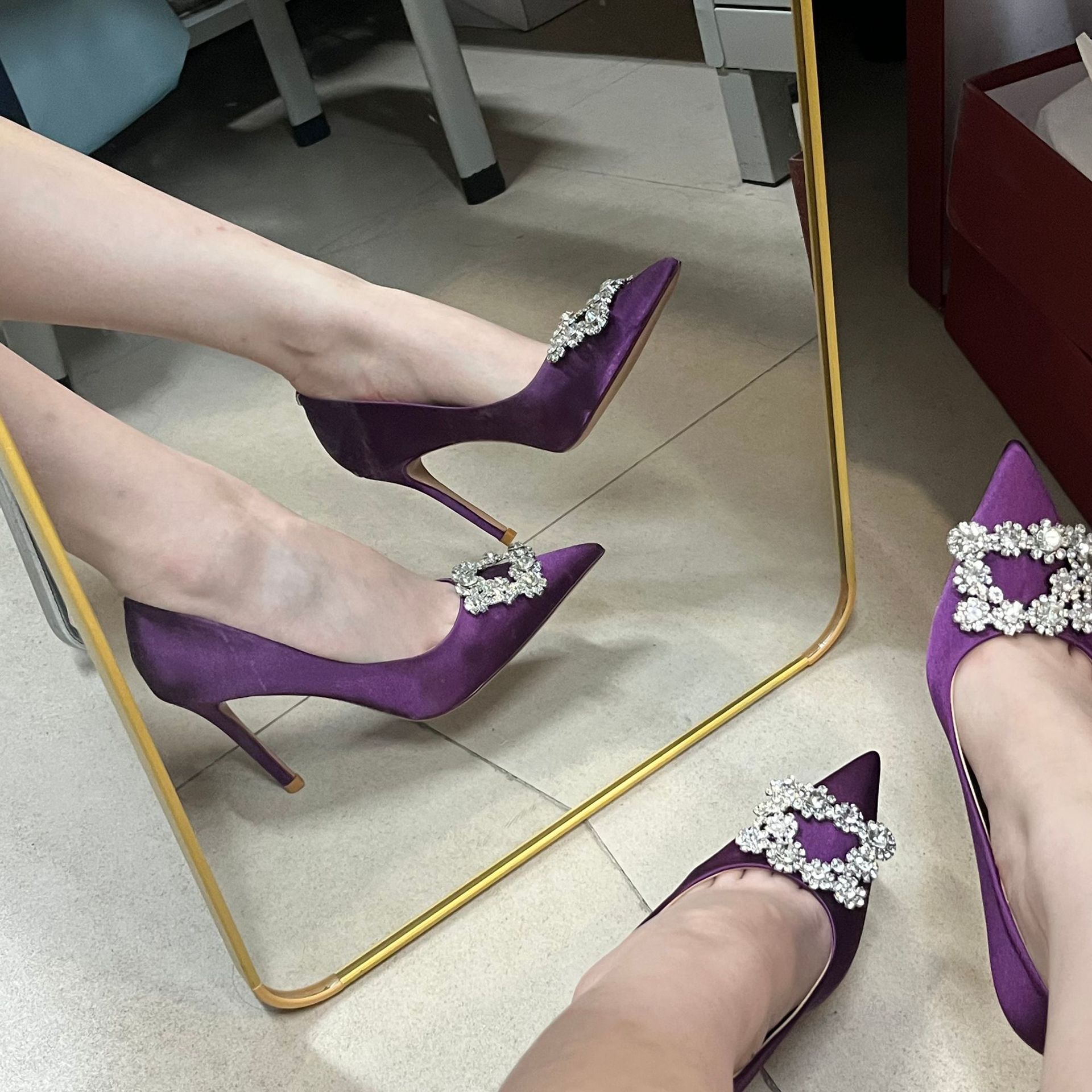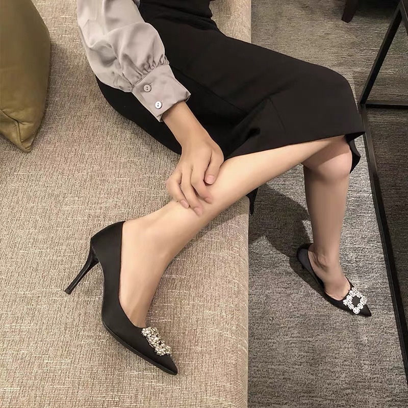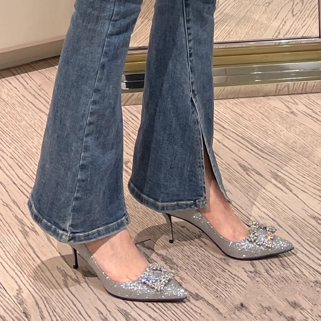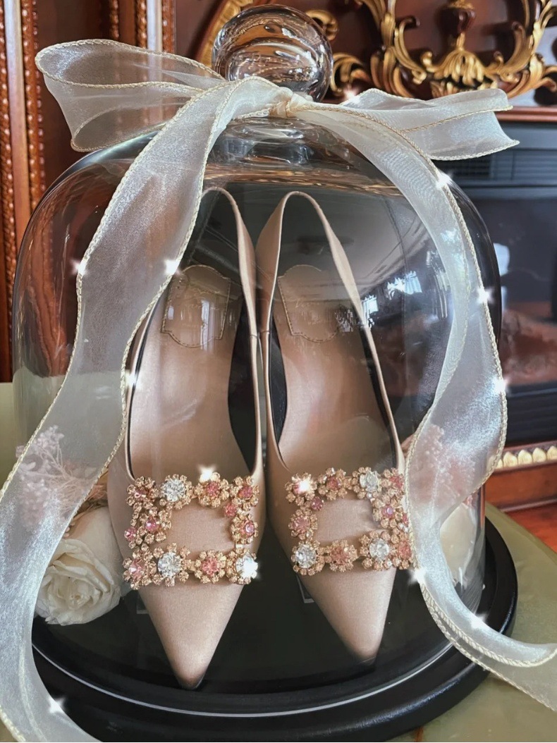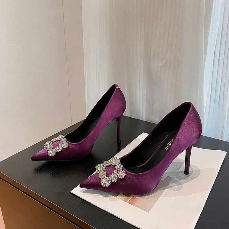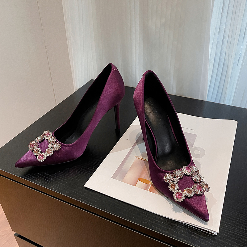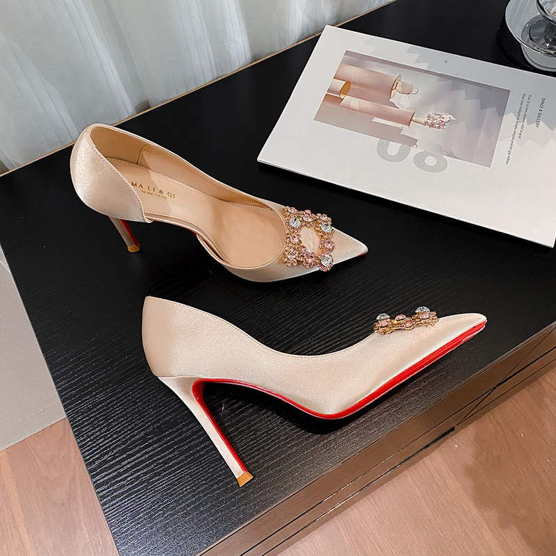 现货2025年秋季新款水钻方扣单鞋女尖头细跟新娘伴娘新娘鞋高跟鞋