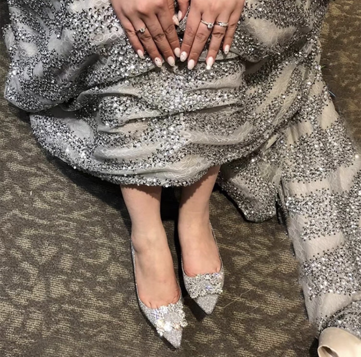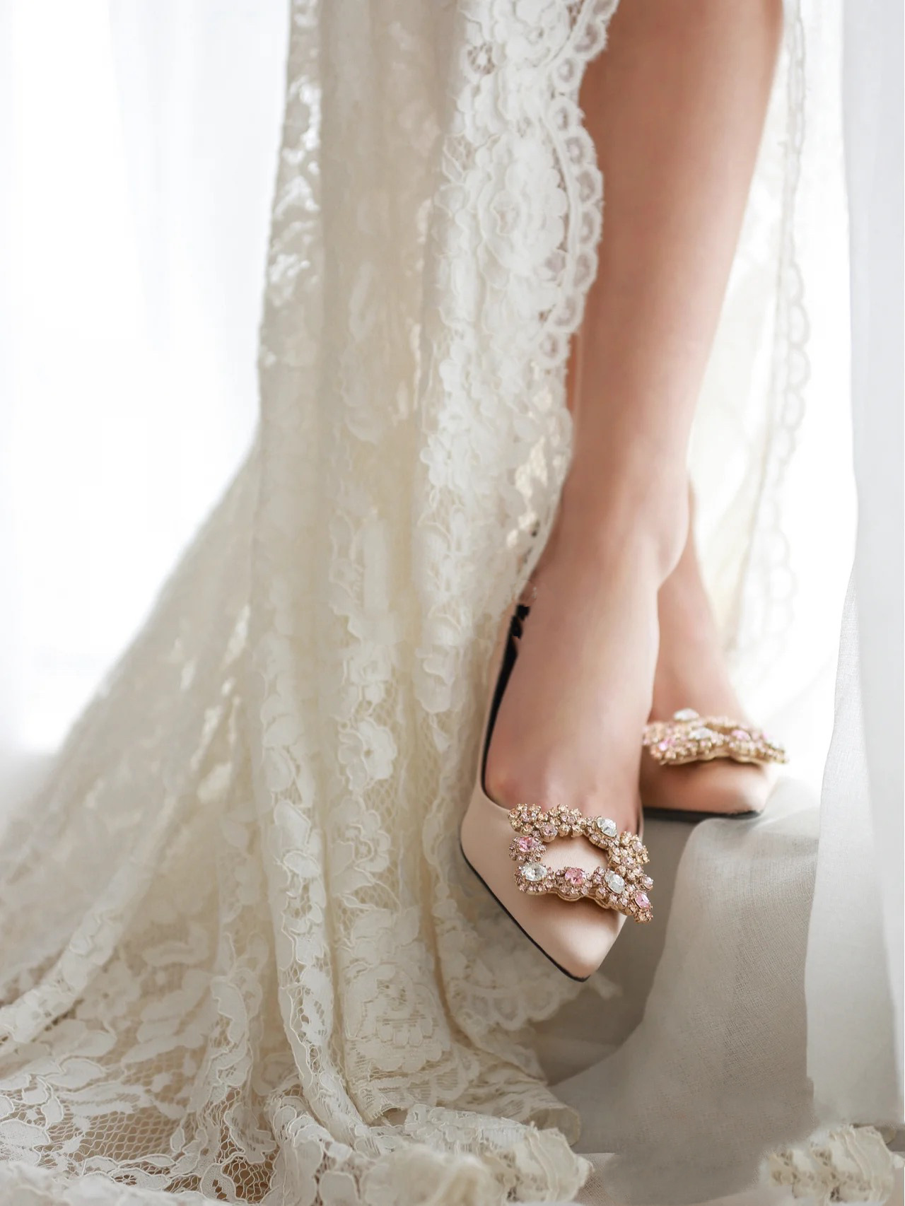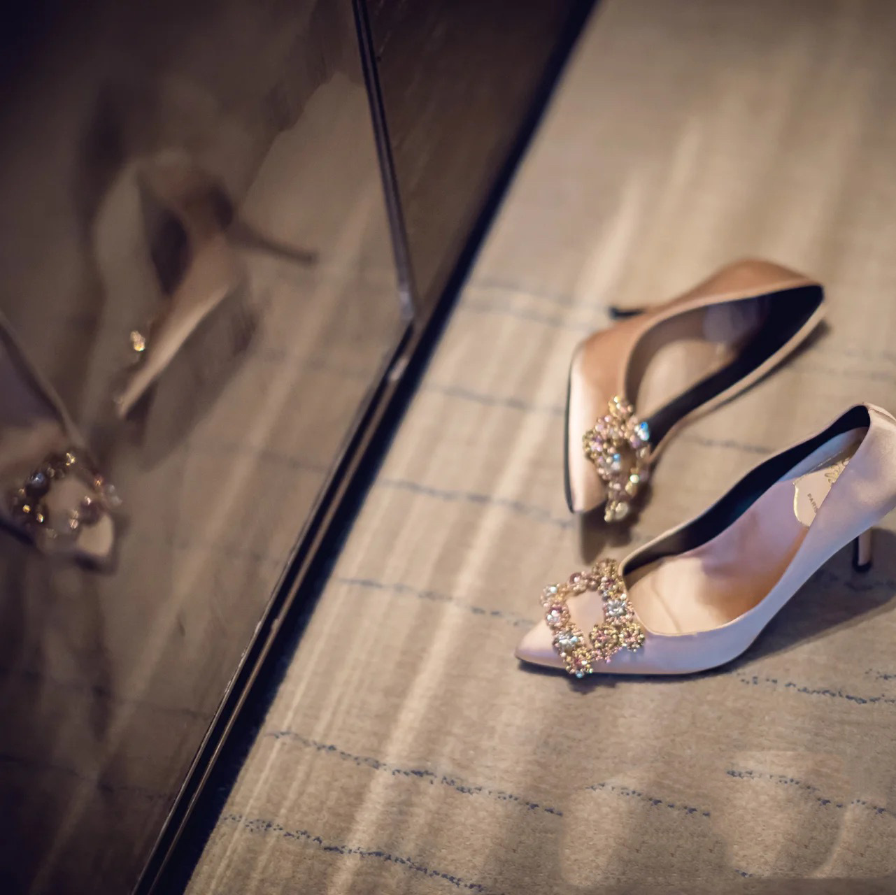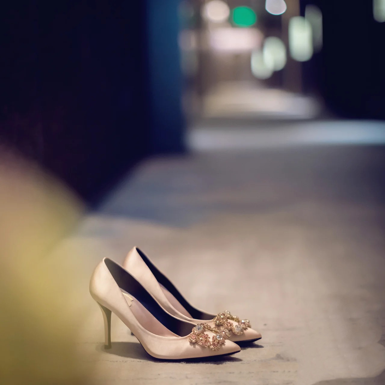 现货2025年秋季新款水钻方扣单鞋女尖头细跟新娘伴娘新娘鞋高跟鞋