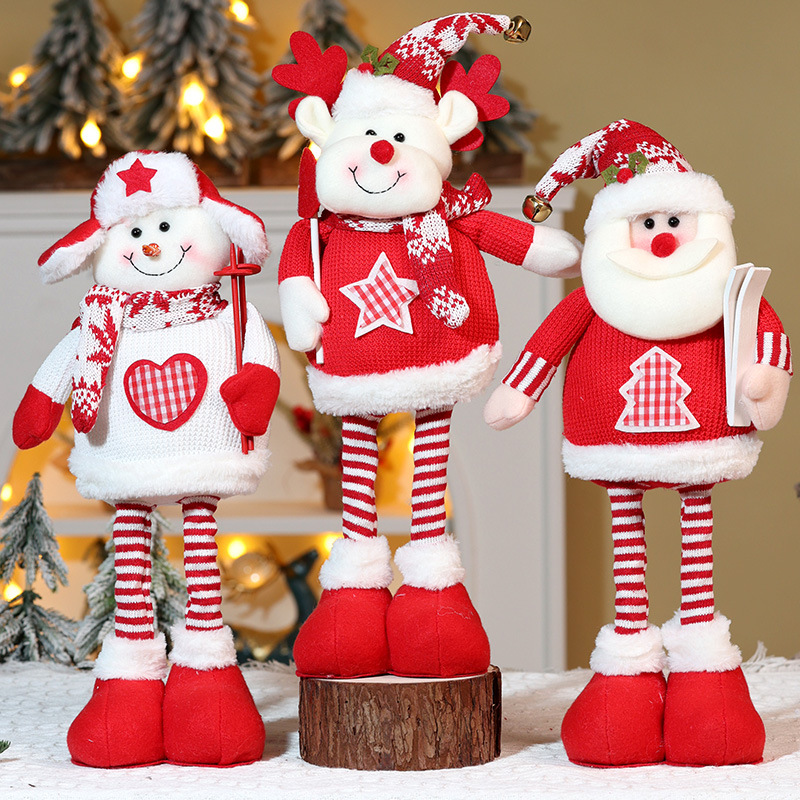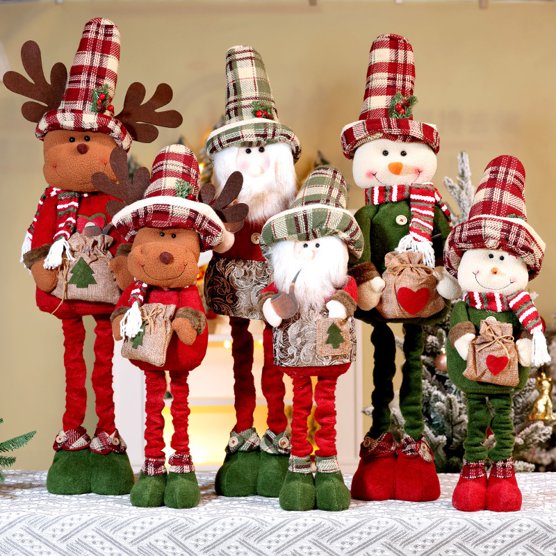 跨境新款圣诞节伸公仔摆件圣诞礼物老人雪人麋鹿长腿玩偶装饰品