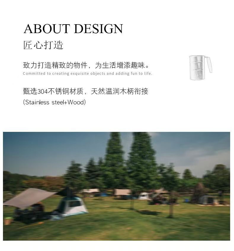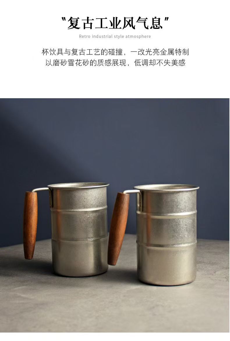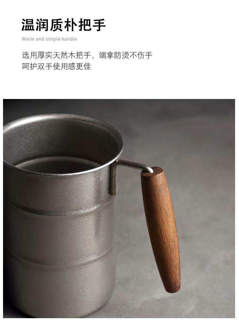 户外木柄马克杯304不锈钢杯子复古工业风家用露营随手咖啡杯水杯