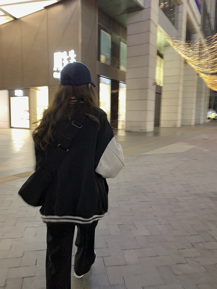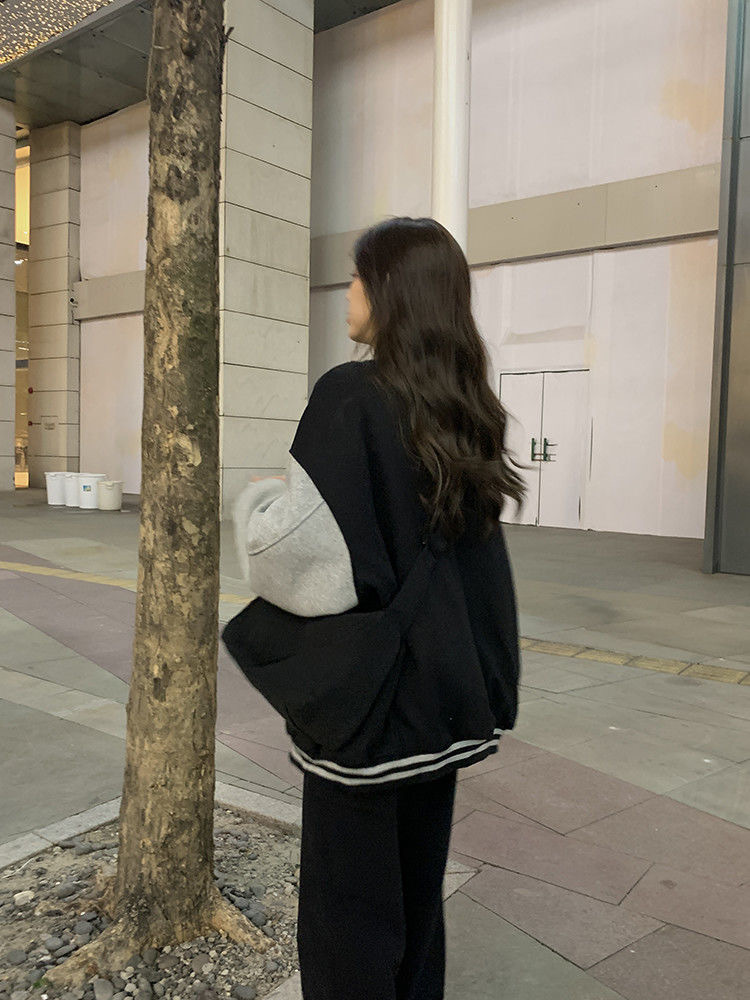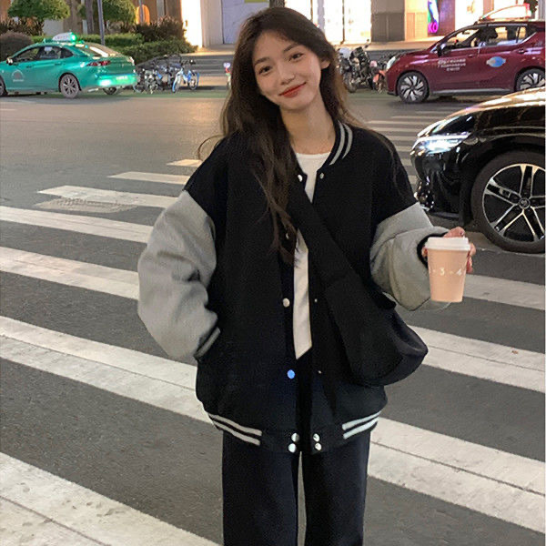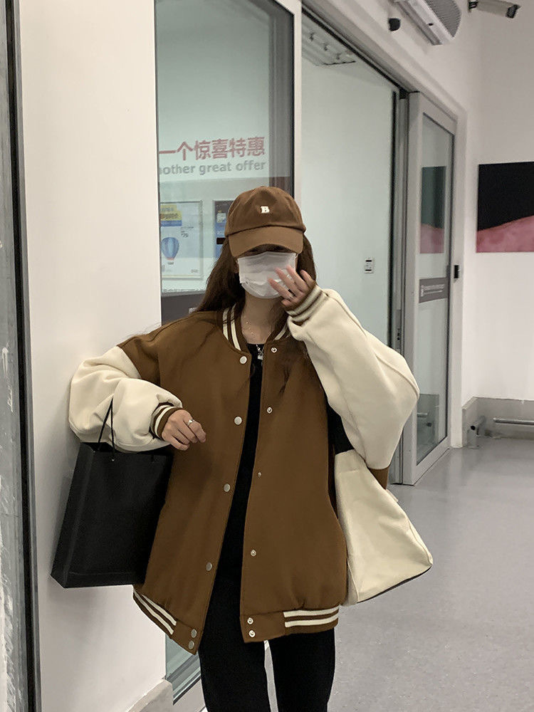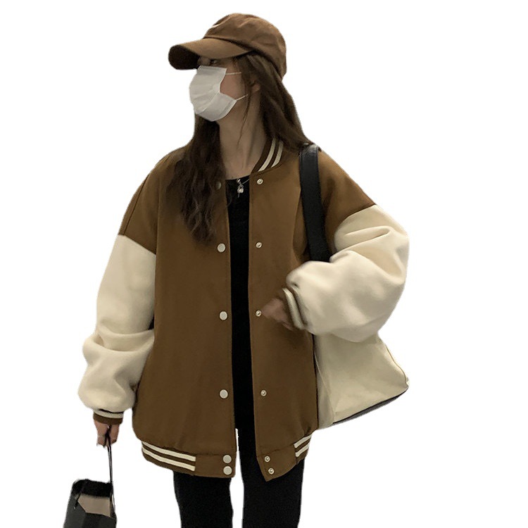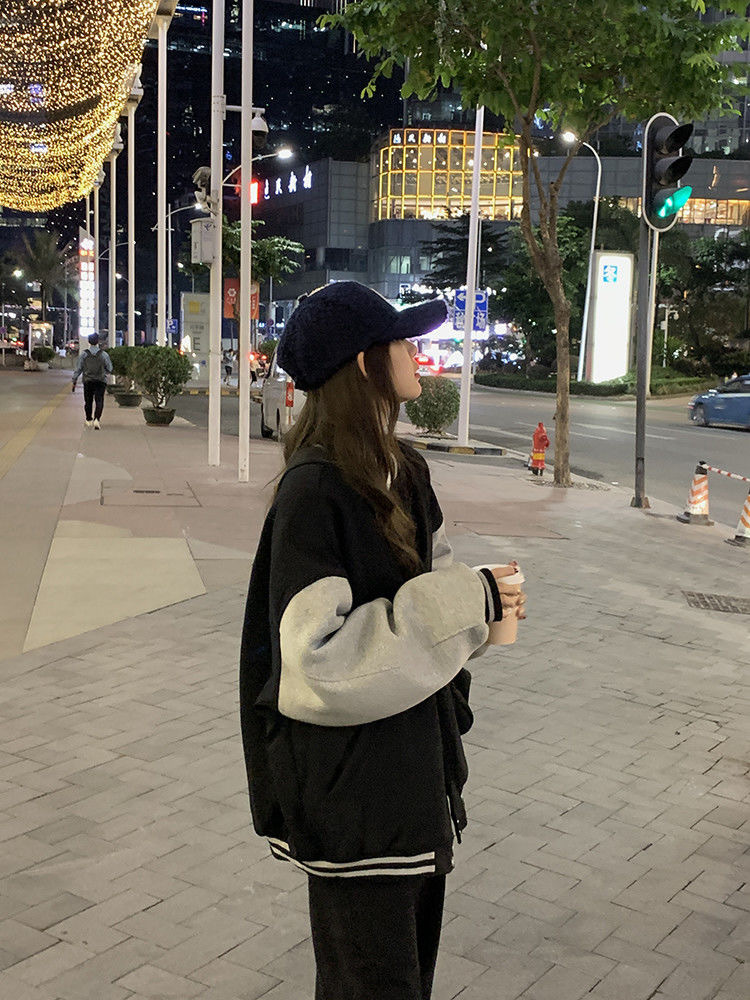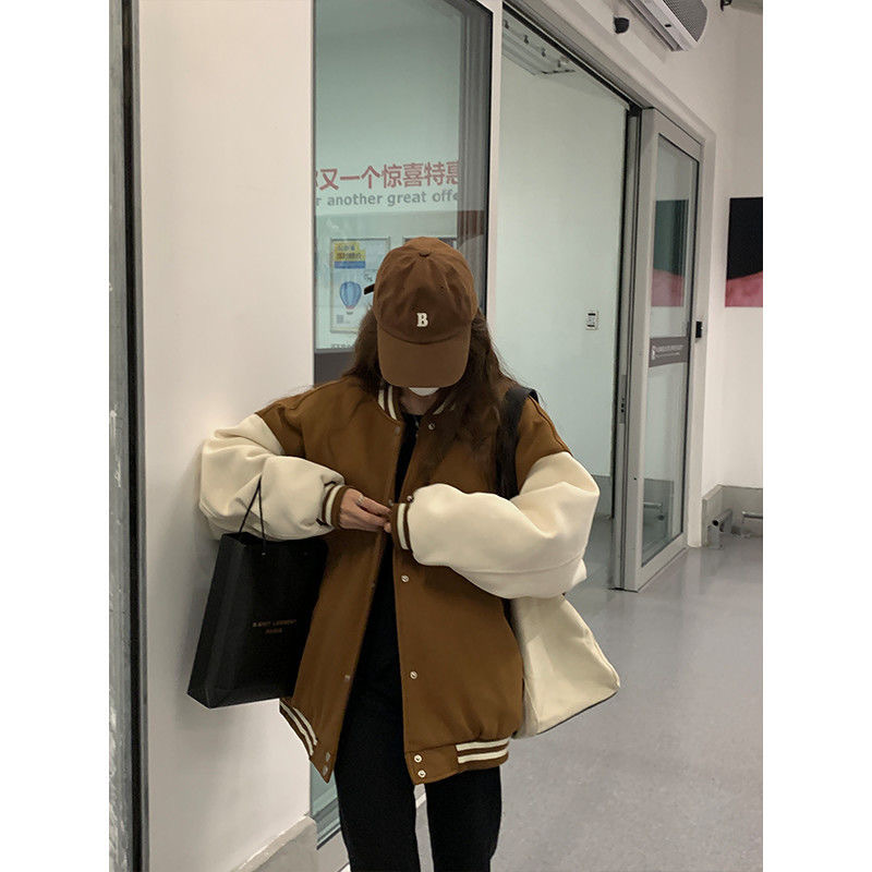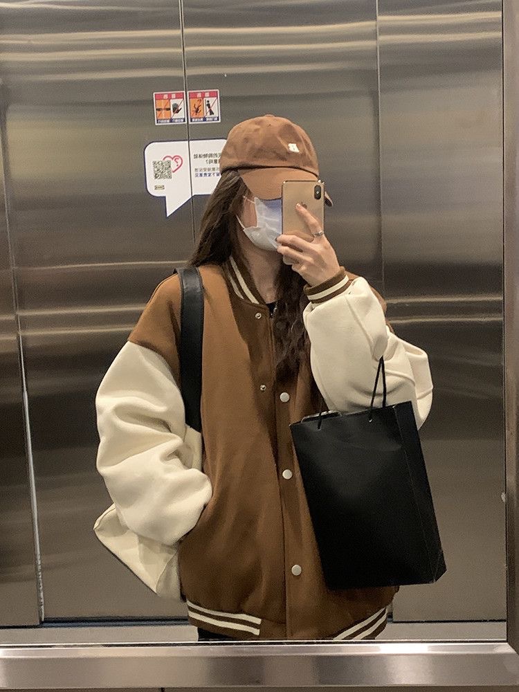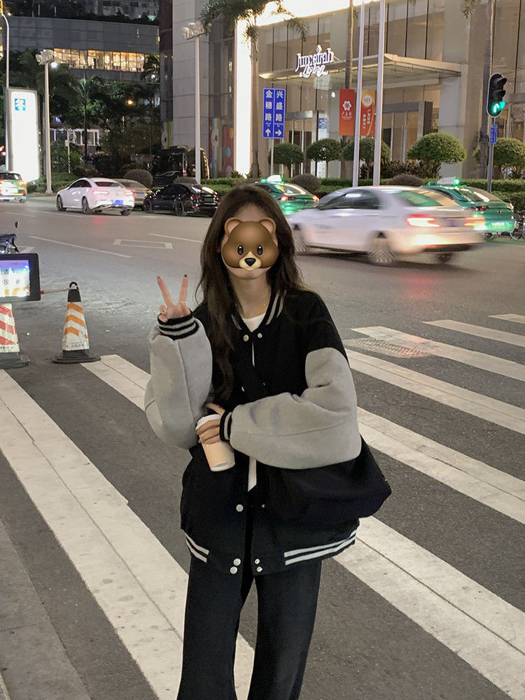 美式复古加绒加厚卫衣外套女学生秋冬季宽松ins潮原宿港风棒球服