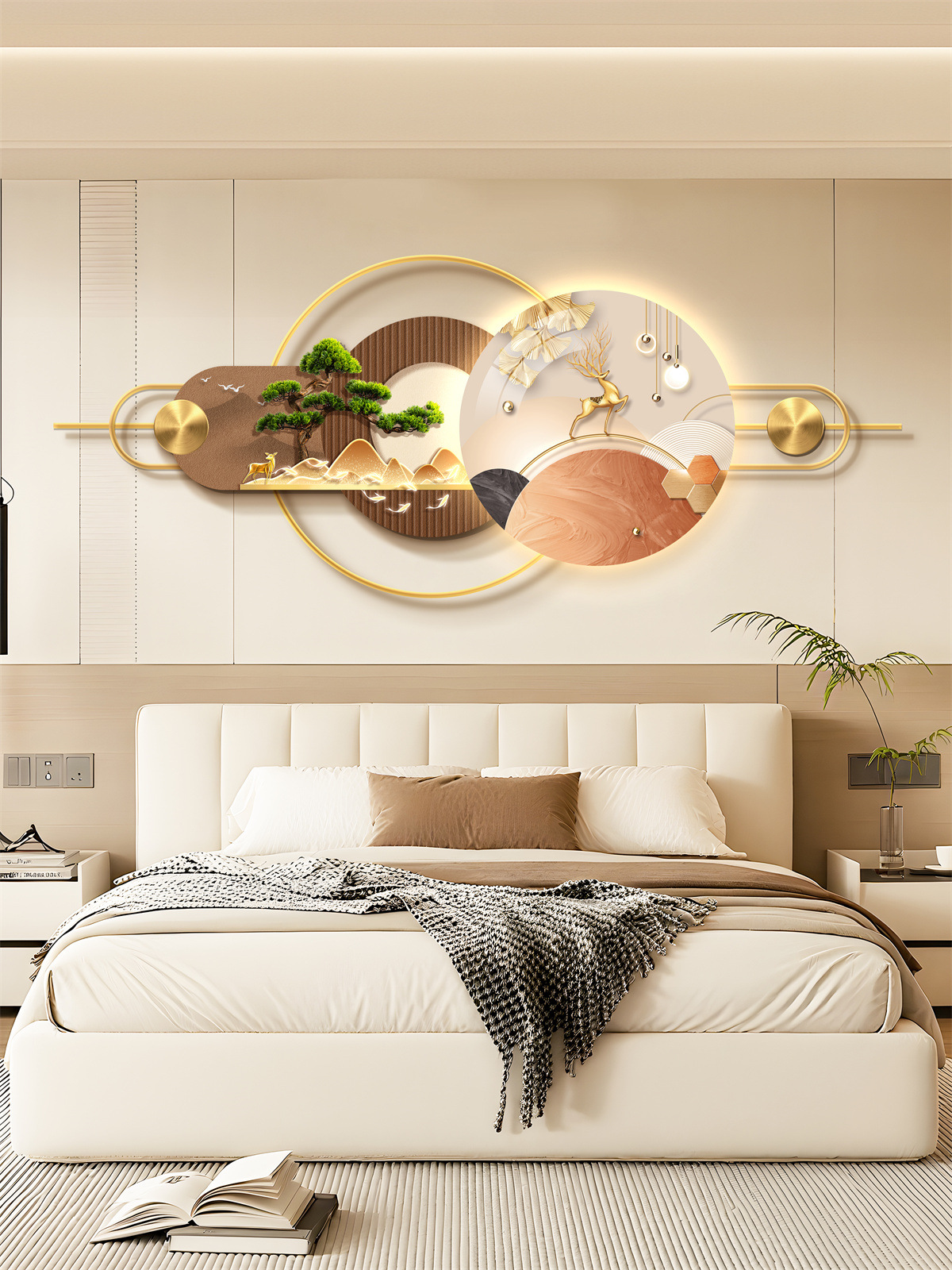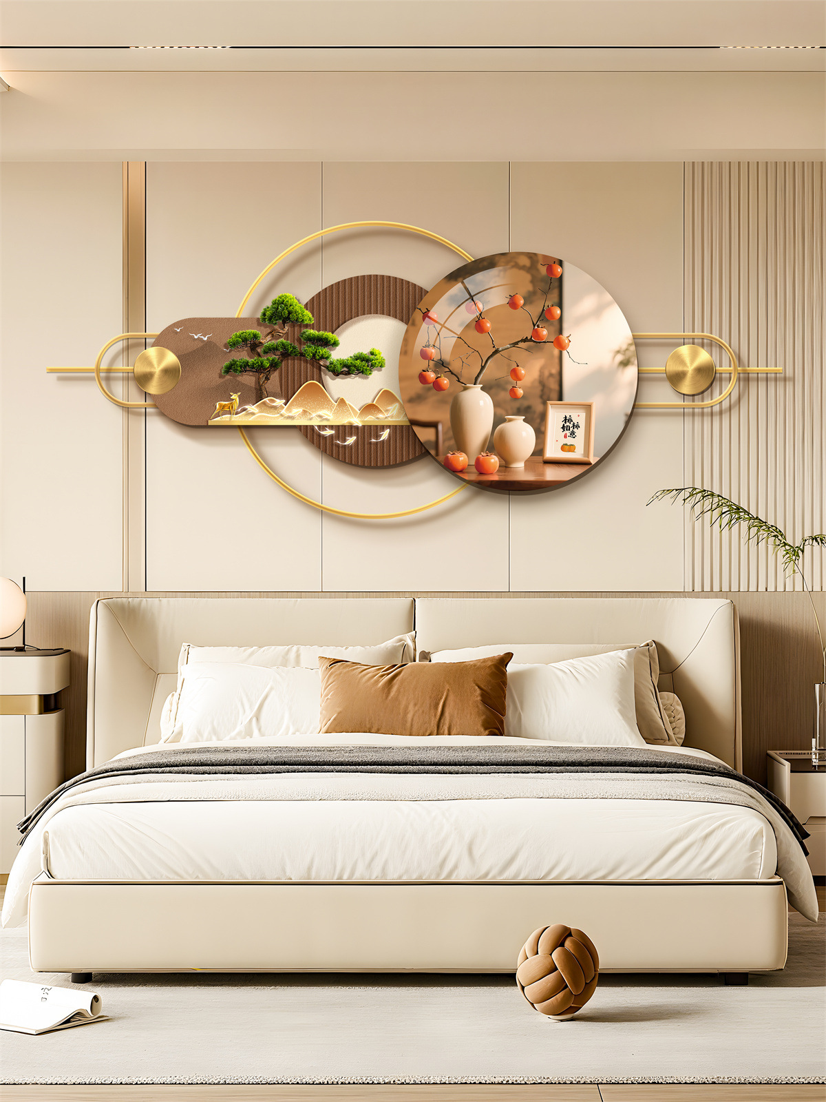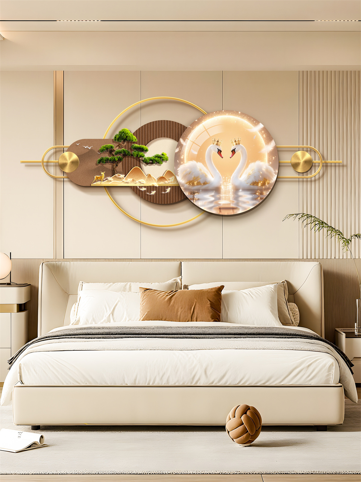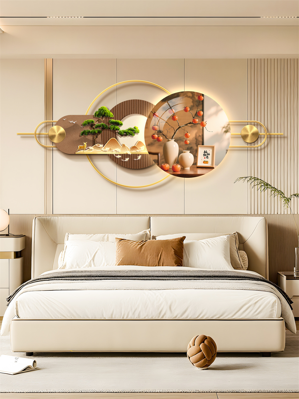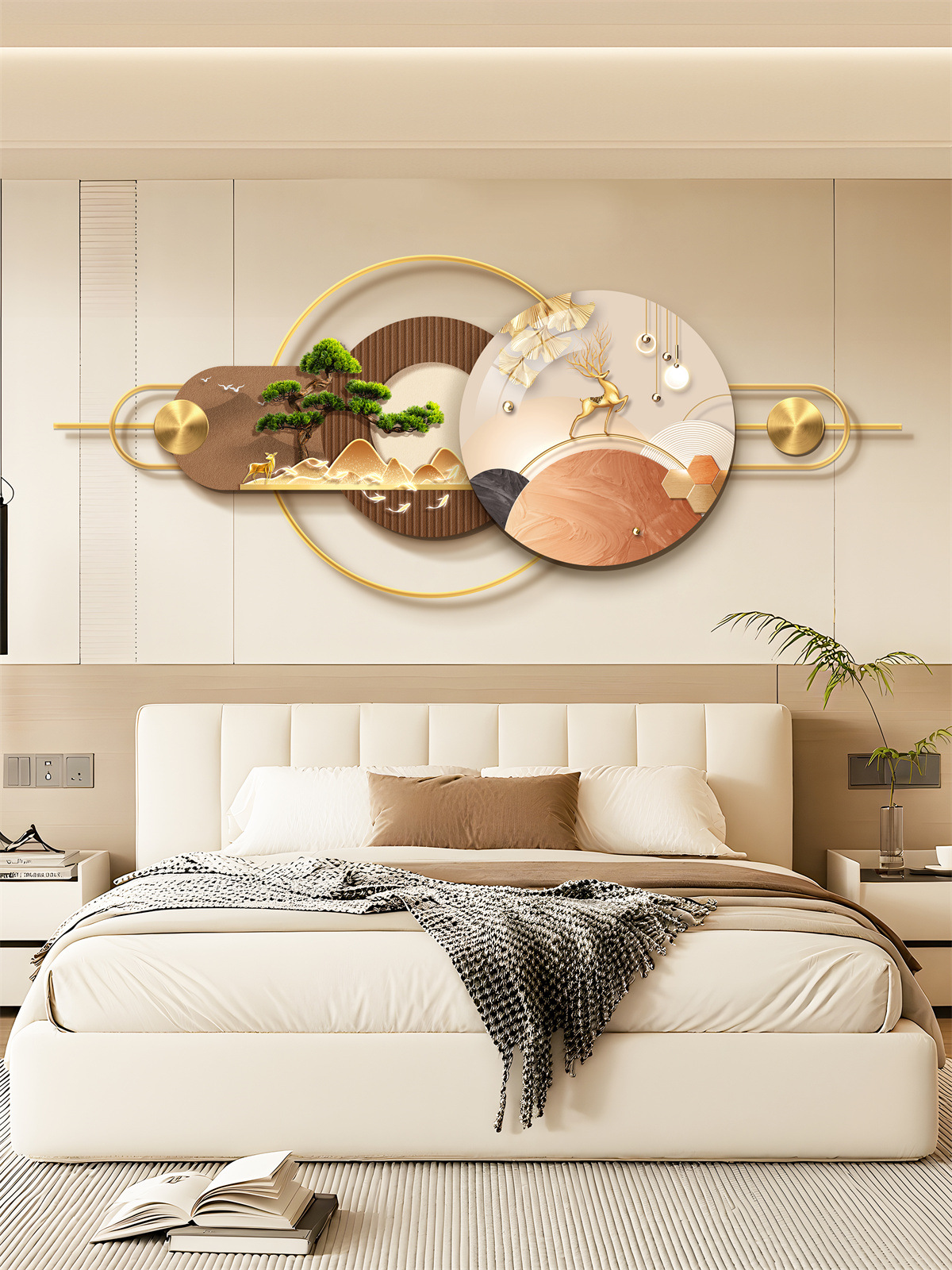 卧室立体壁画装饰画卧室床头高级感房间背景墙铝合金组合挂画