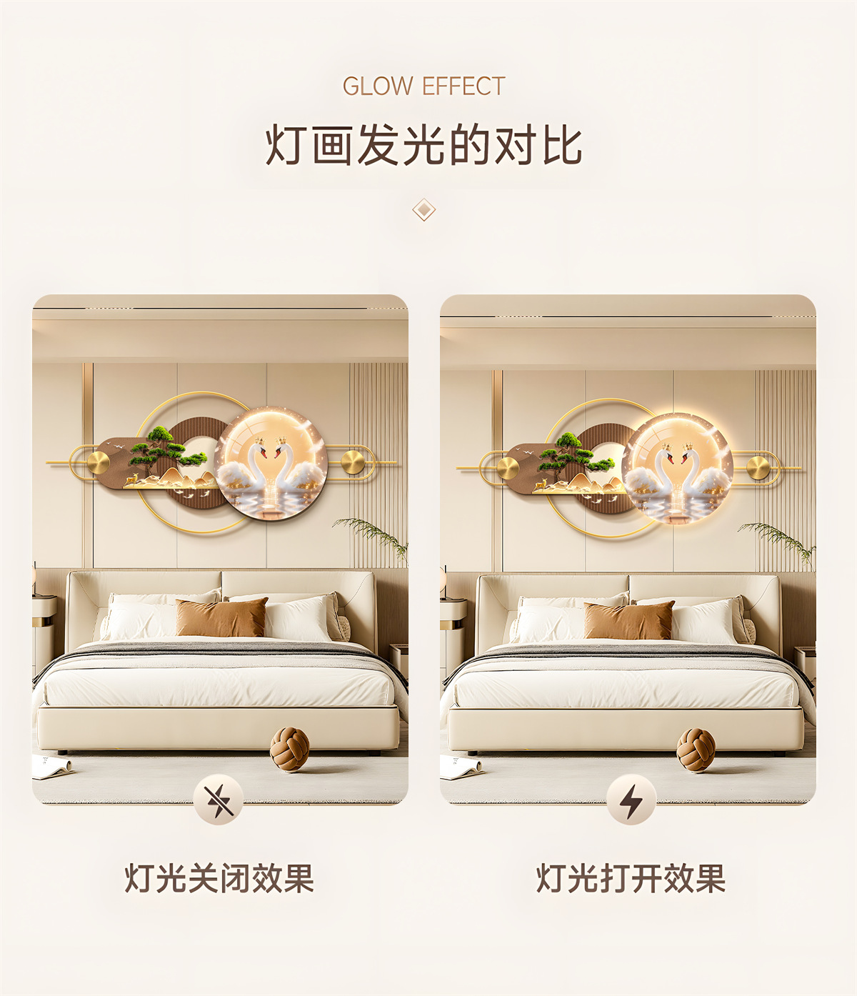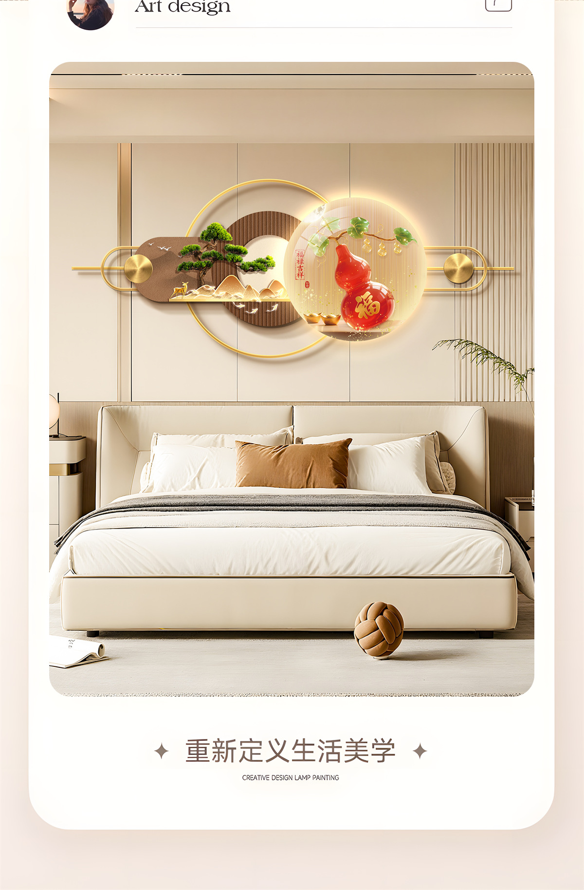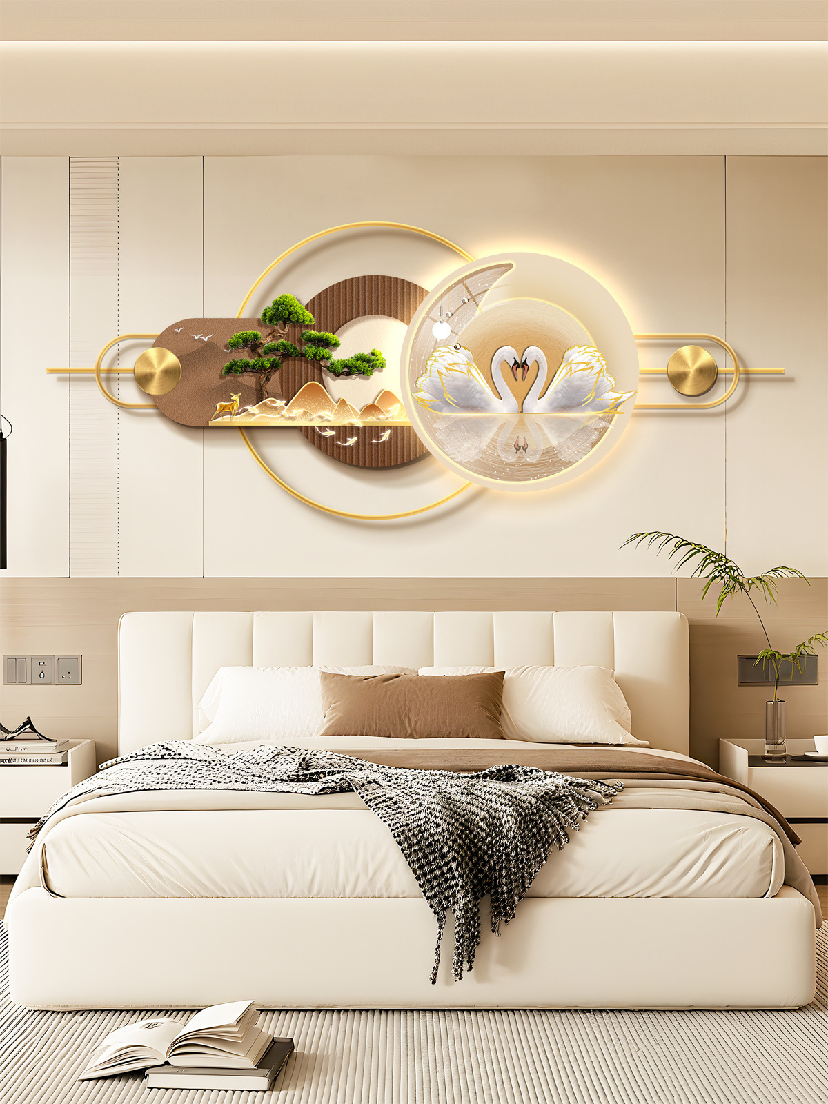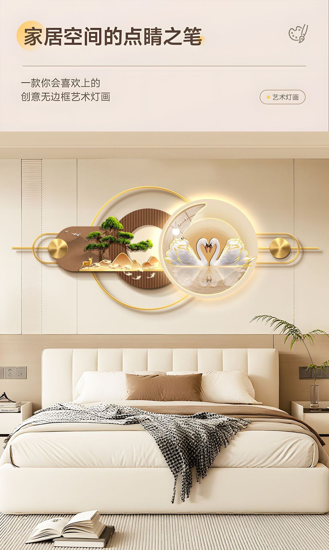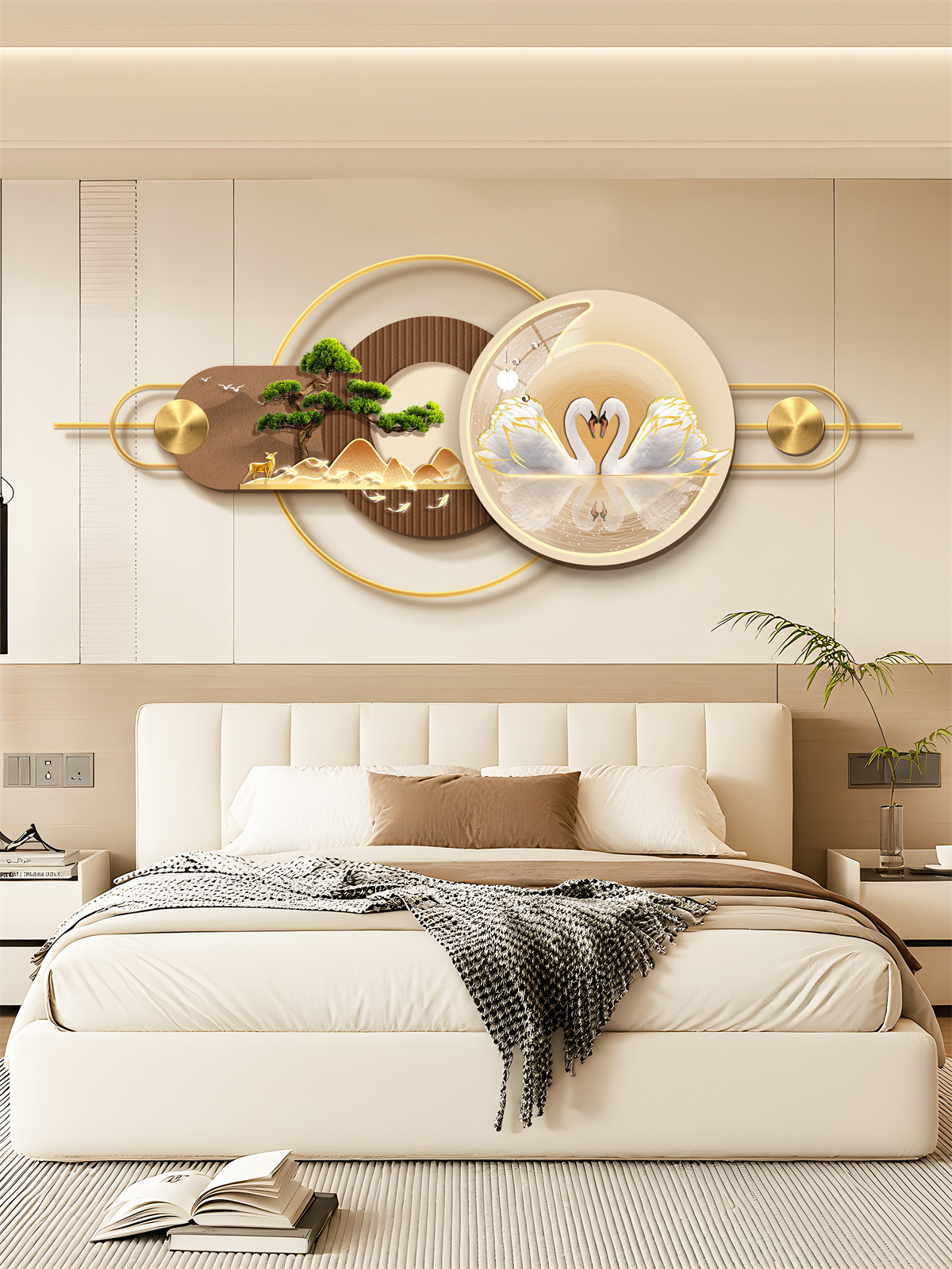 卧室立体壁画装饰画卧室床头高级感房间背景墙铝合金组合挂画
