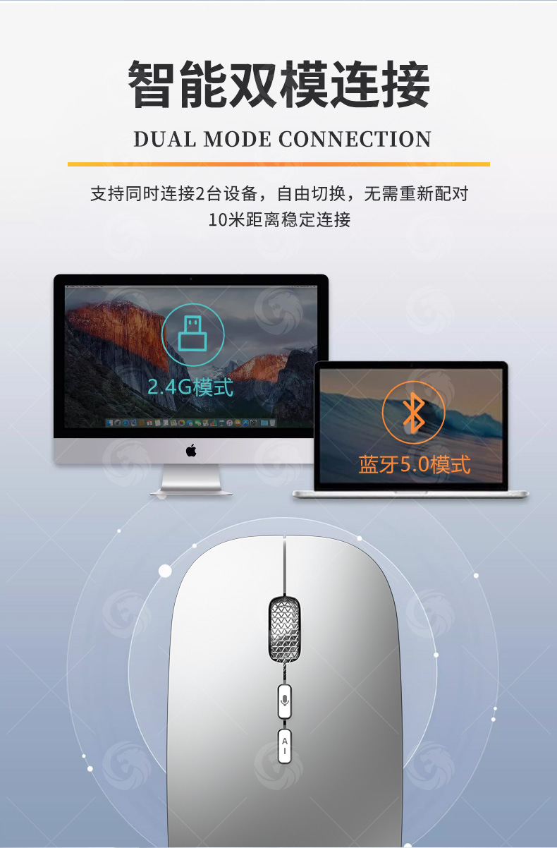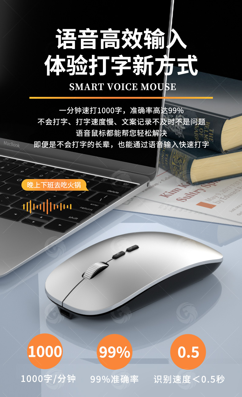 ai人工智能语音鼠标声控打字写作多语言翻译无线蓝牙双模鼠标通用