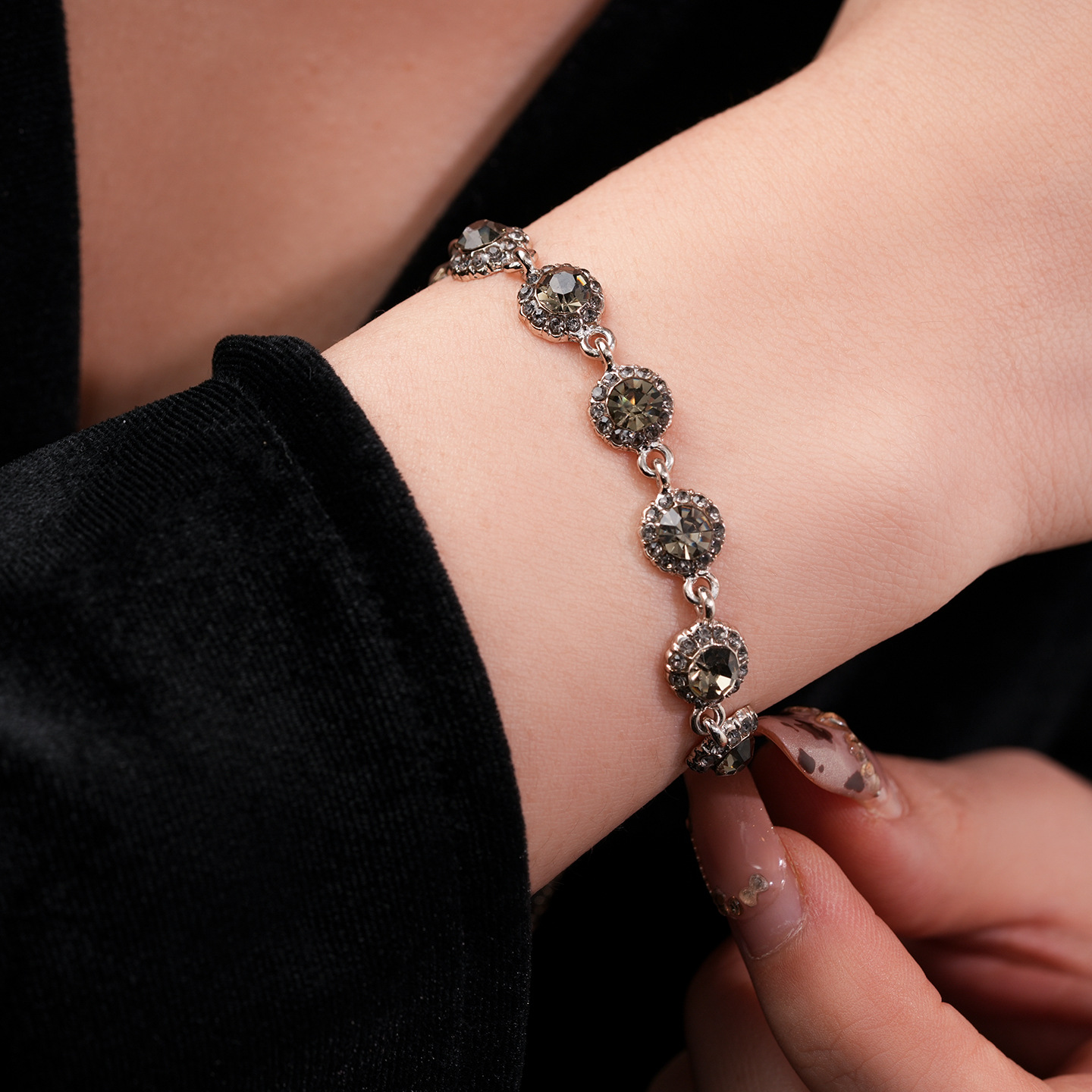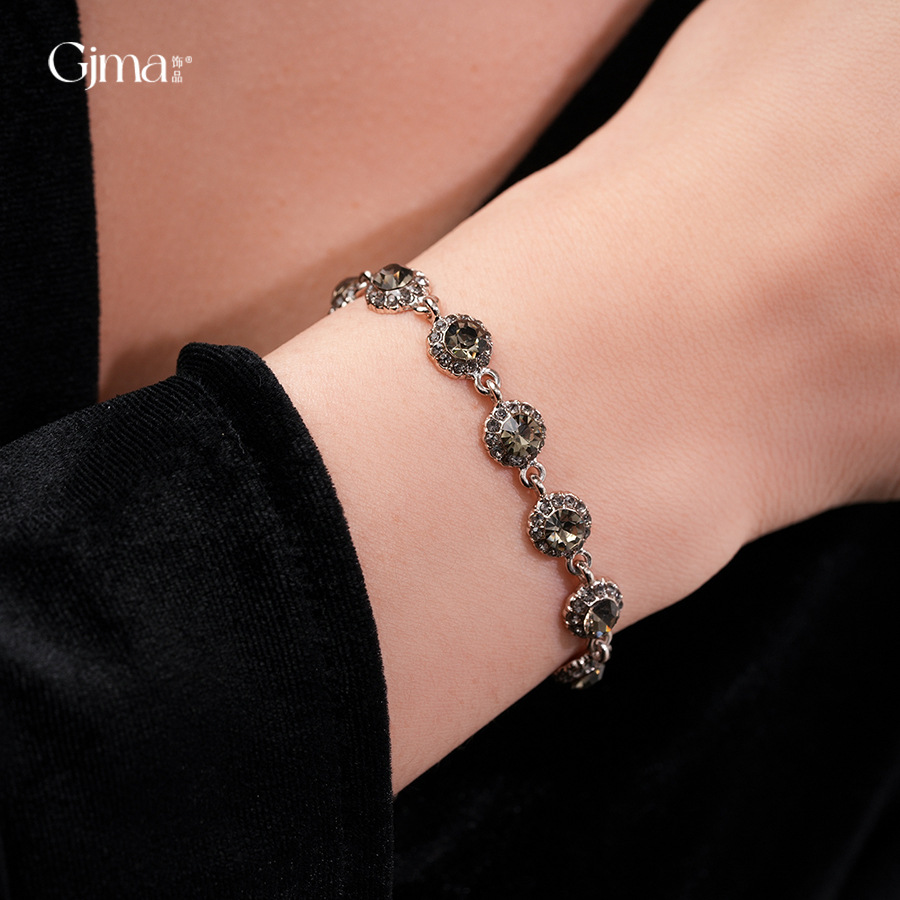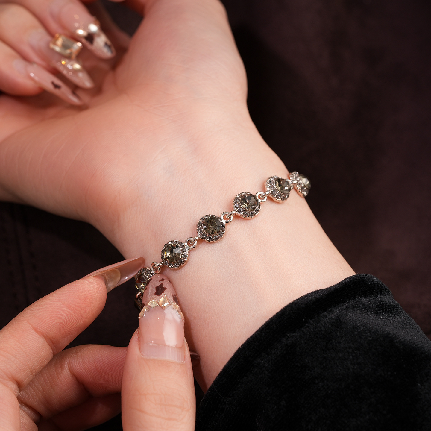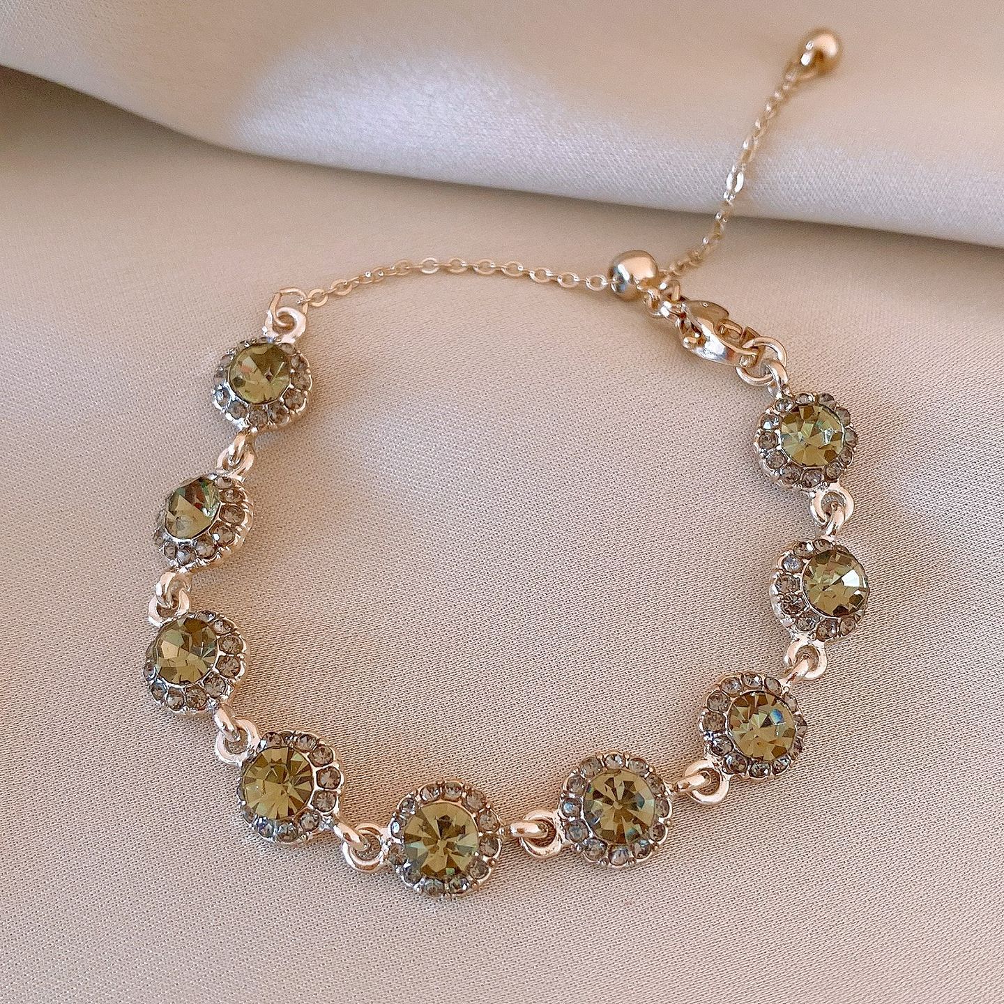 玻璃圆形花朵拼接手链轻奢高级感手环中古风气质小众百搭手饰批发