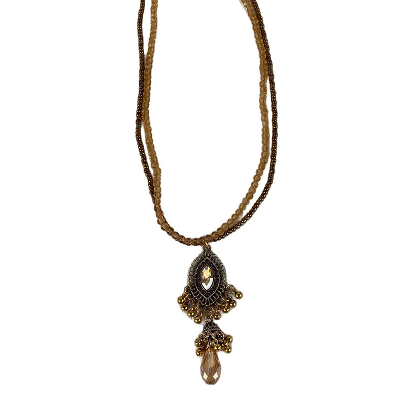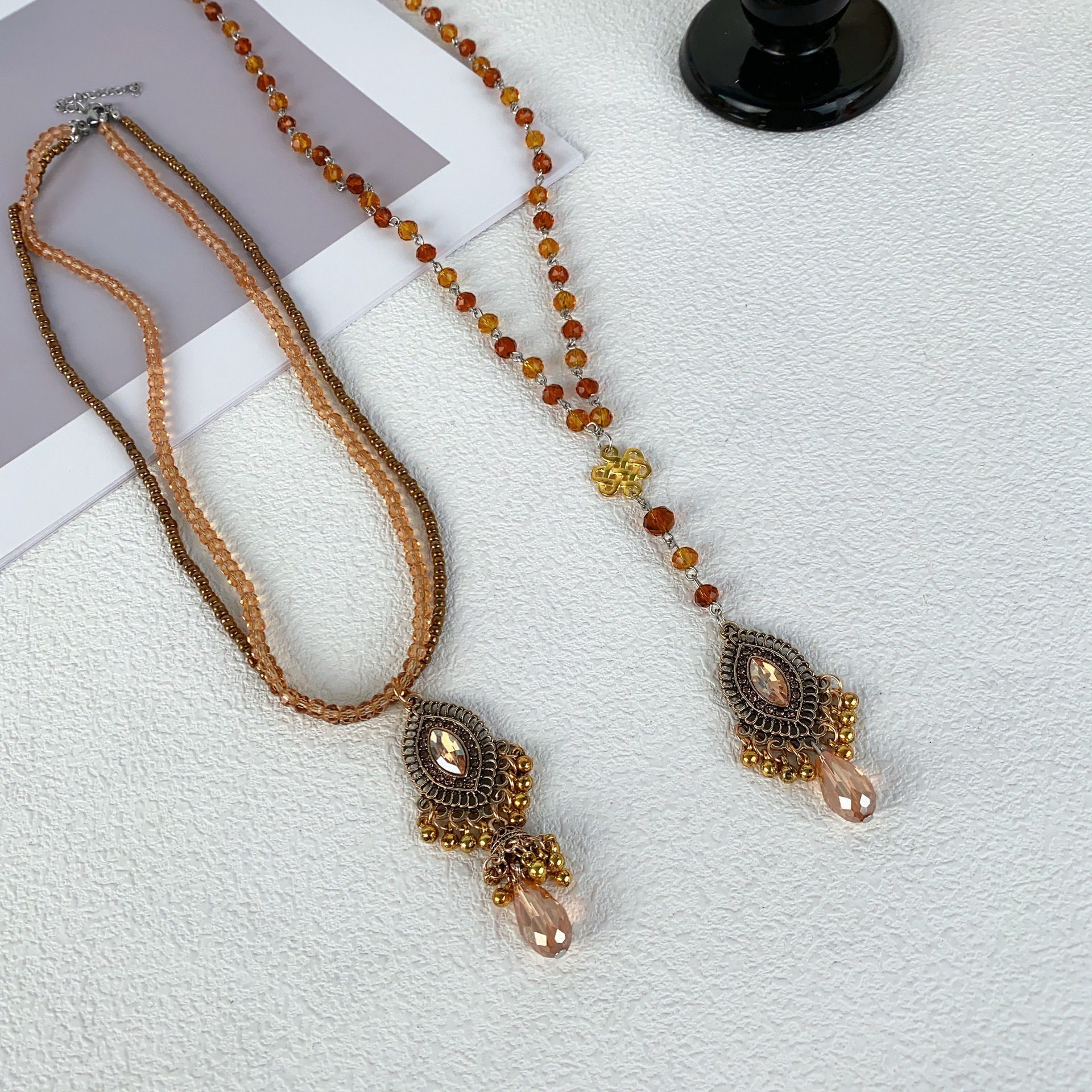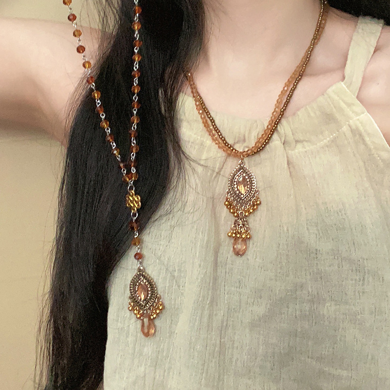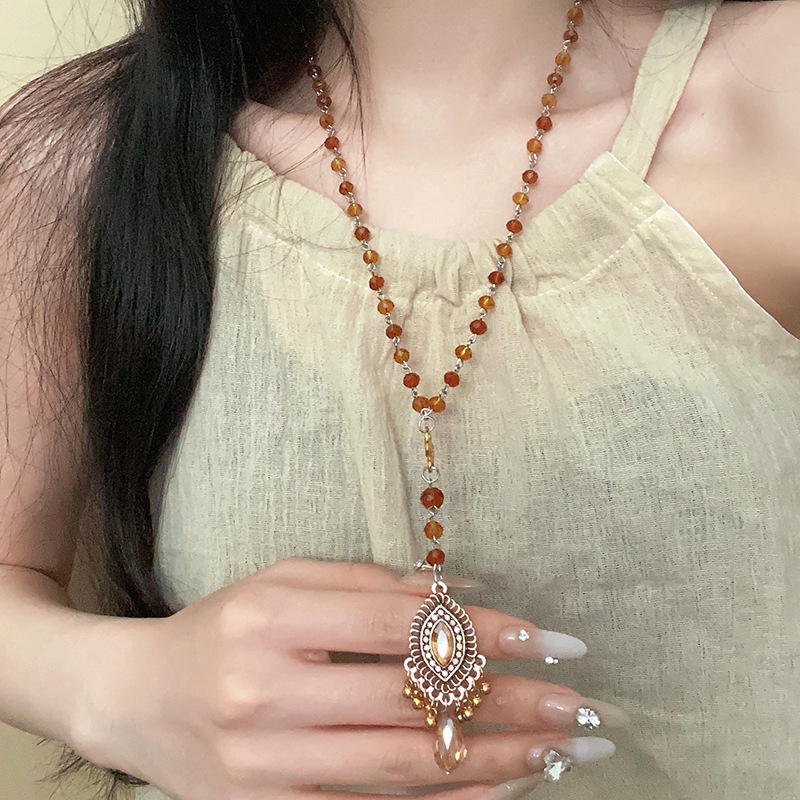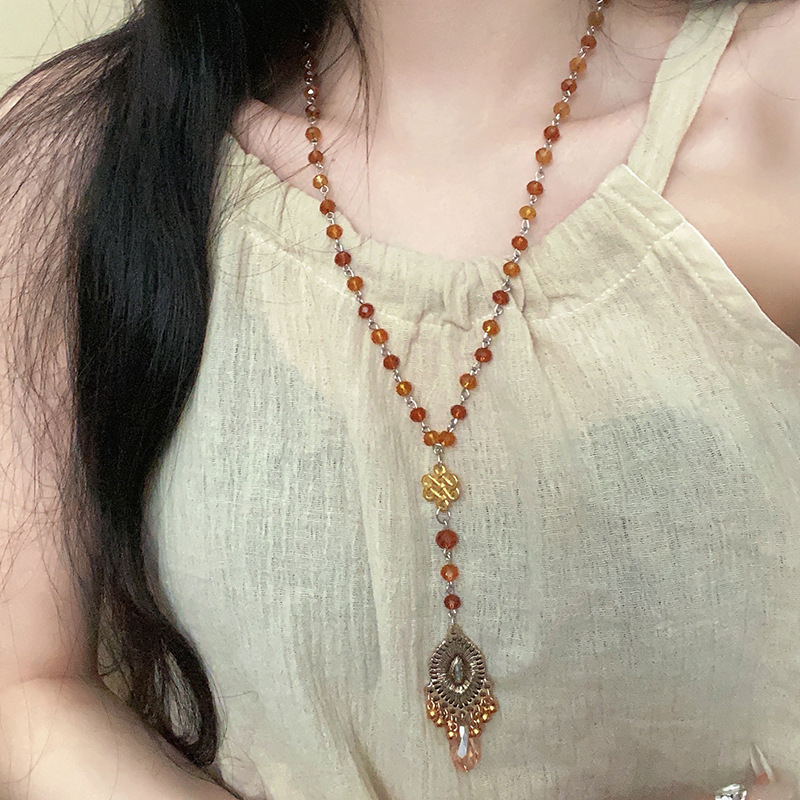 串珠中国结椭圆形眼睛水滴项链轻奢小众毛衣链新中式复古文艺项饰