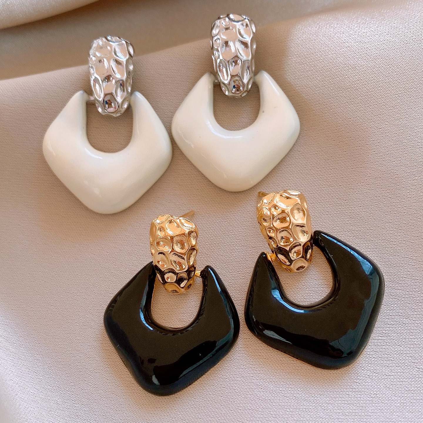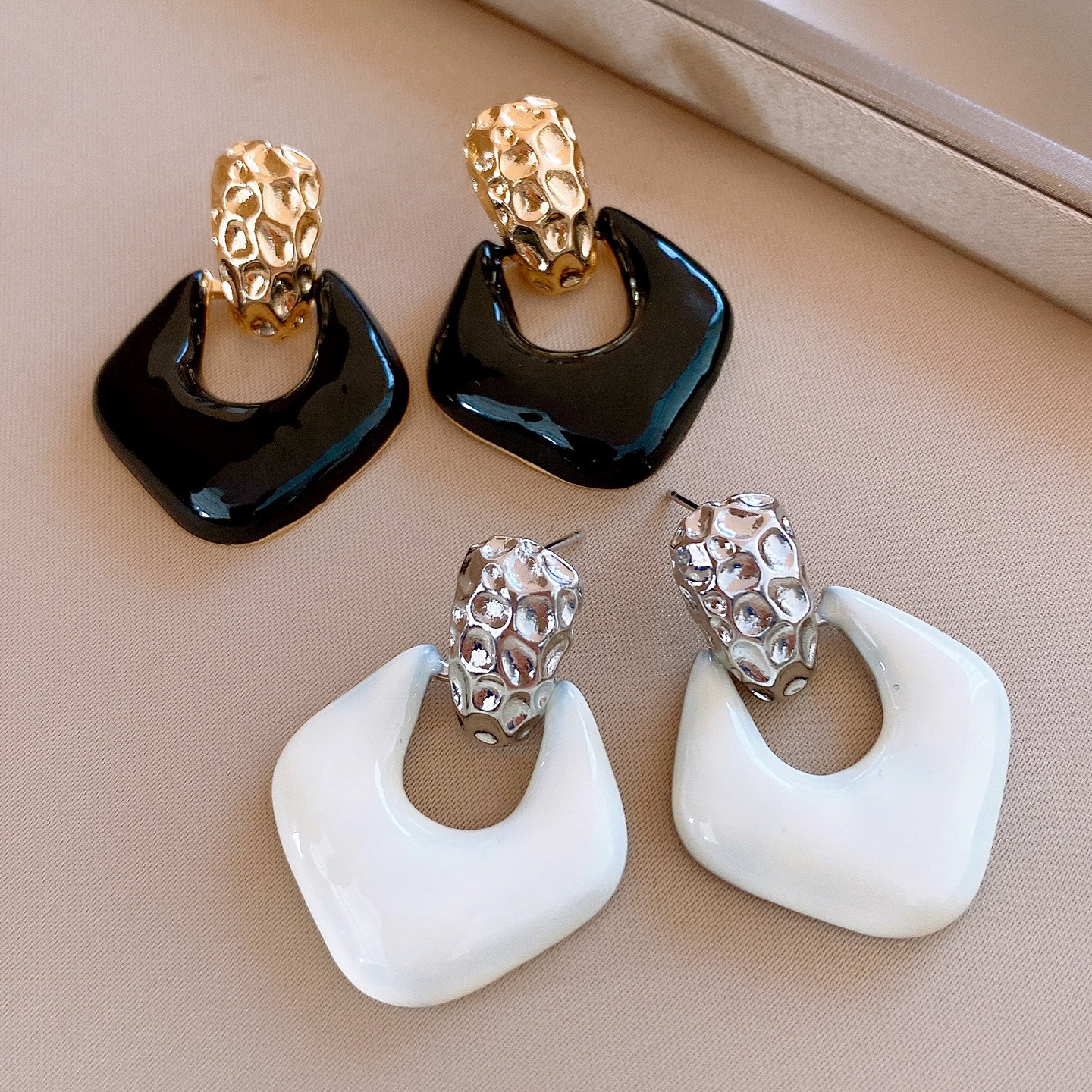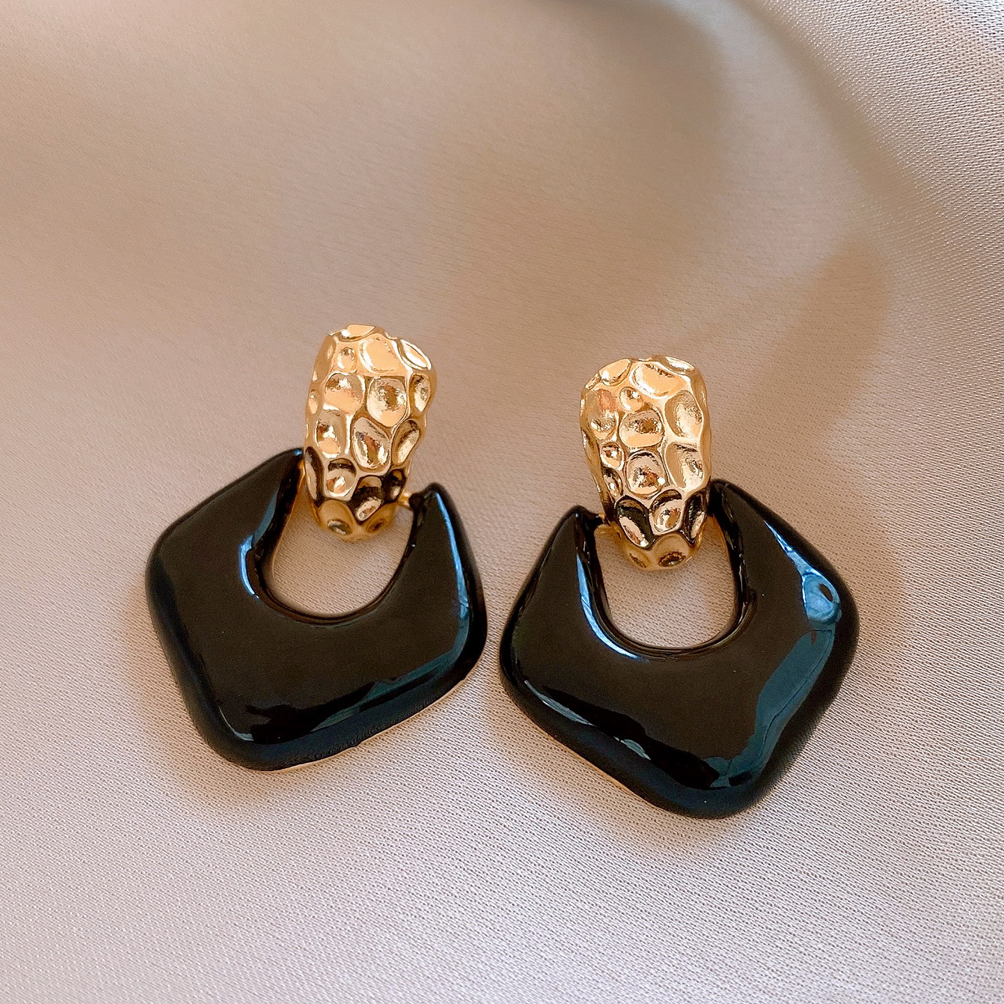 银针法式复古滴油褶皱菱形镂空耳环轻奢高级感耳钉时尚个性耳饰女