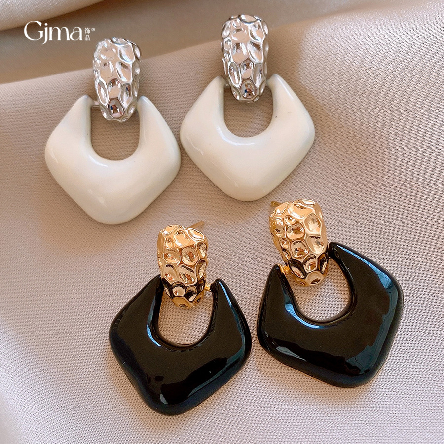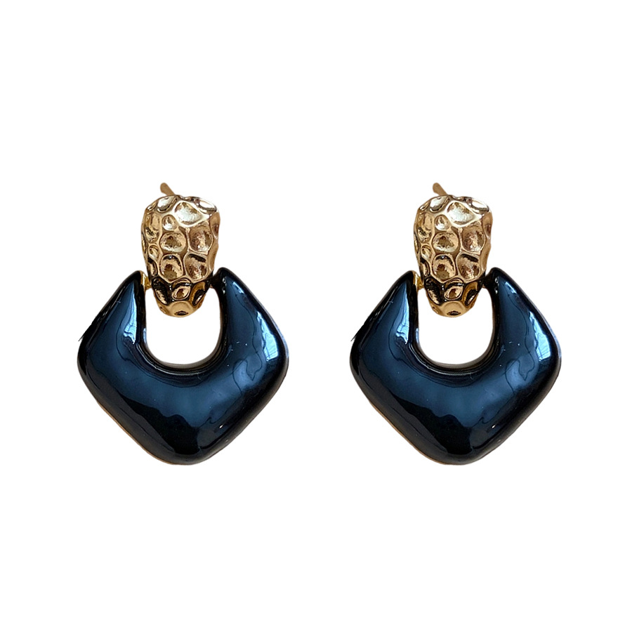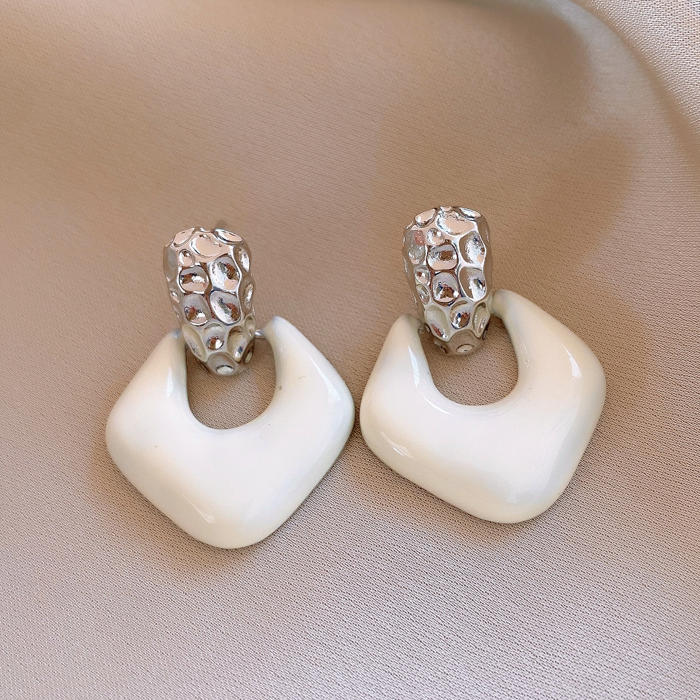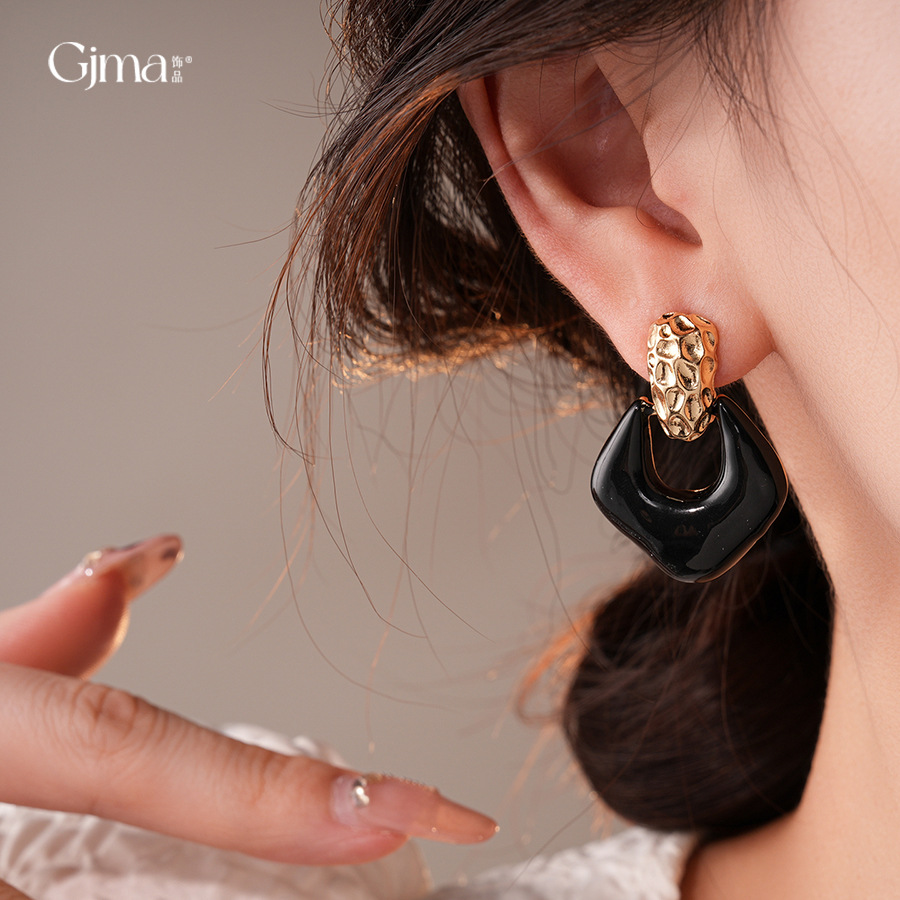 银针法式复古滴油褶皱菱形镂空耳环轻奢高级感耳钉时尚个性耳饰女