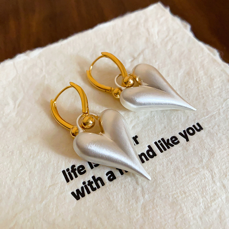 法式冷淡风几何拉丝爱心耳环轻奢高级感耳扣时尚通勤百搭耳饰批发