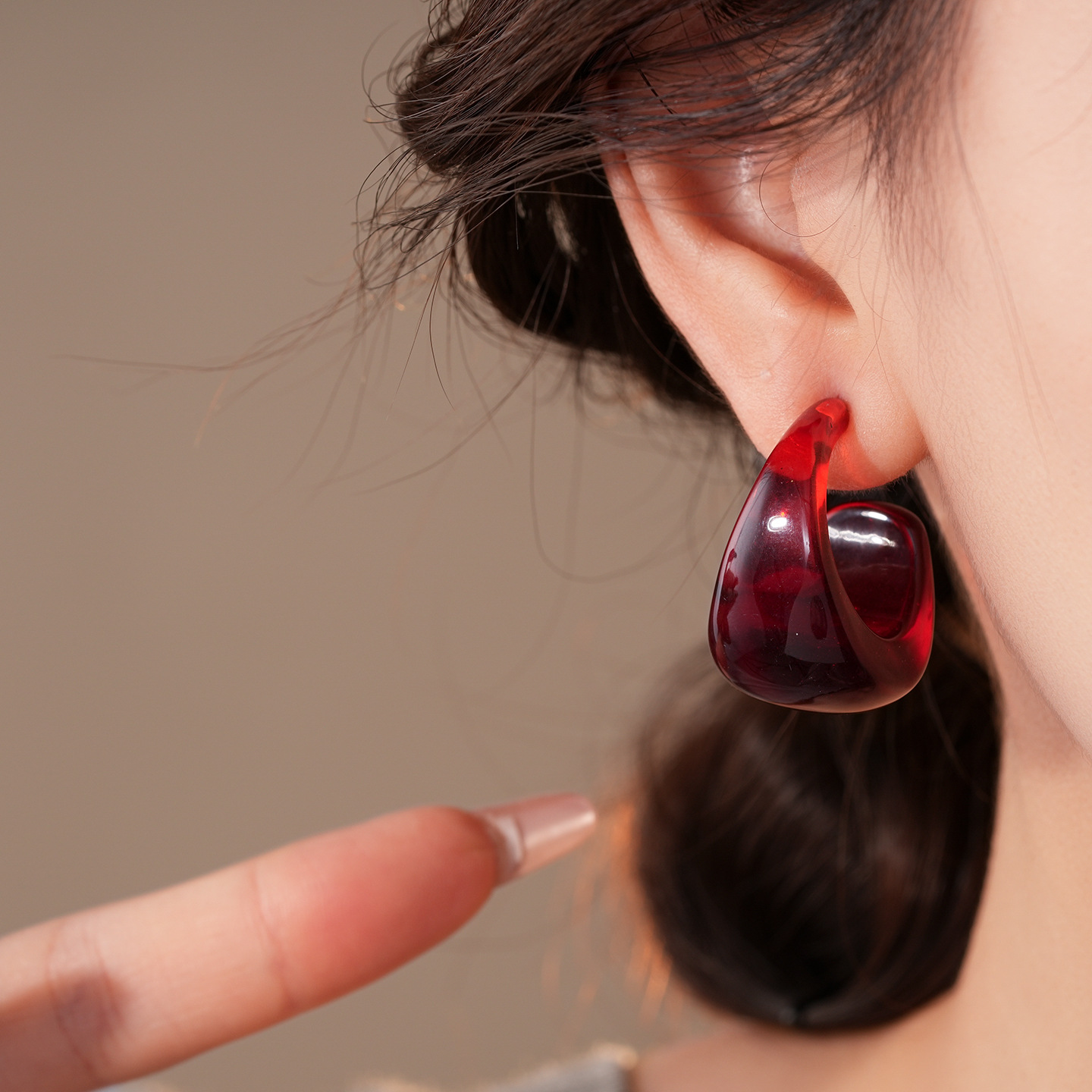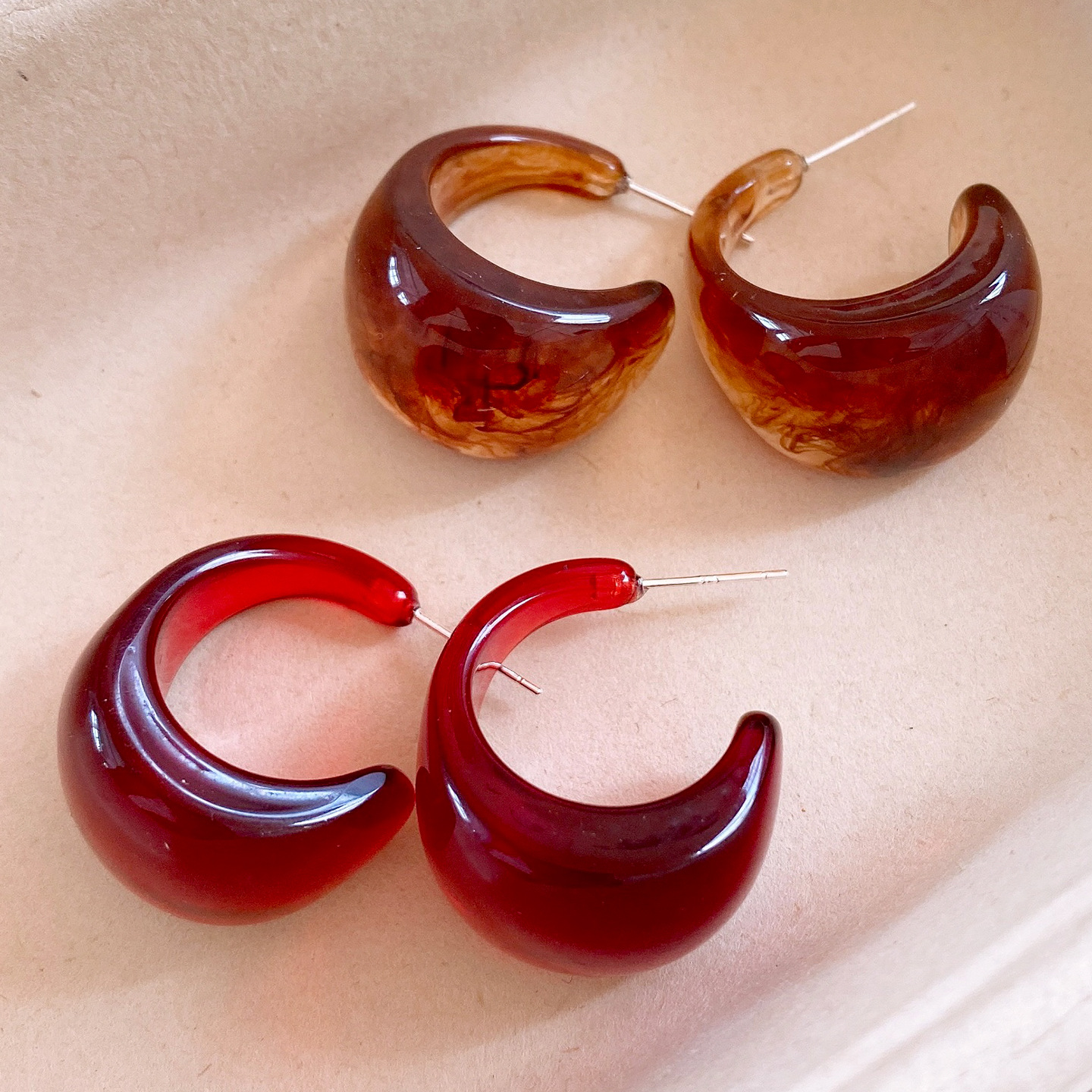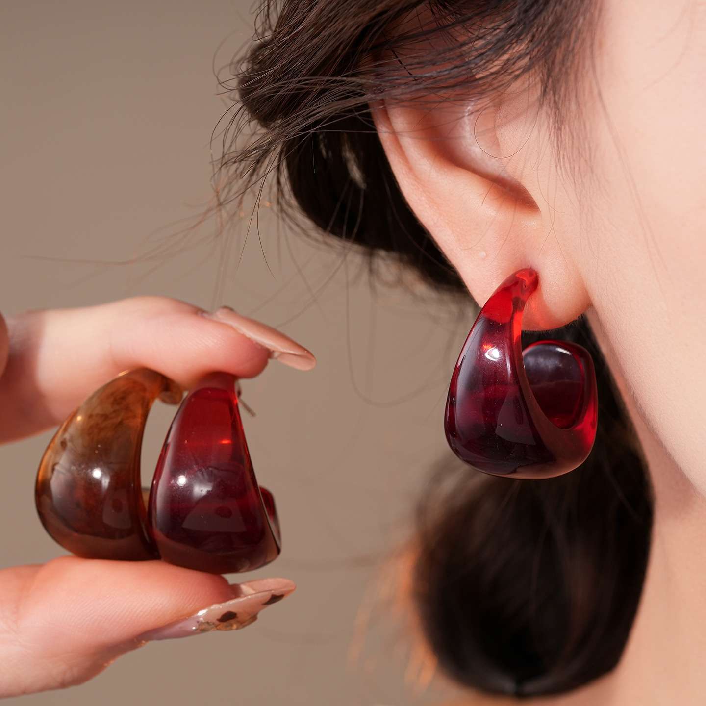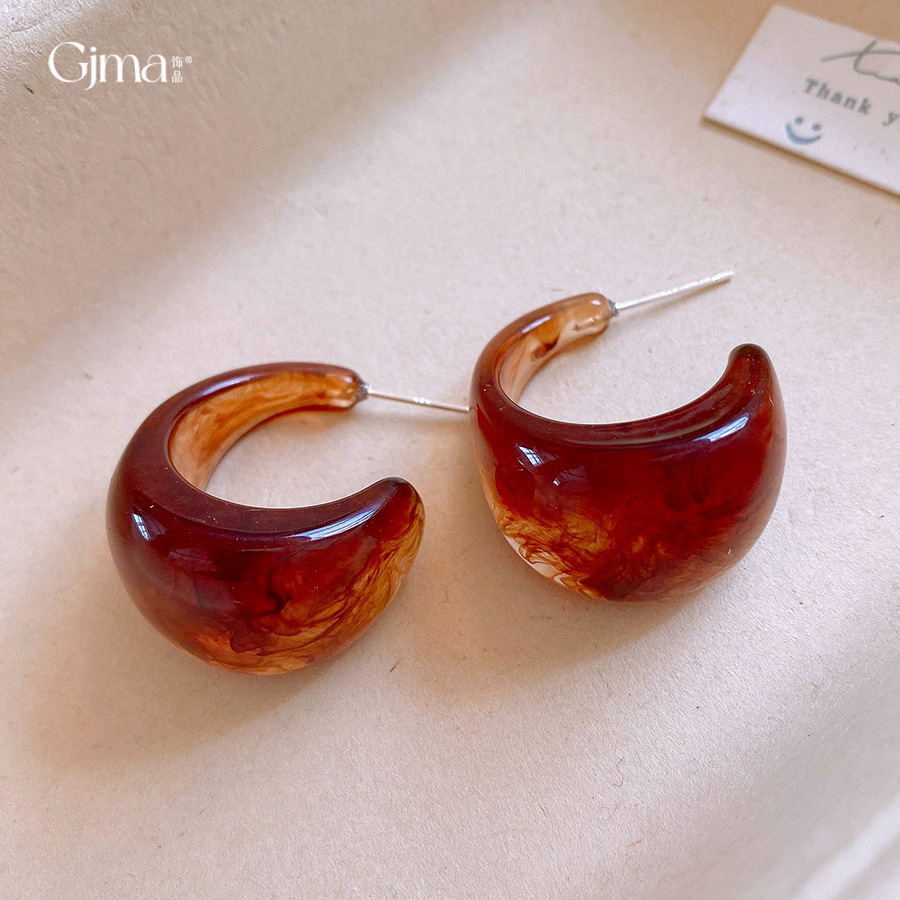 欧美复古咖色晕染C形树脂耳环轻奢高级感耳钉秋冬复古气质耳饰女