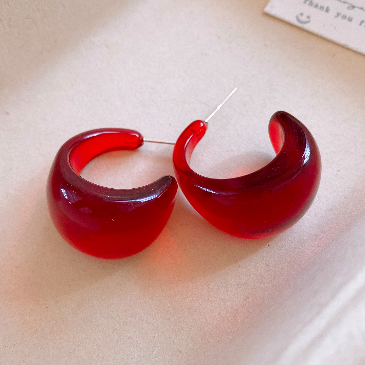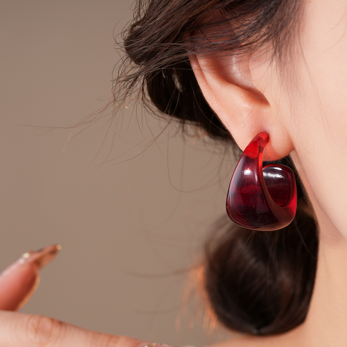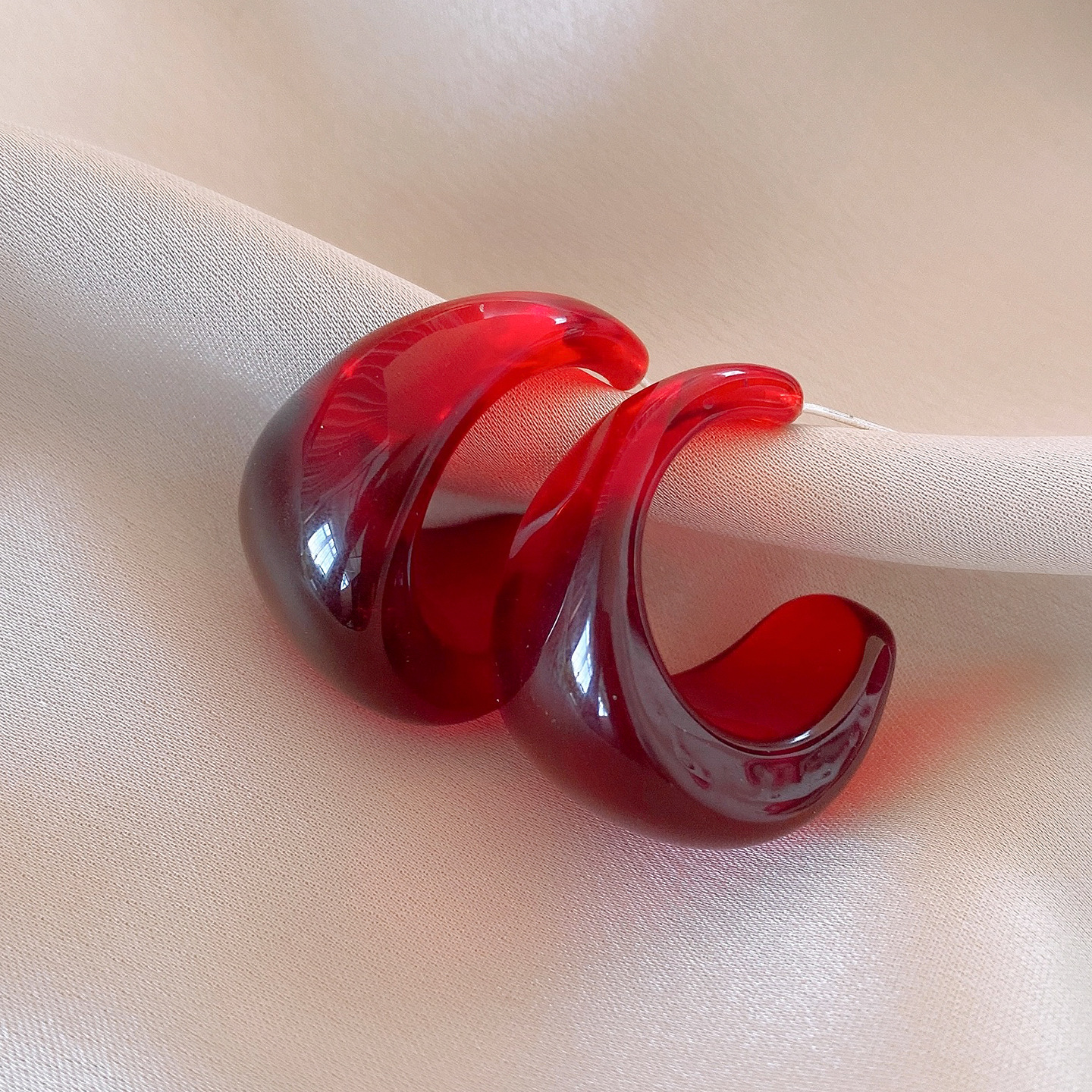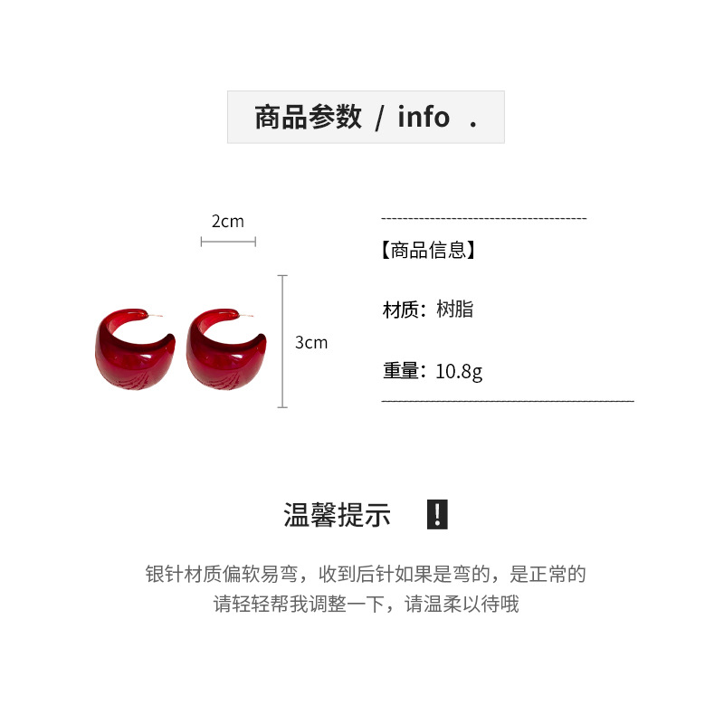 欧美复古咖色晕染C形树脂耳环轻奢高级感耳钉秋冬复古气质耳饰女