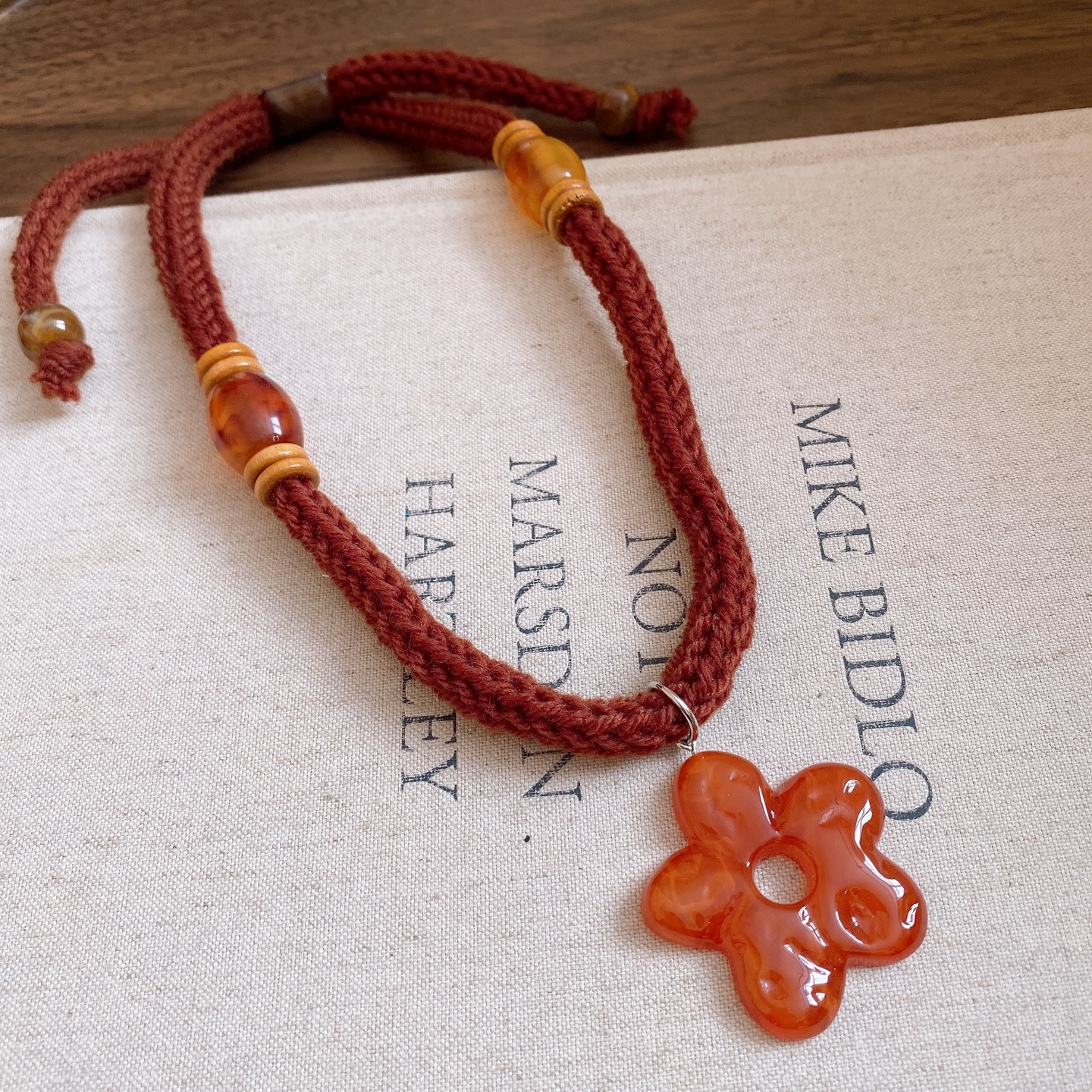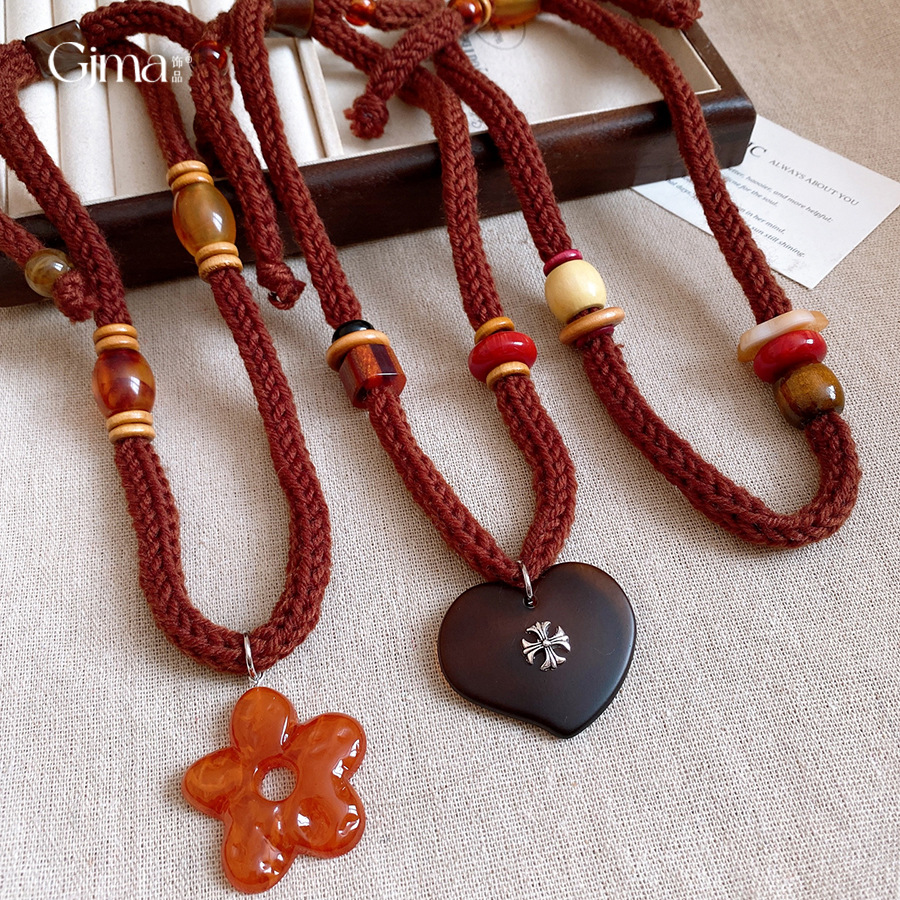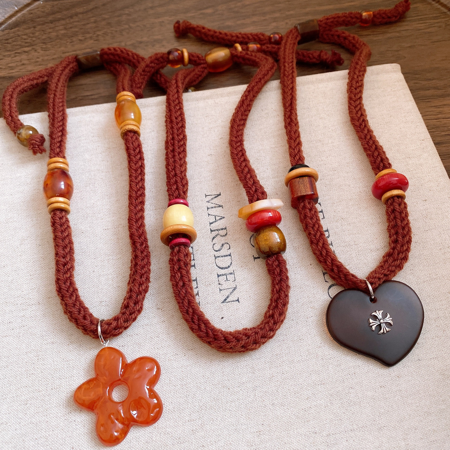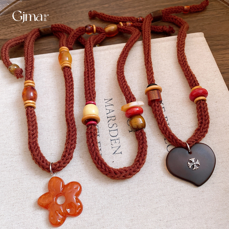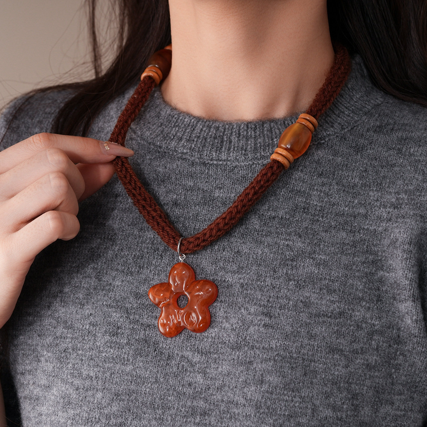 秋冬复古毛绒树脂爱心花朵项链设计感小众毛衣链时尚高级感项饰女