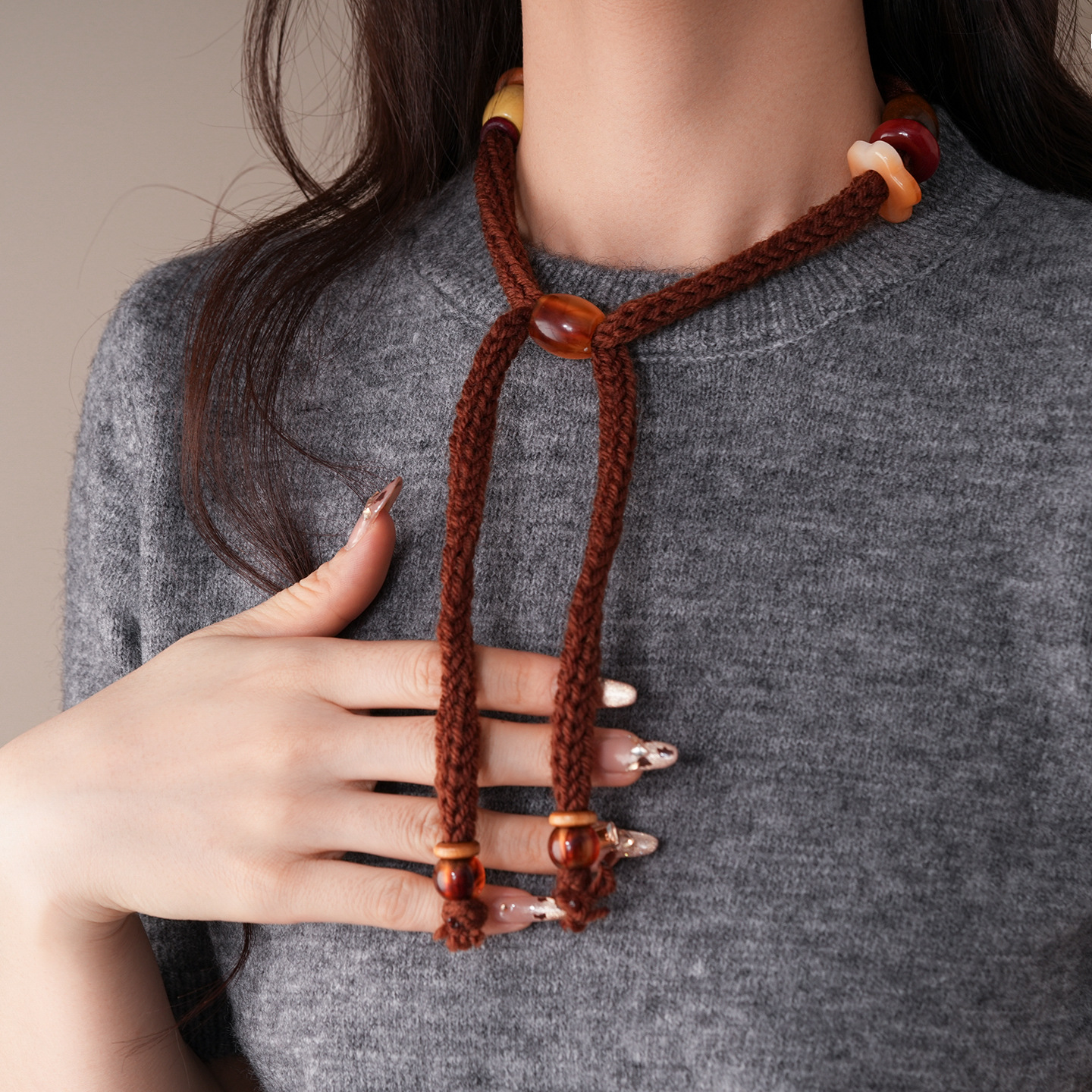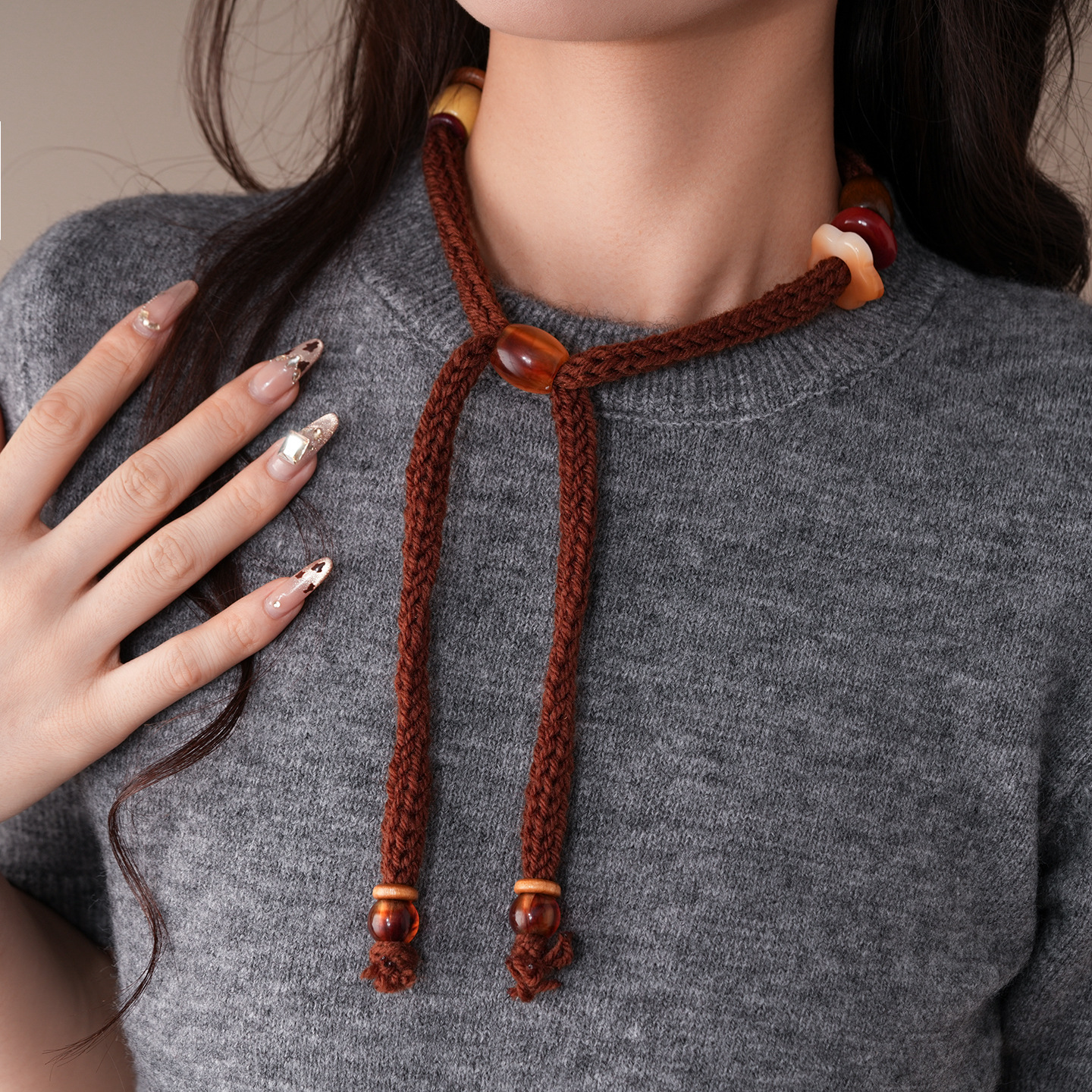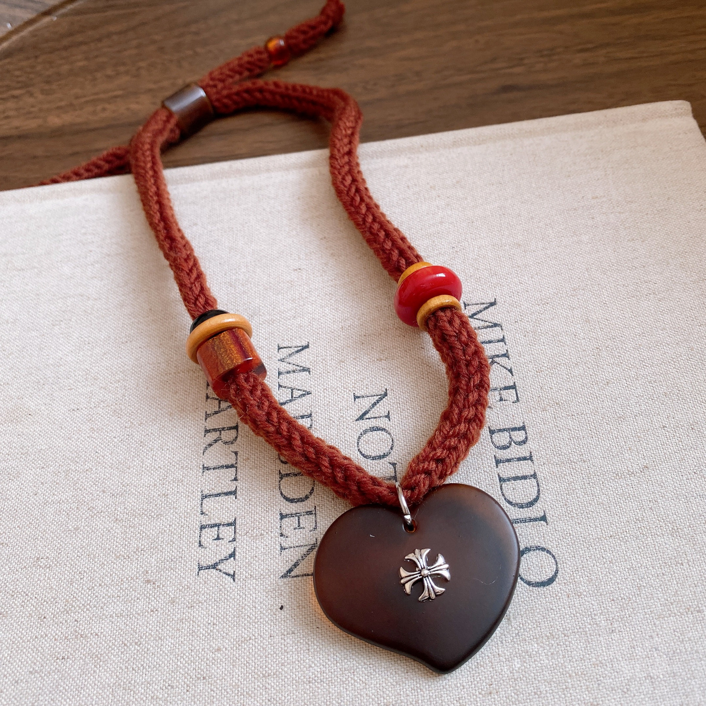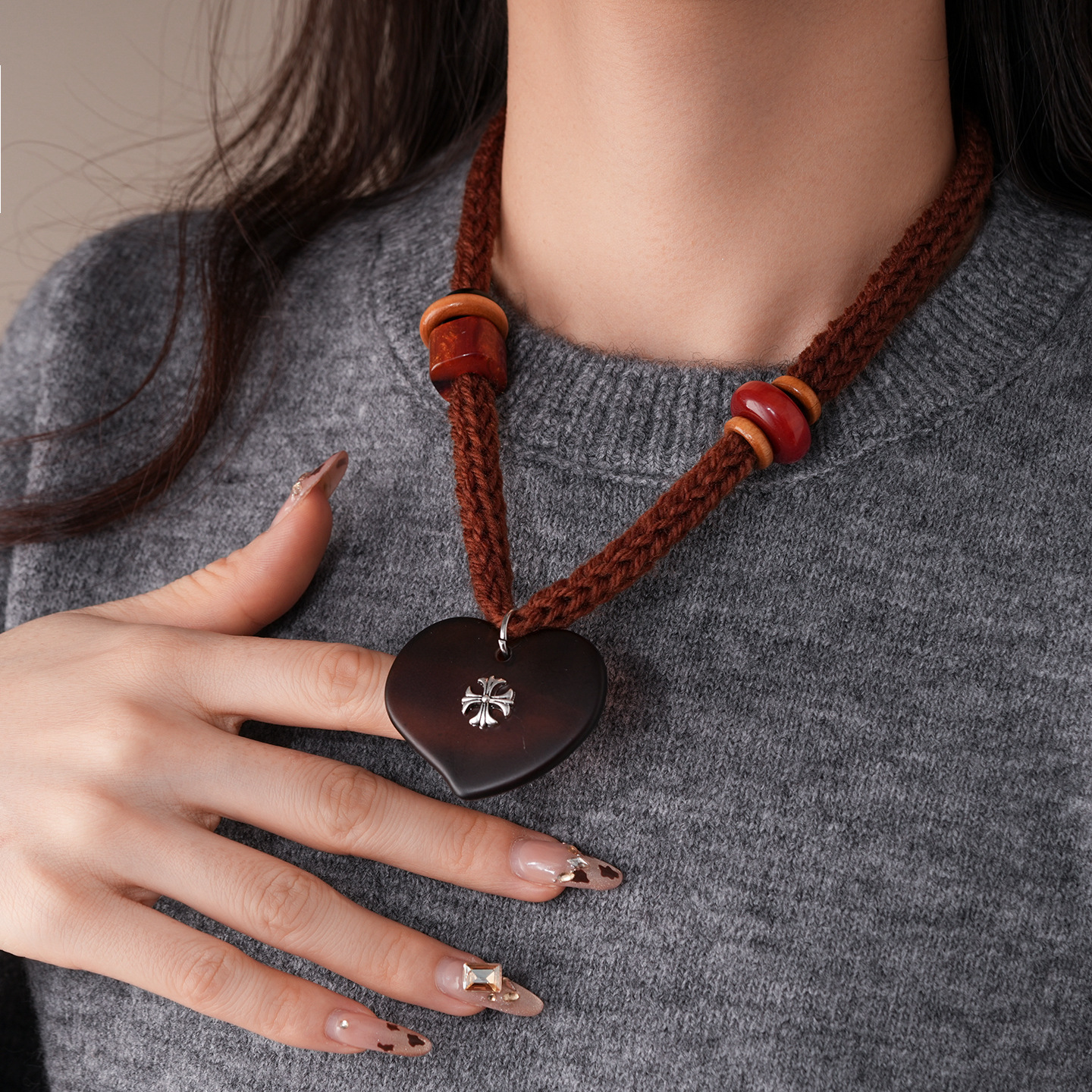 秋冬复古毛绒树脂爱心花朵项链设计感小众毛衣链时尚高级感项饰女
