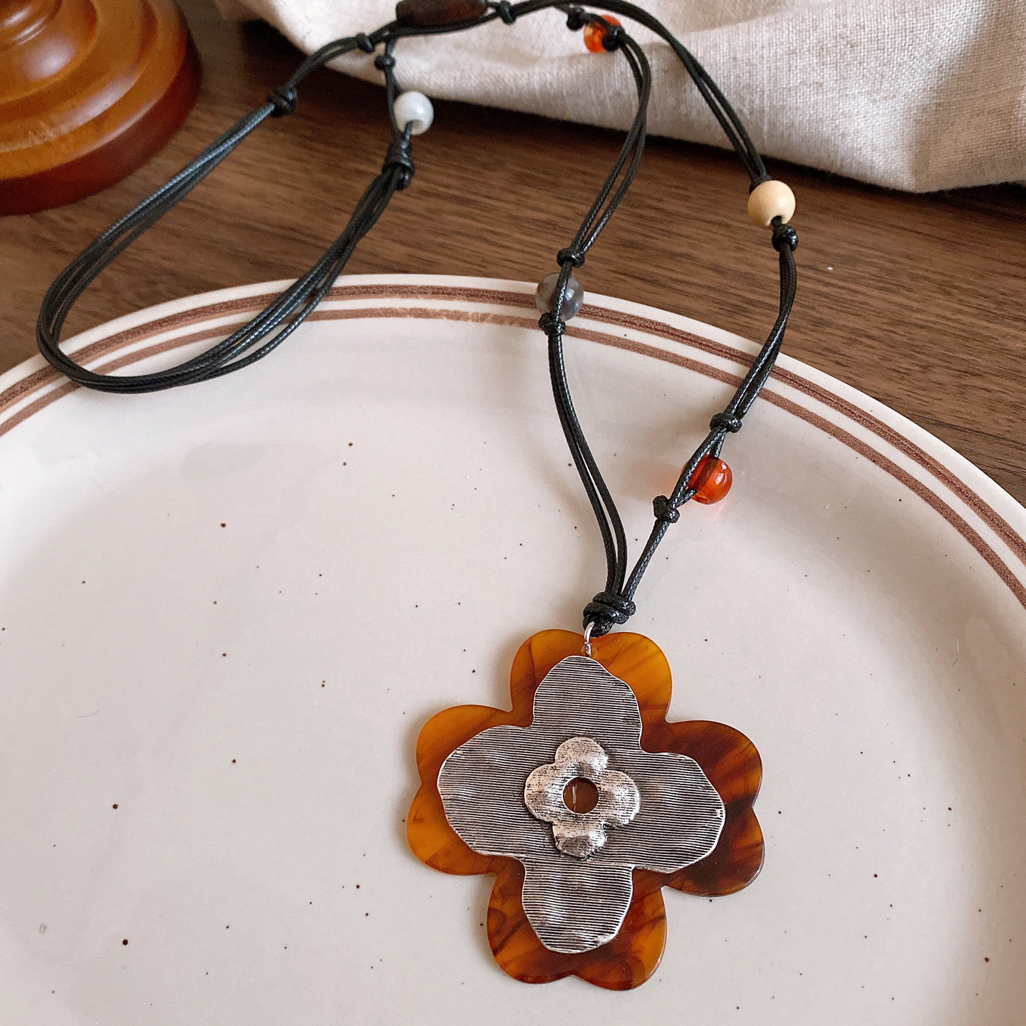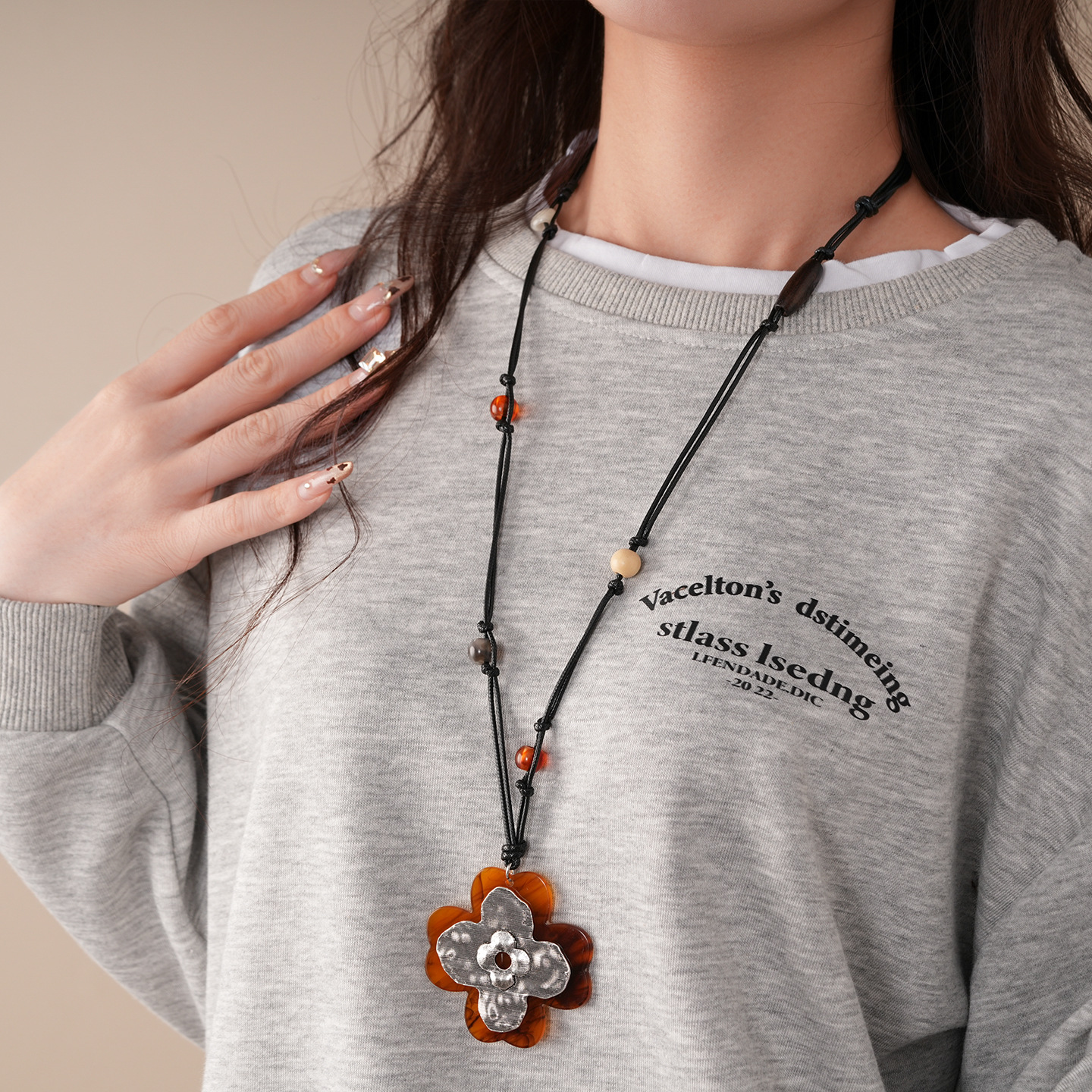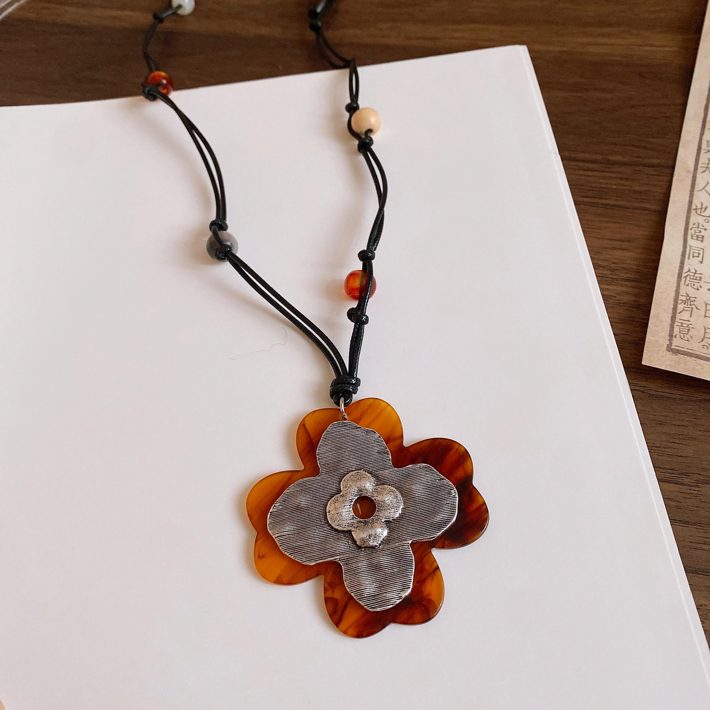 复古美拉德咖色树脂花朵吊坠项链配饰女时尚毛衣链轻奢高级感项饰