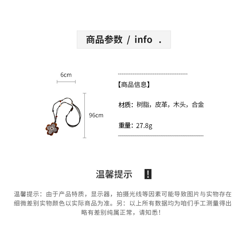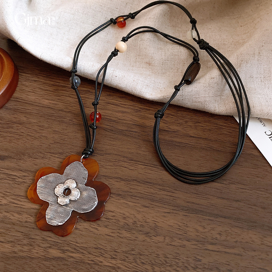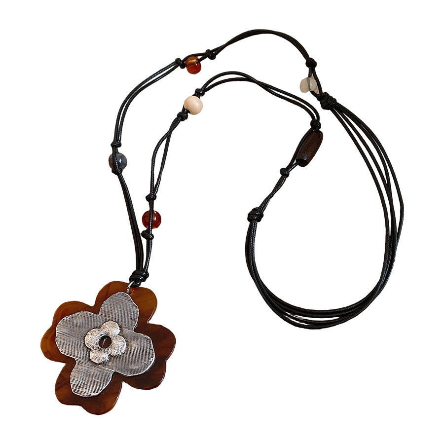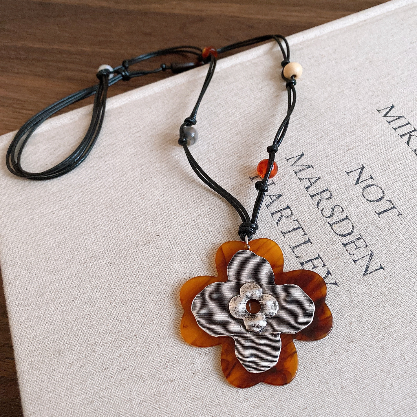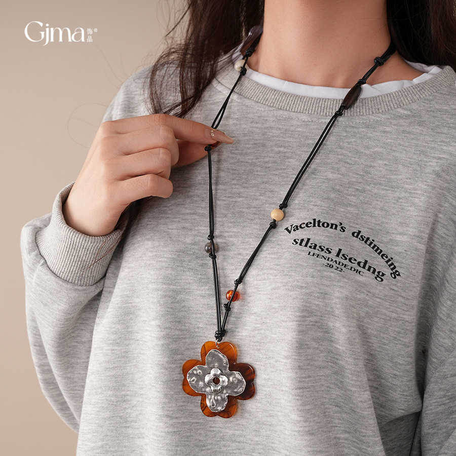 复古美拉德咖色树脂花朵吊坠项链配饰女时尚毛衣链轻奢高级感项饰