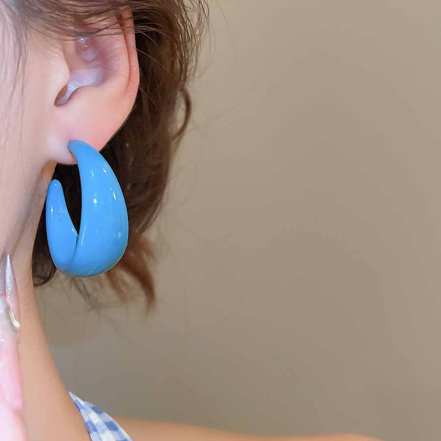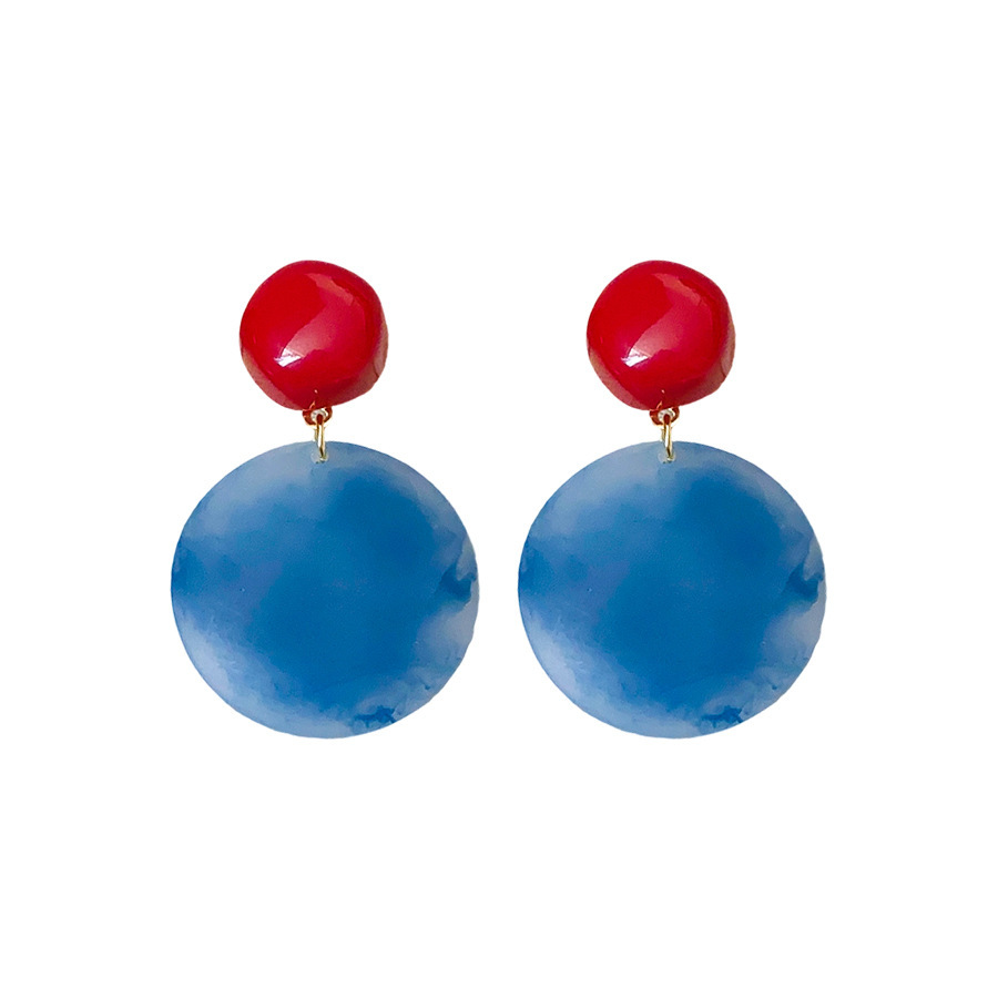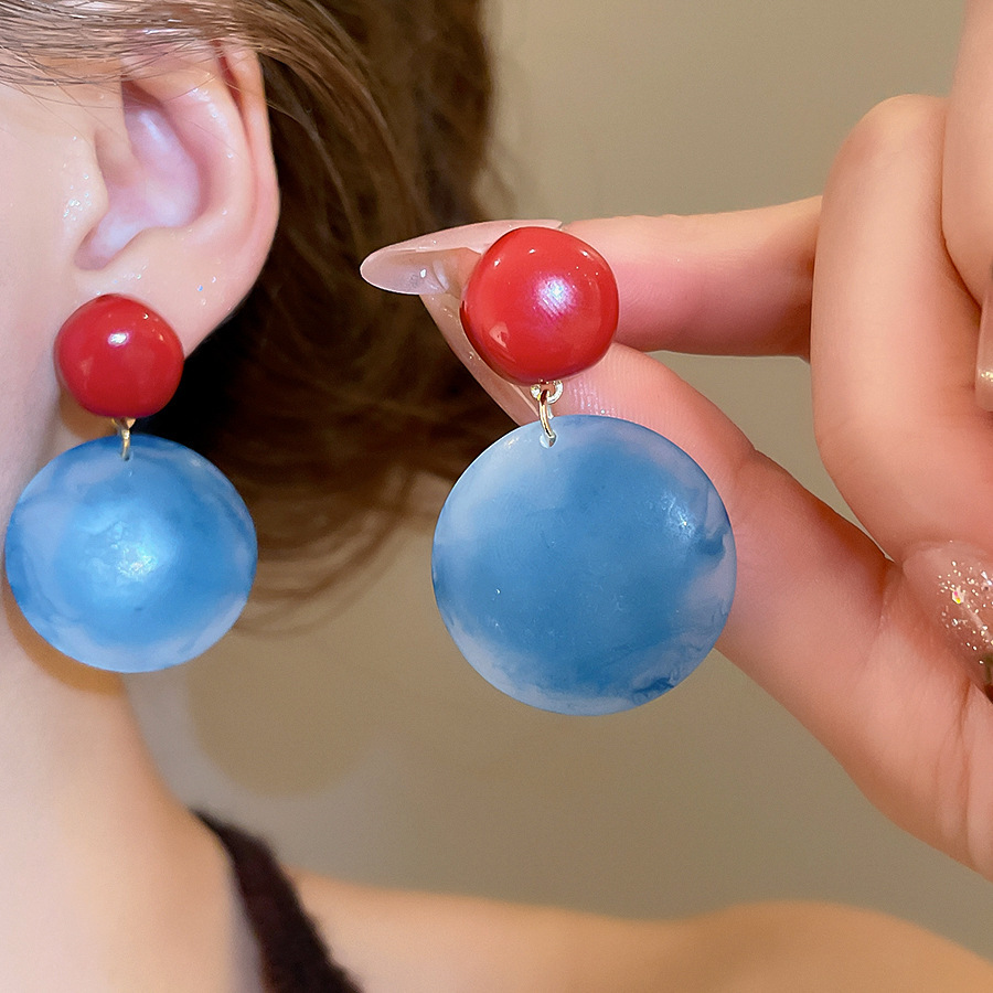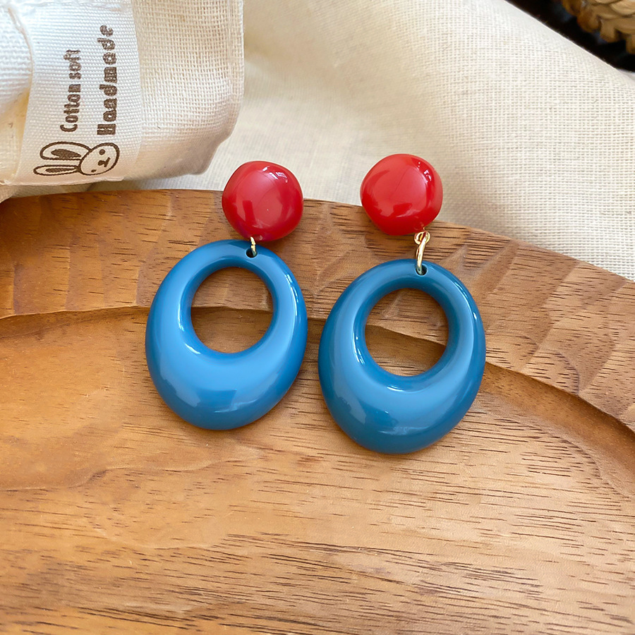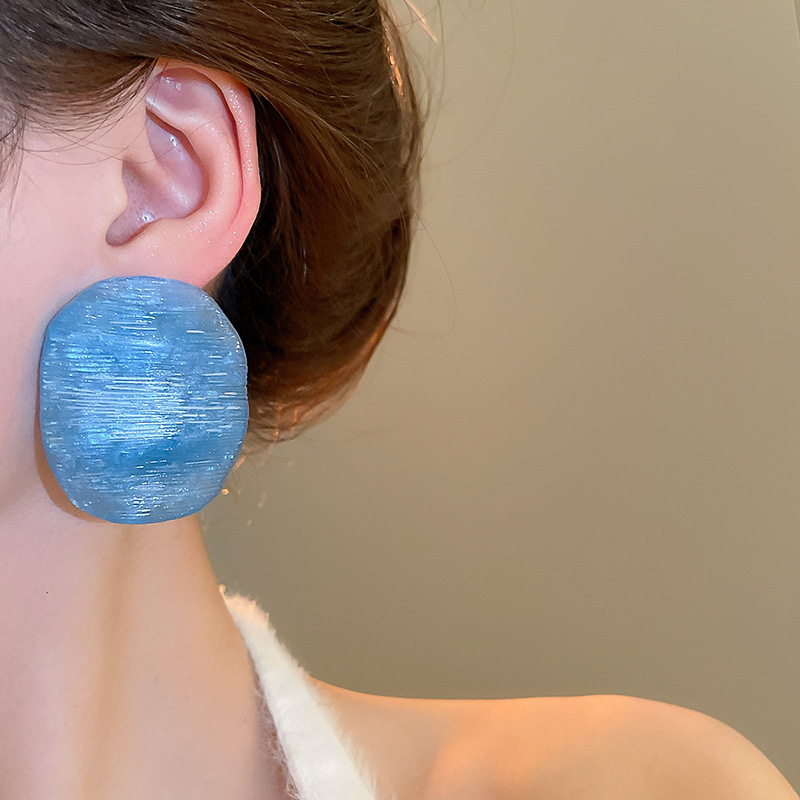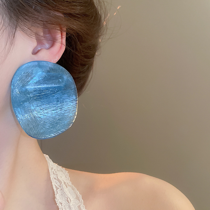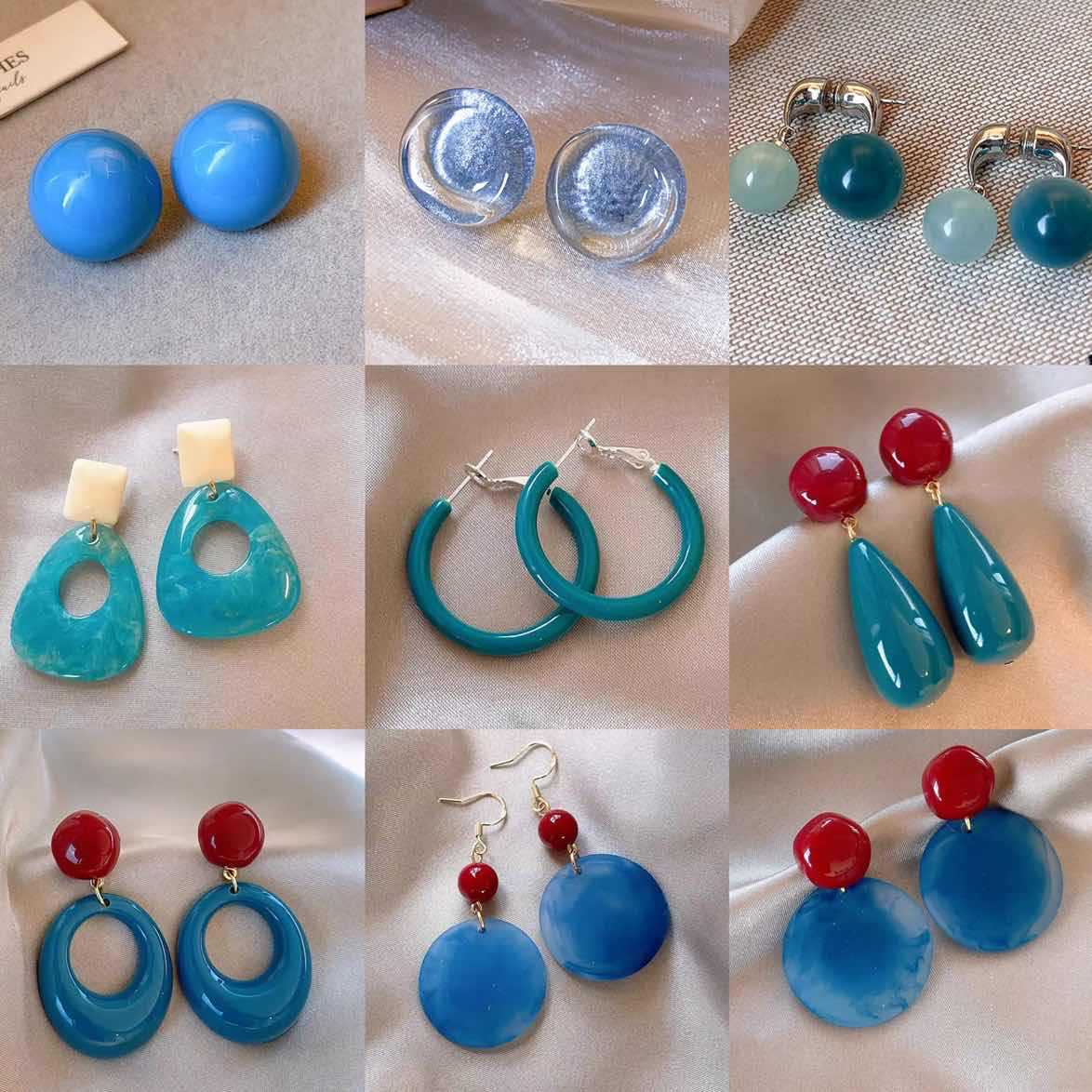 法式清新蓝色几何花朵树脂耳环轻奢高级感耳钉时尚个性气质耳饰女