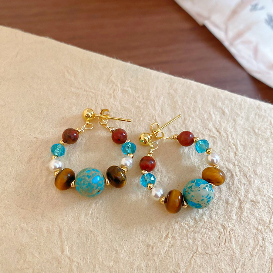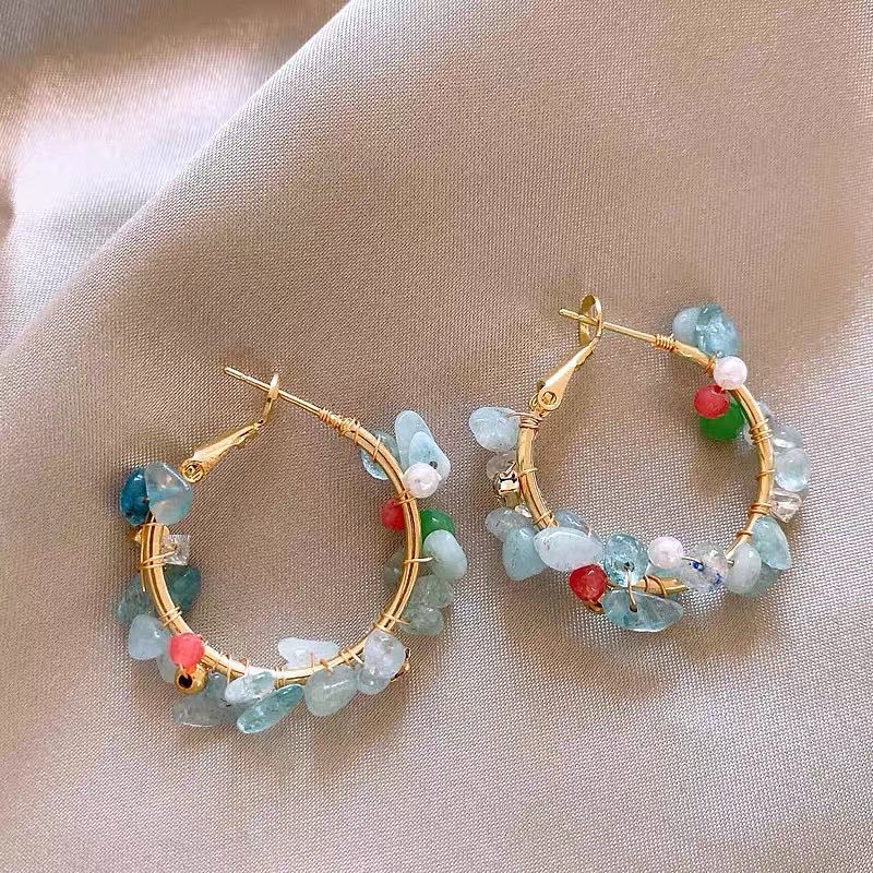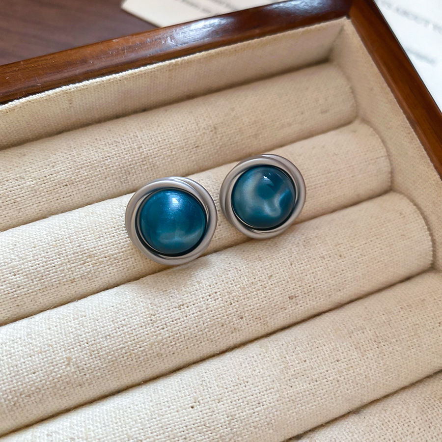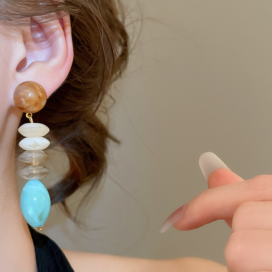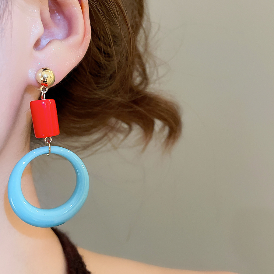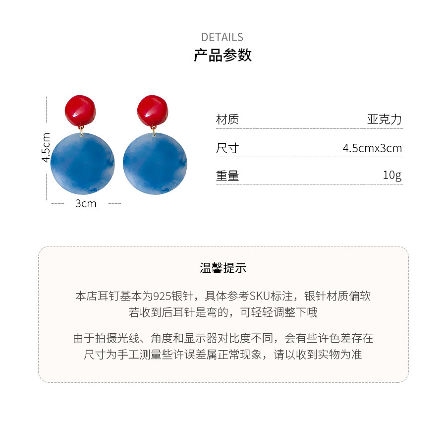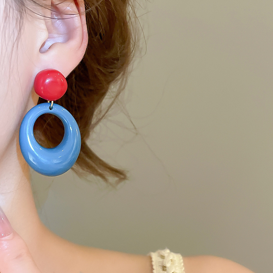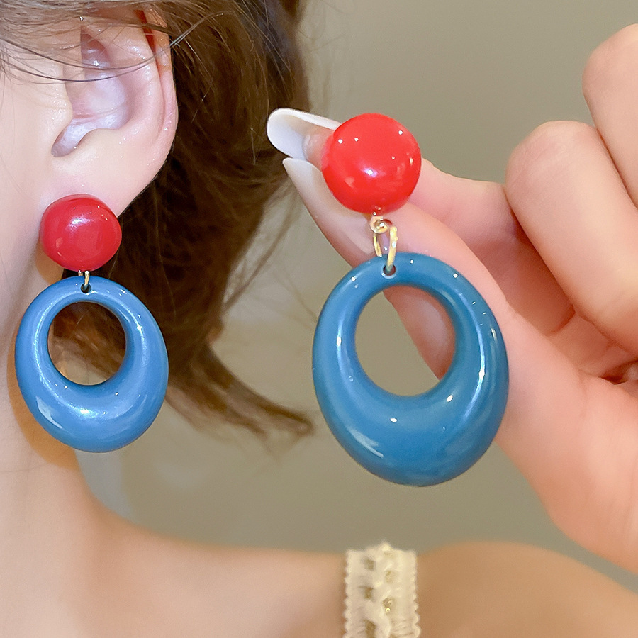 法式清新蓝色几何花朵树脂耳环轻奢高级感耳钉时尚个性气质耳饰女