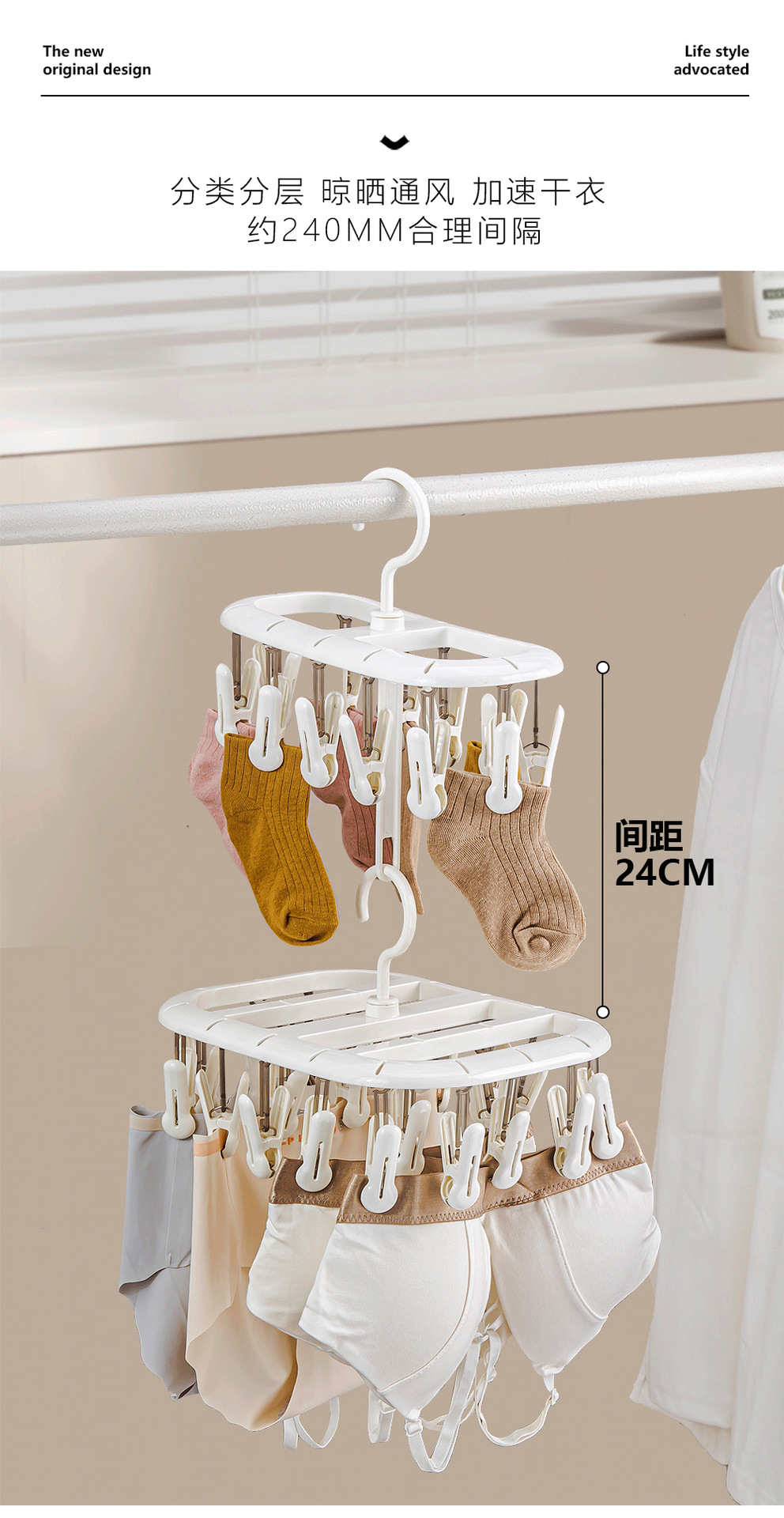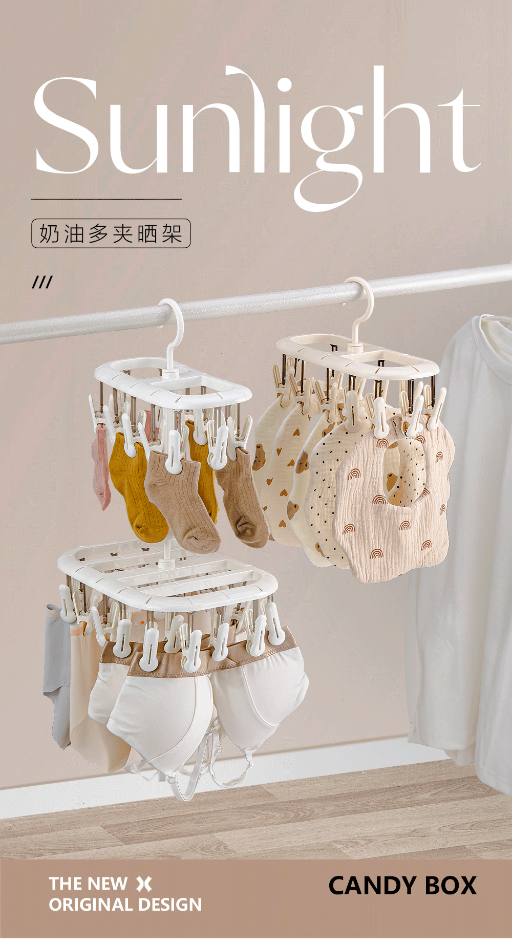 婴儿衣架家用宝宝挂内衣内裤晾衣架多夹子晾晒袜子多功能晾晒架