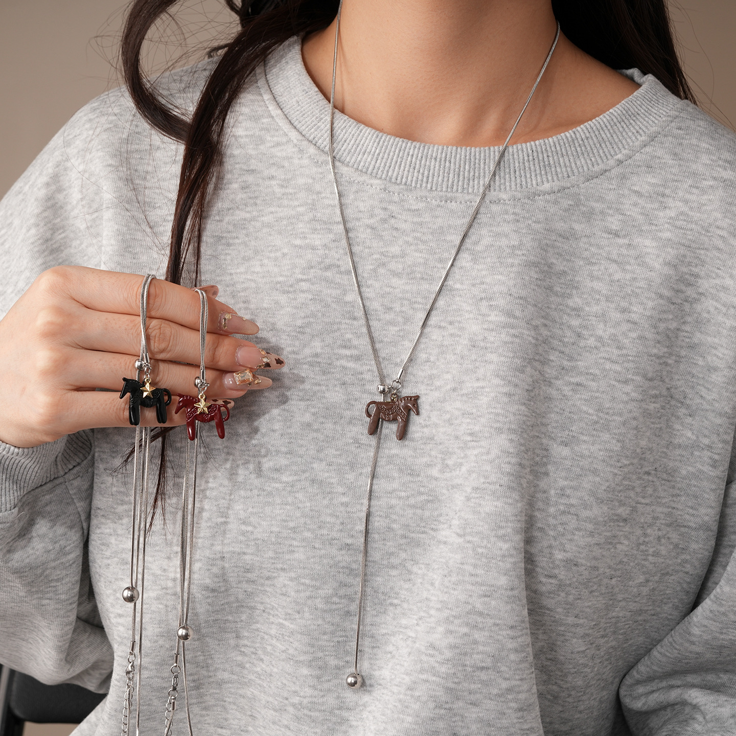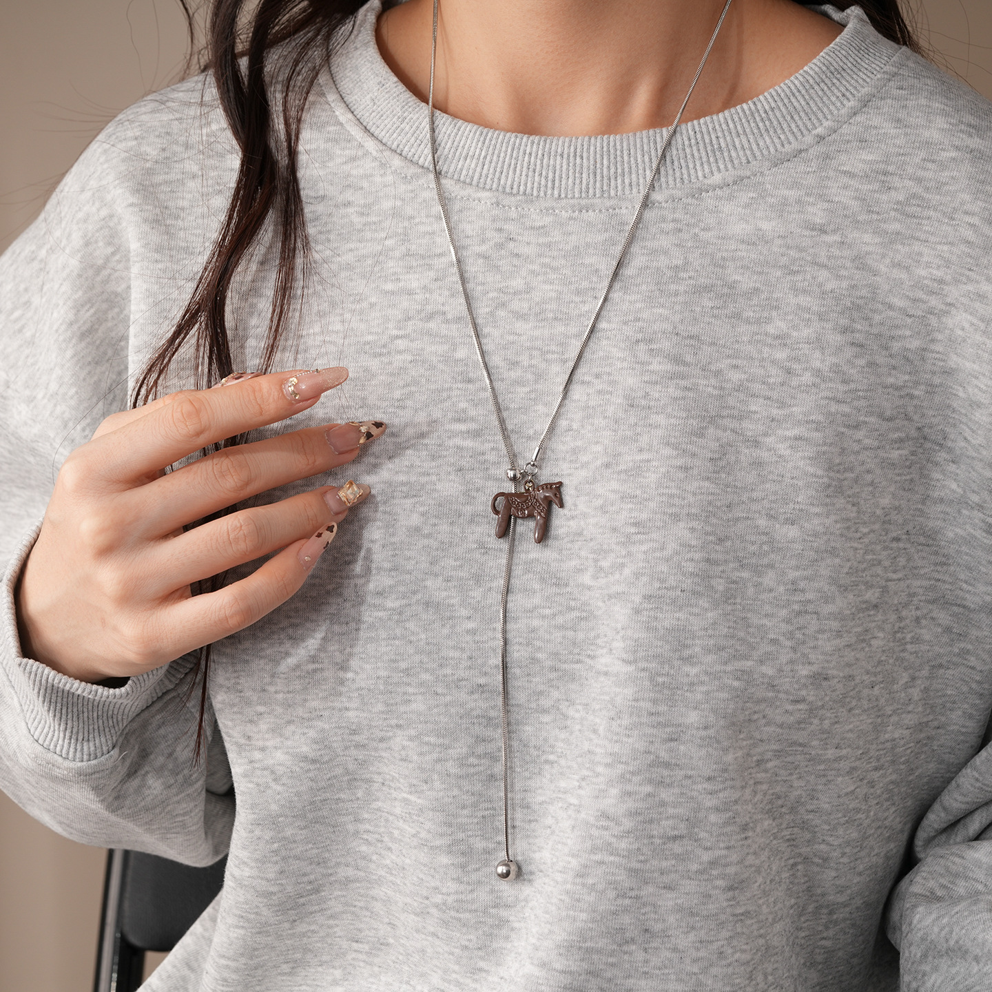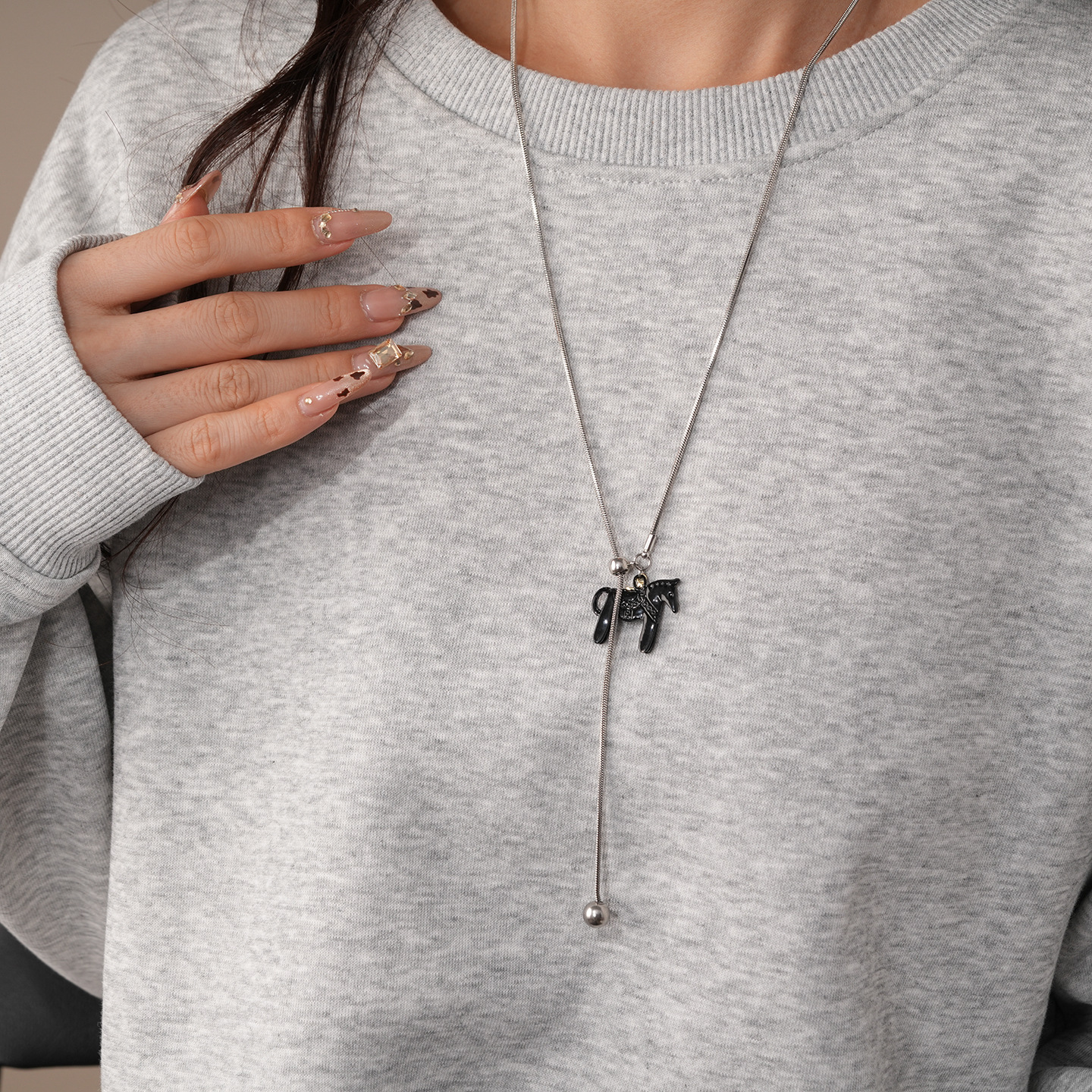秋冬简约小马可抽拉吊坠项链轻奢高级感毛衣链个性小众设计感项饰