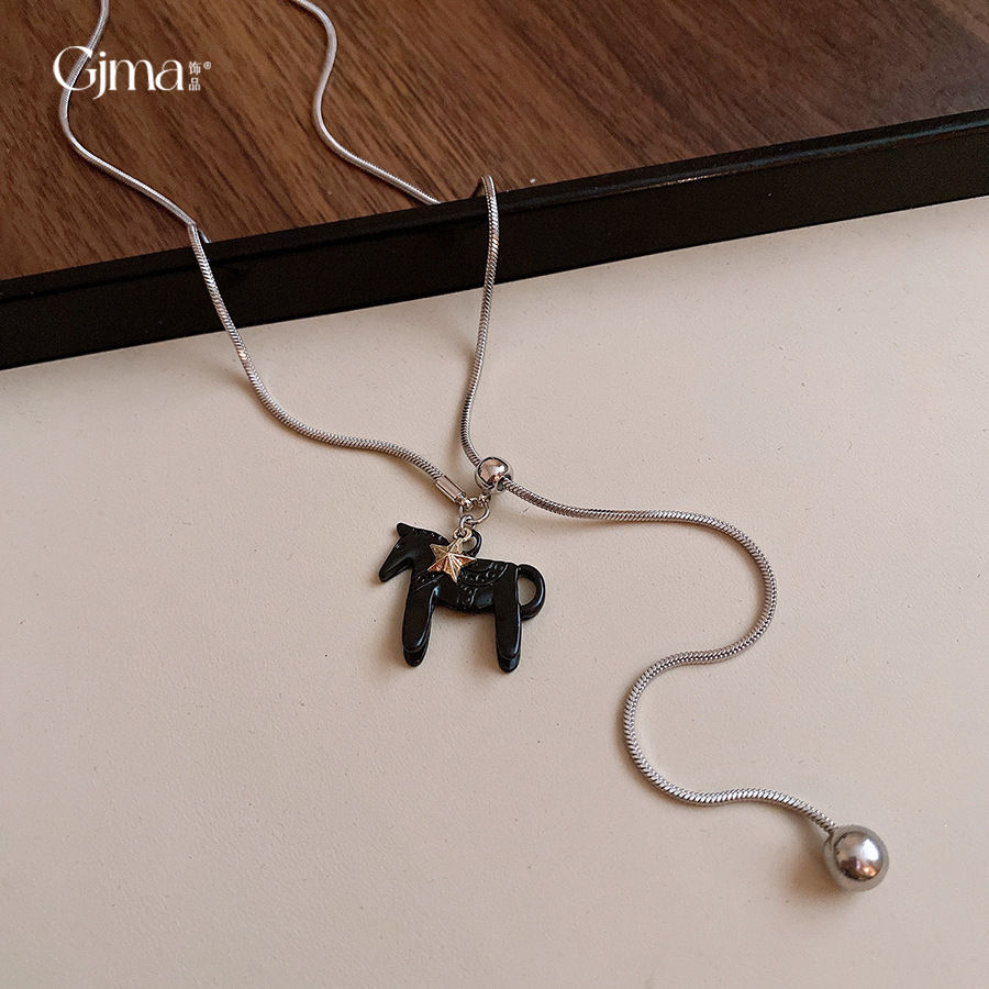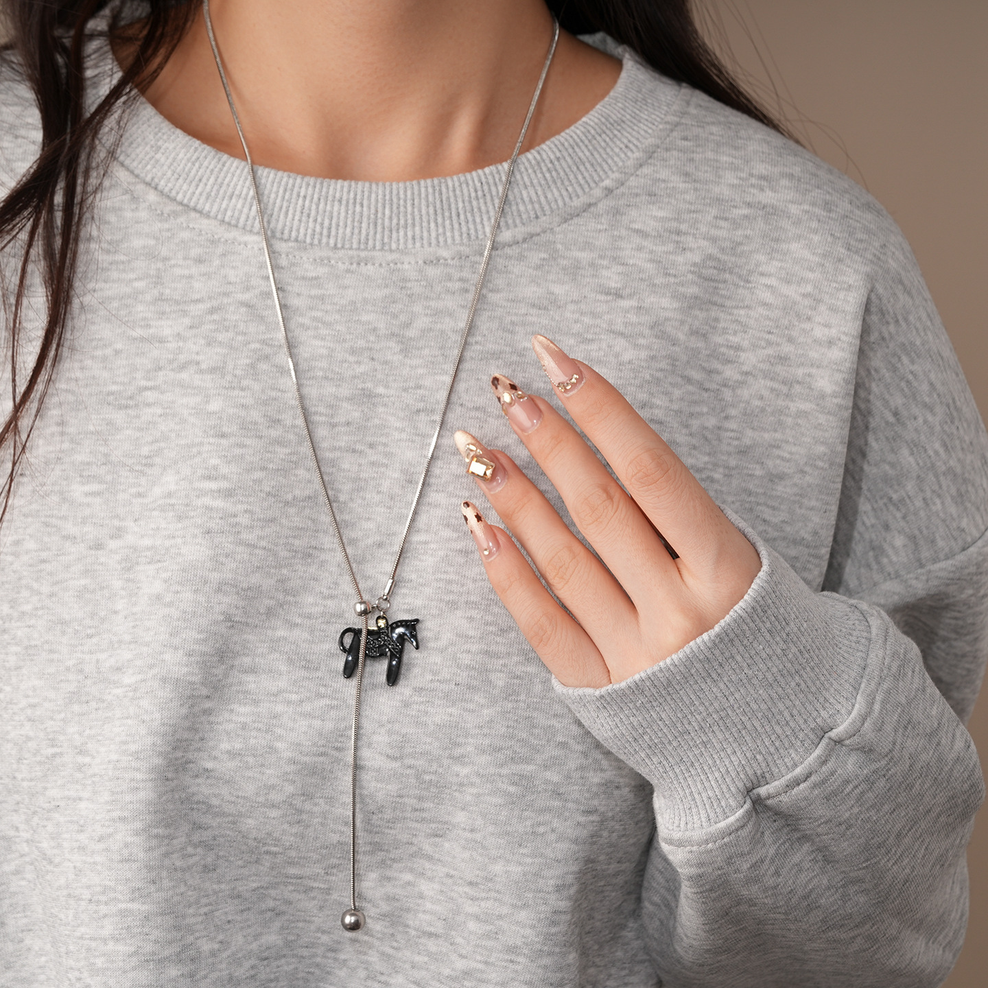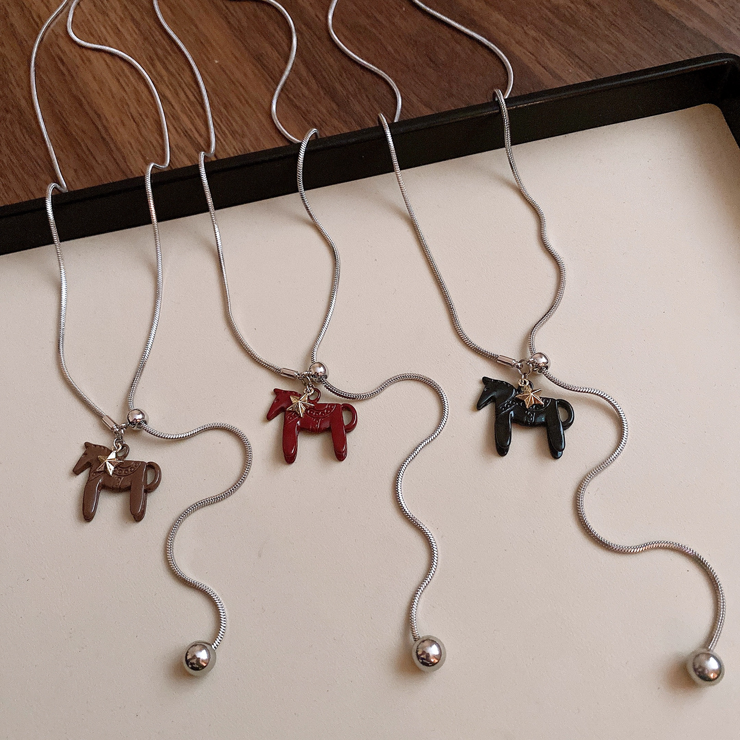 秋冬简约小马可抽拉吊坠项链轻奢高级感毛衣链个性小众设计感项饰