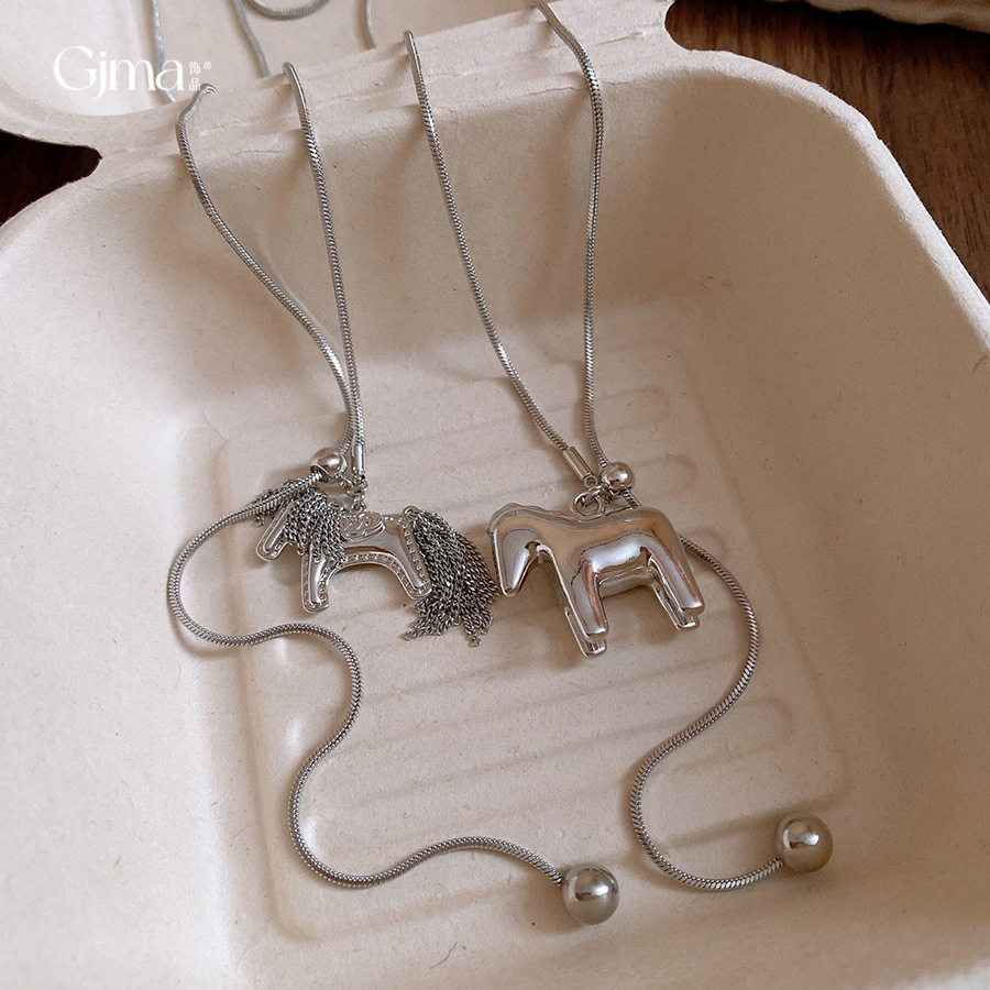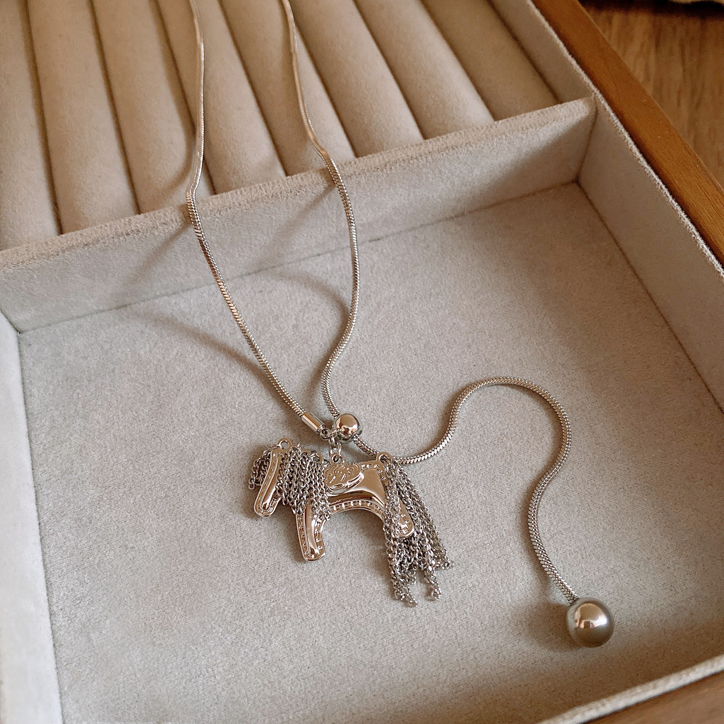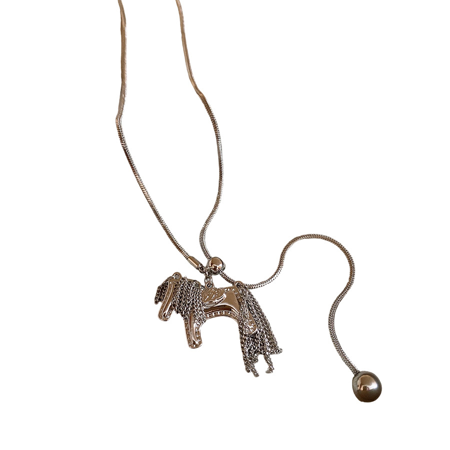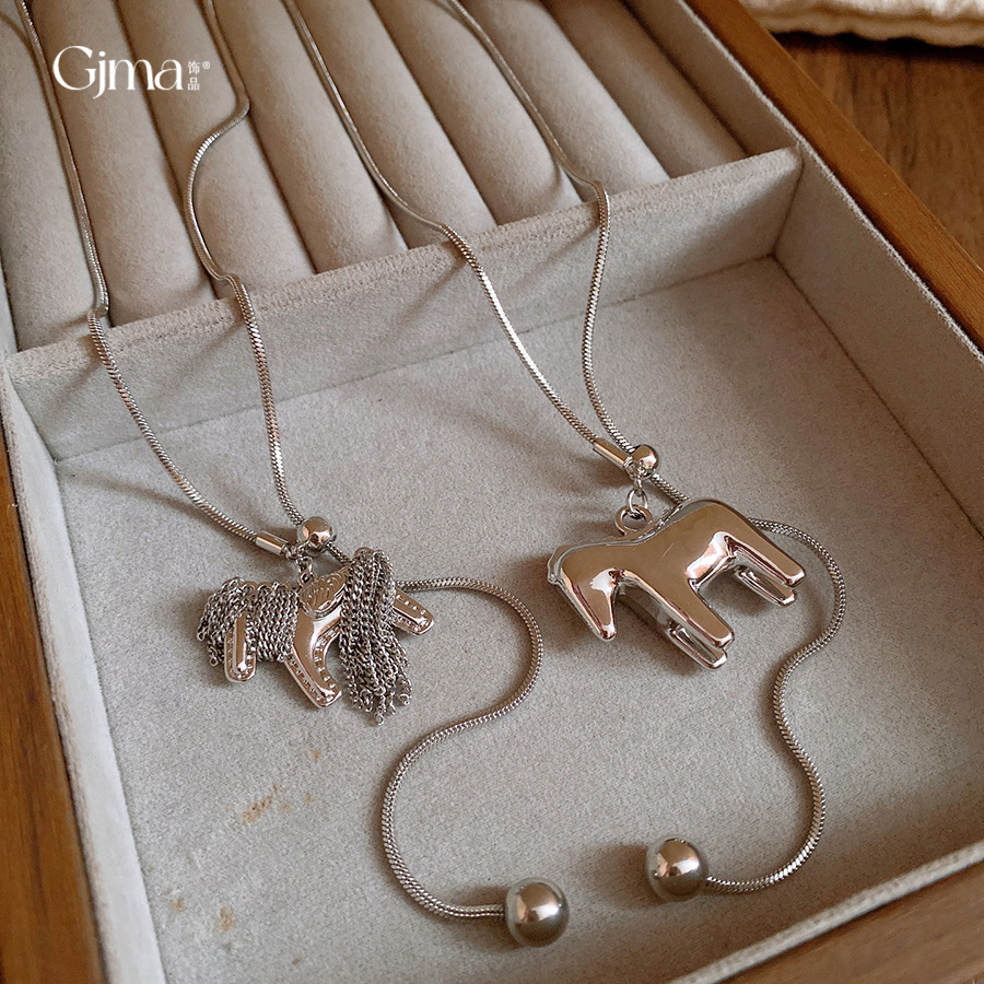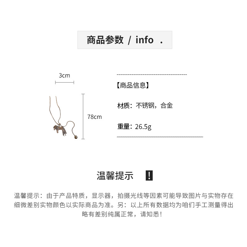 不锈钢韩系ins风小马吊坠项链轻奢高级感毛衣链时尚个性百搭项饰