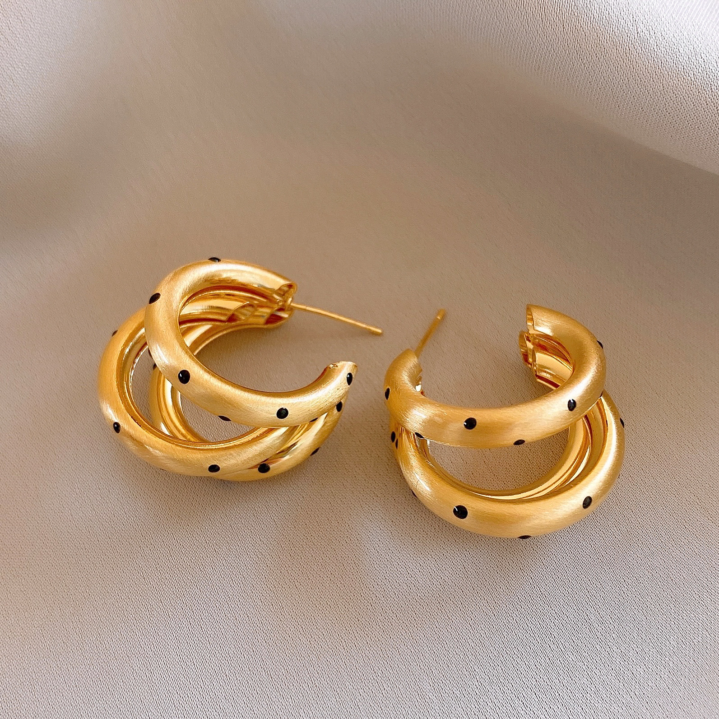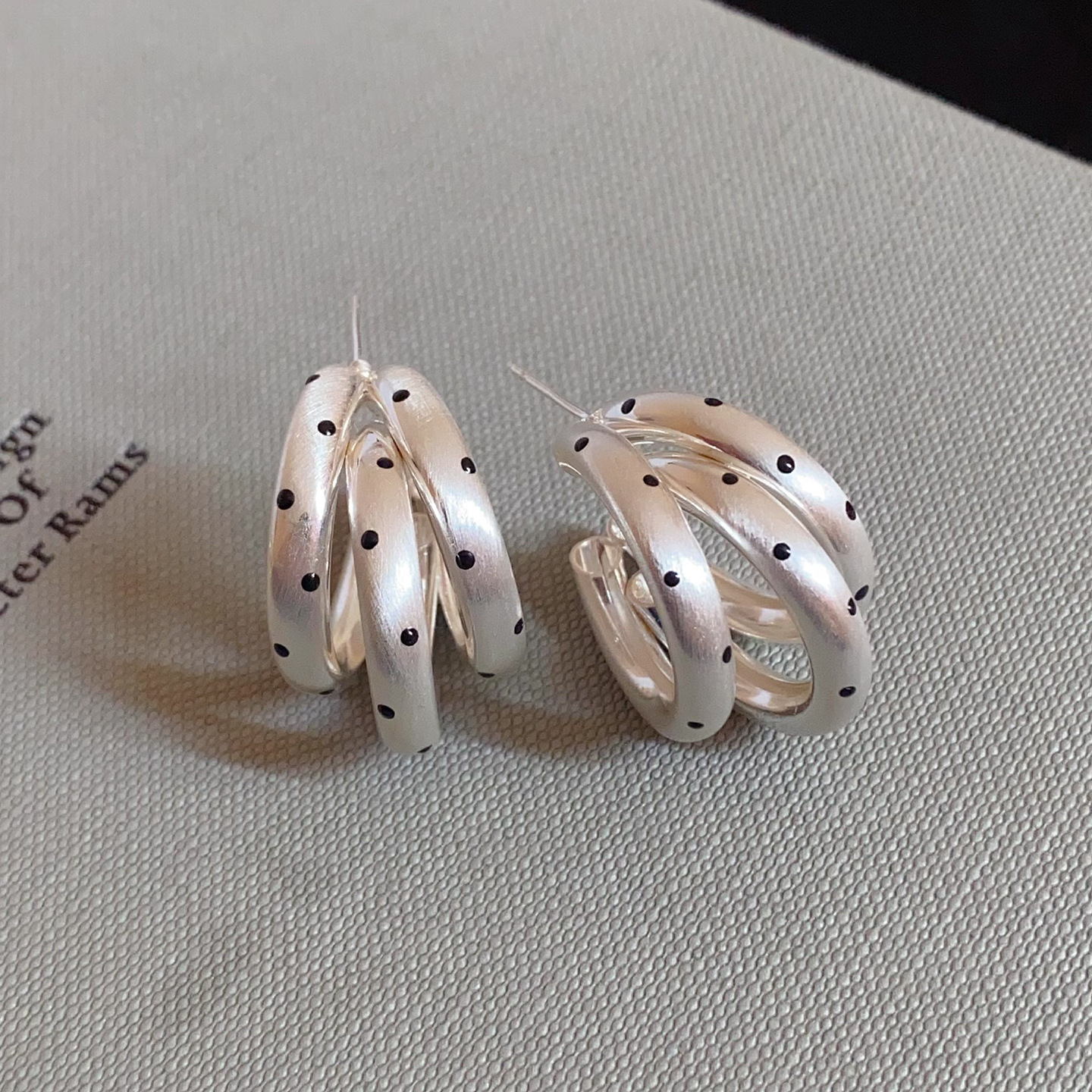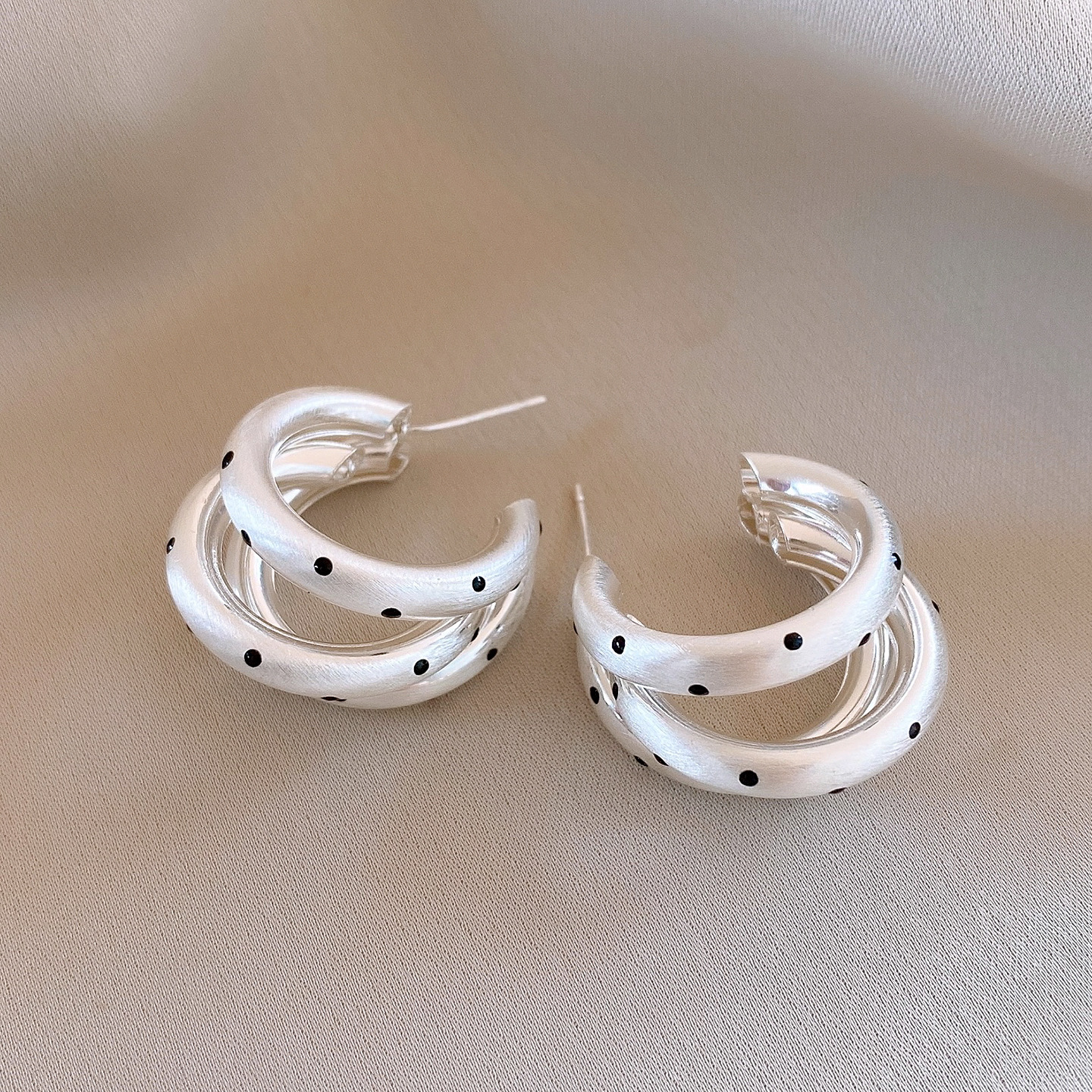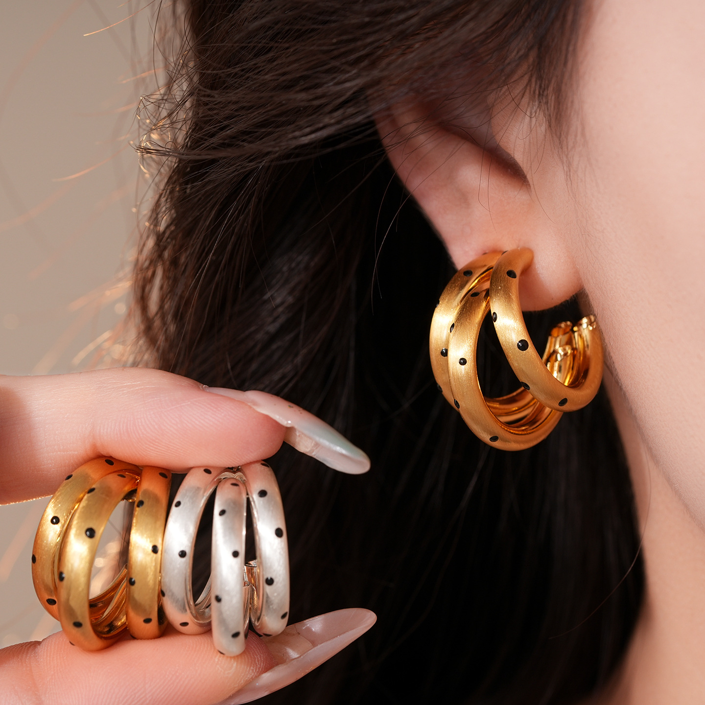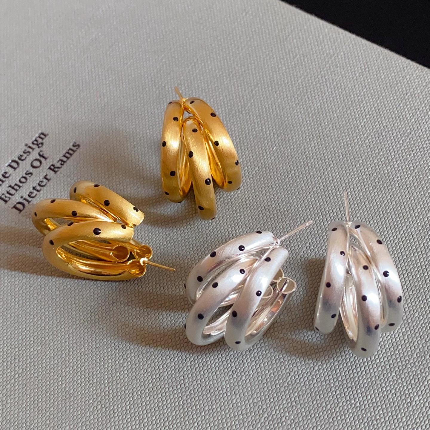 银针欧美跨境多层波点C形耳环轻奢高级感耳圈耳钉耳饰设计感小众
