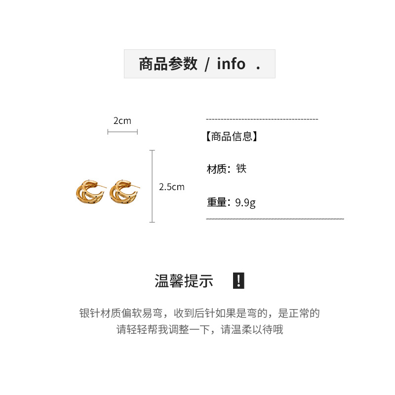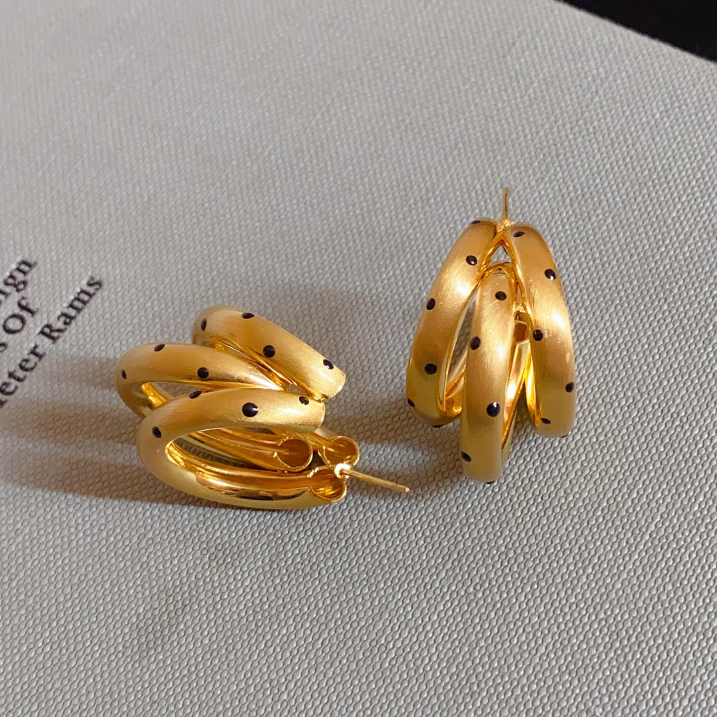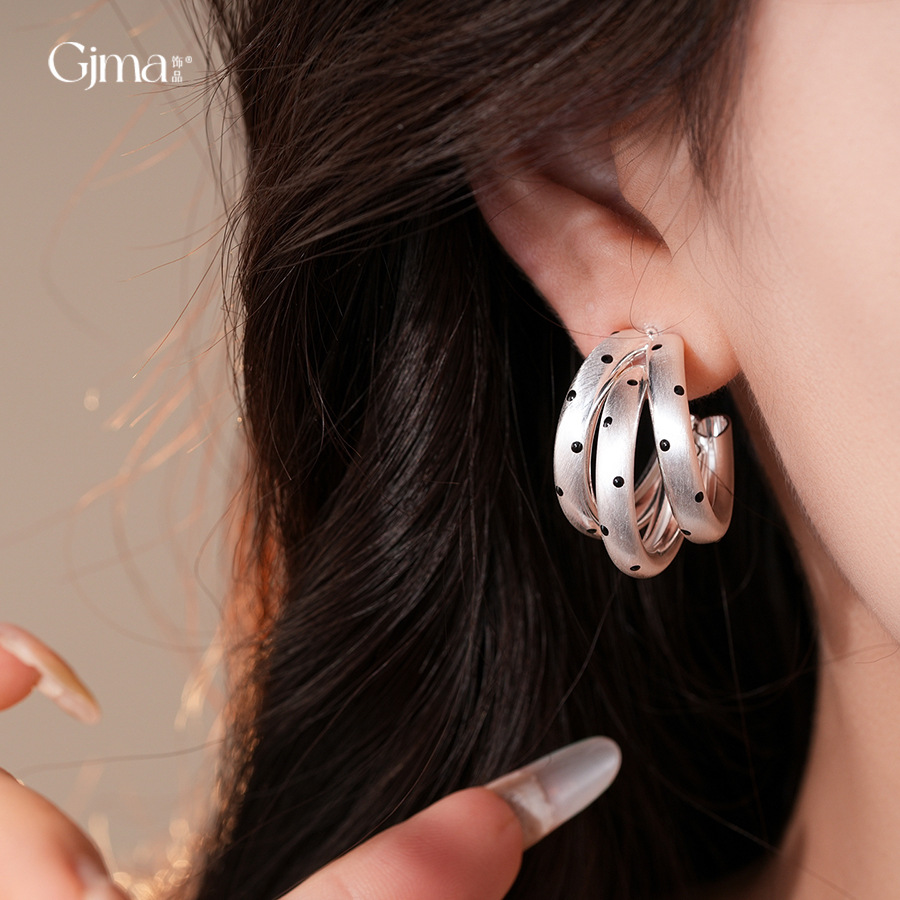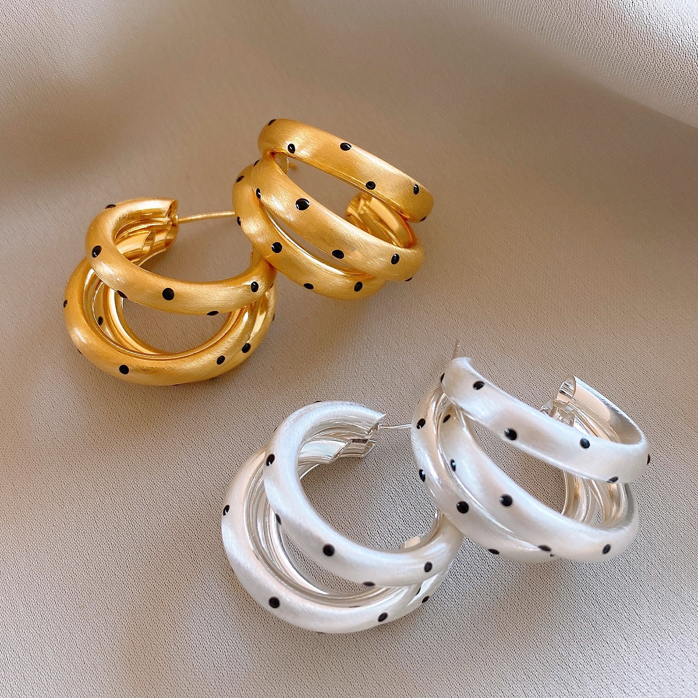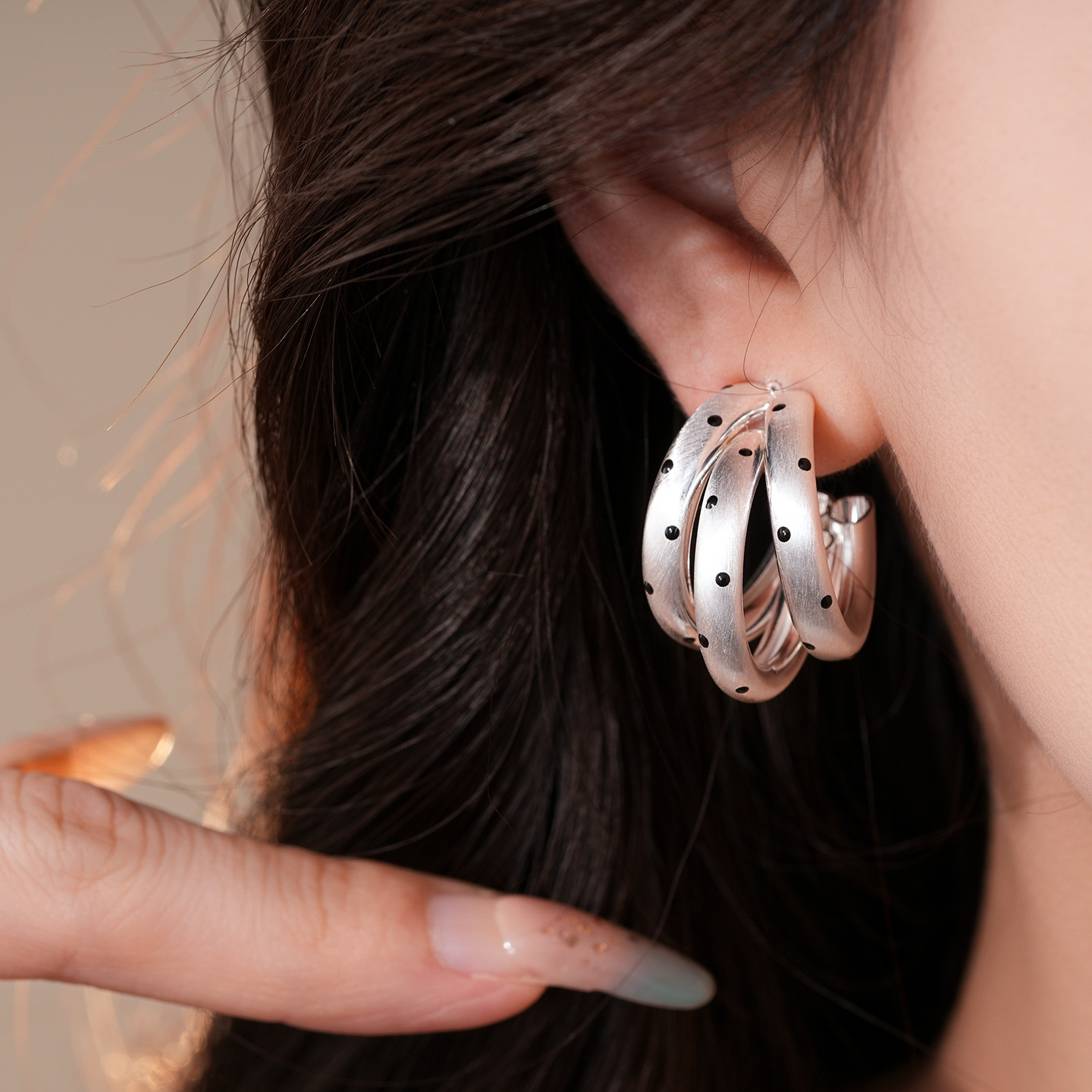 银针欧美跨境多层波点C形耳环轻奢高级感耳圈耳钉耳饰设计感小众