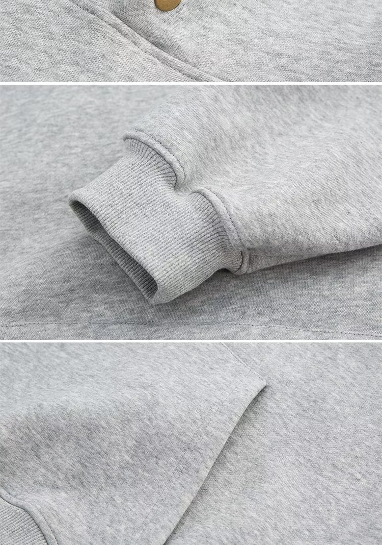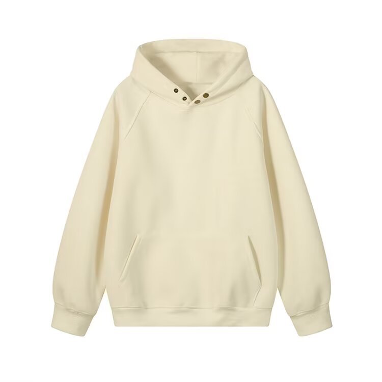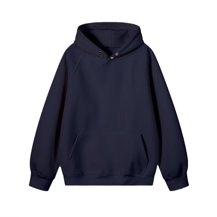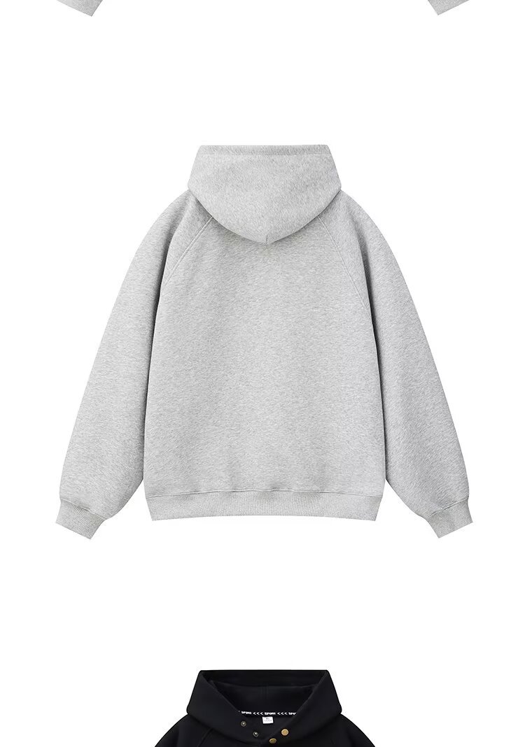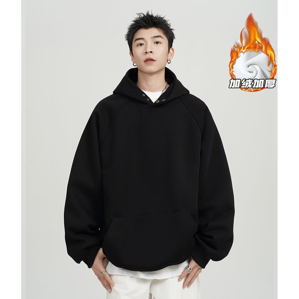 美式纽扣连帽纯色卫衣重磅长袖男女秋冬季加绒套头宽松百搭卫衣潮