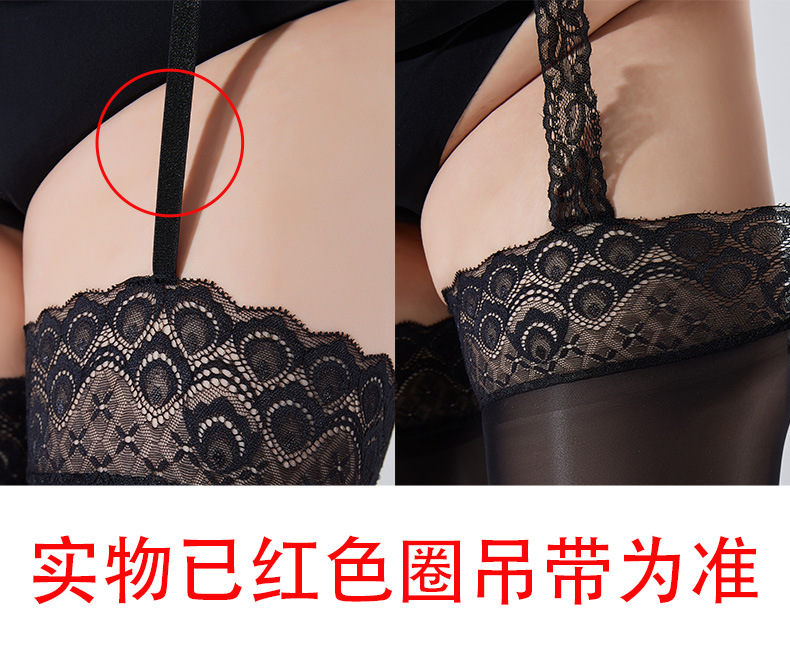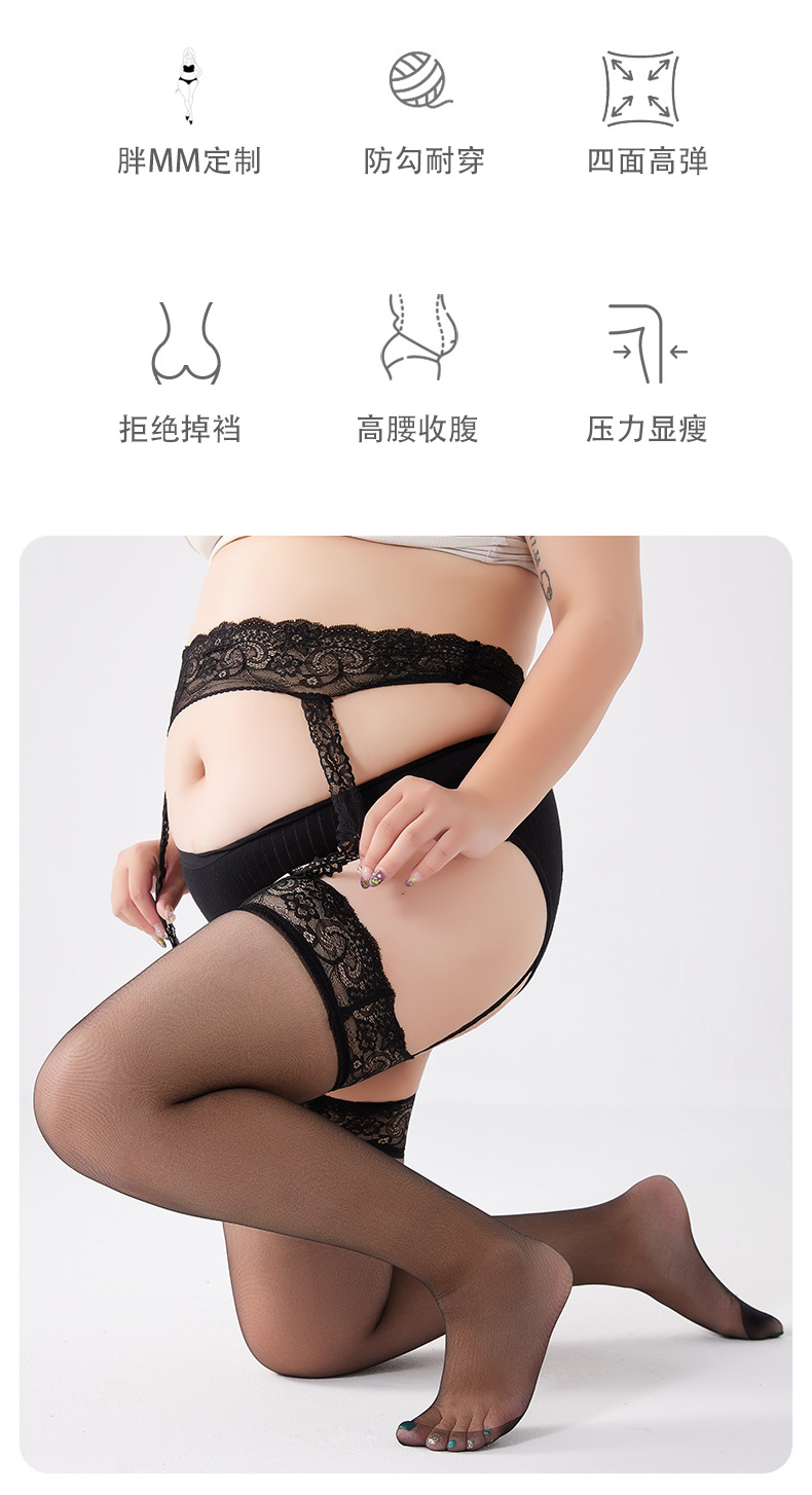 跨境大码胖mm网红吊带袜蕾丝一体女性感超薄白色黑丝袜长筒袜过膝