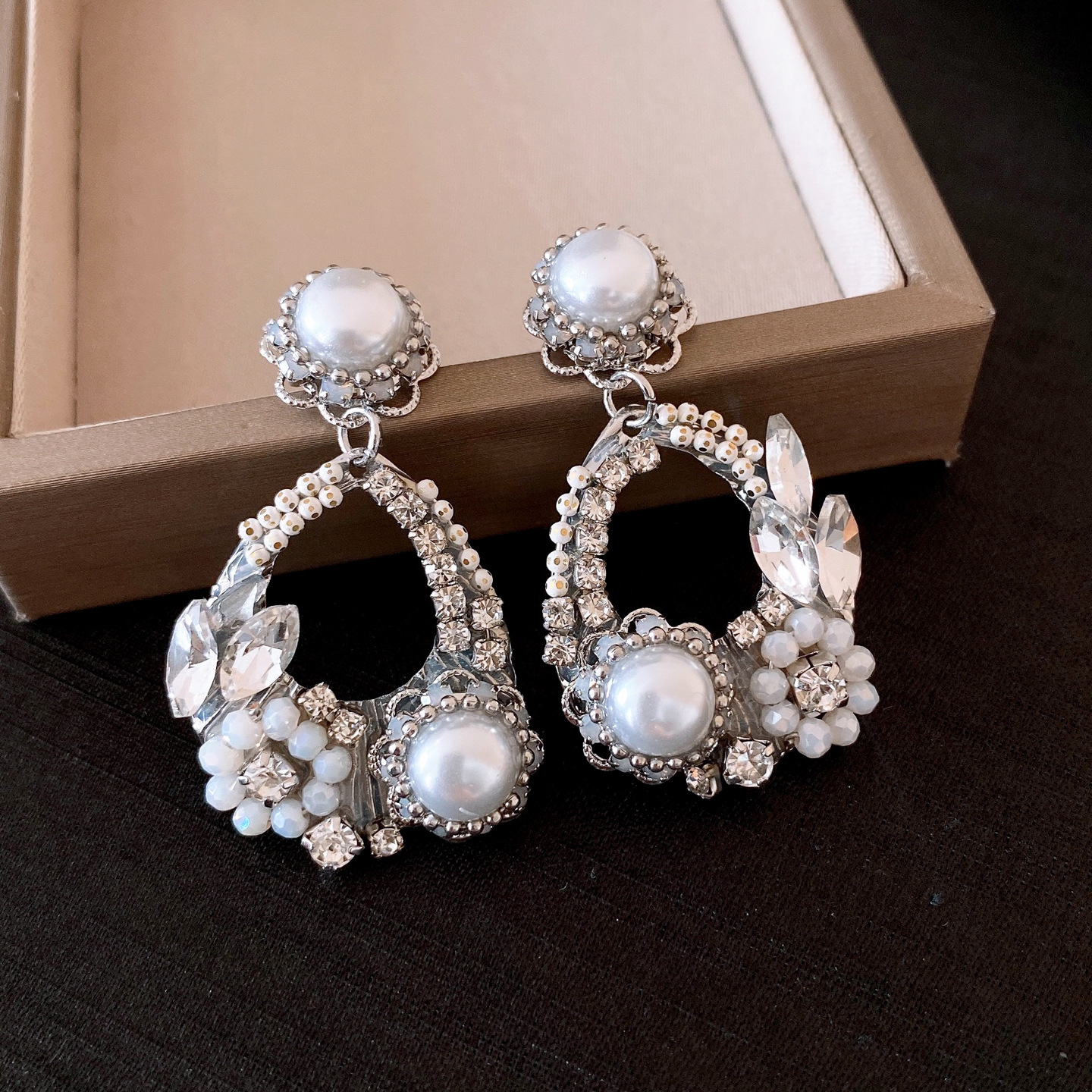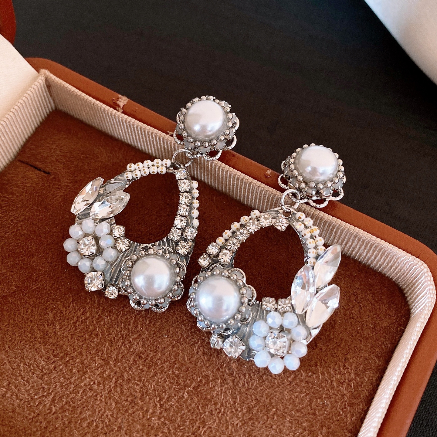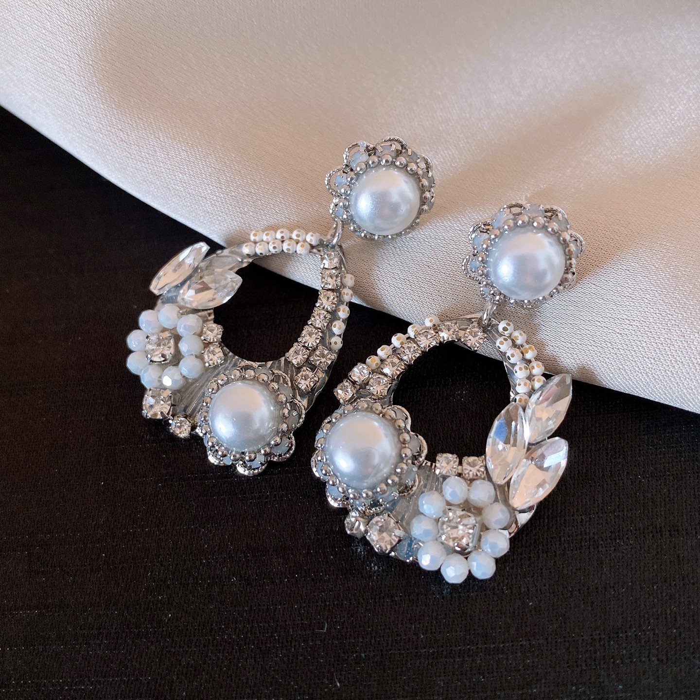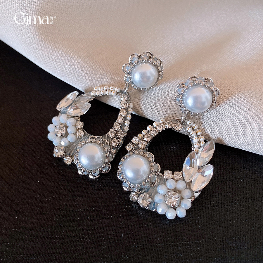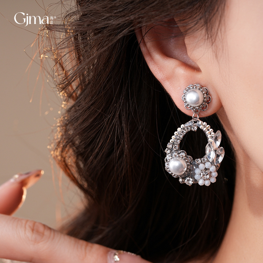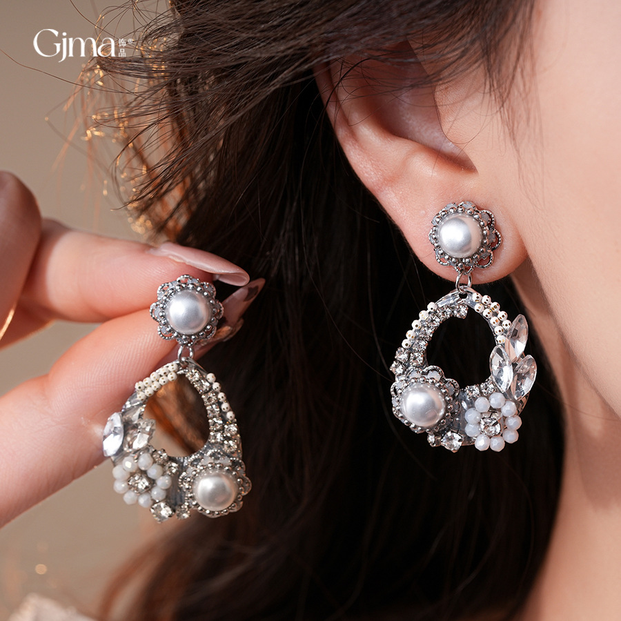 欧美跨境水滴镂空花朵珍珠耳环轻奢高级感耳钉精致气质小众耳饰女