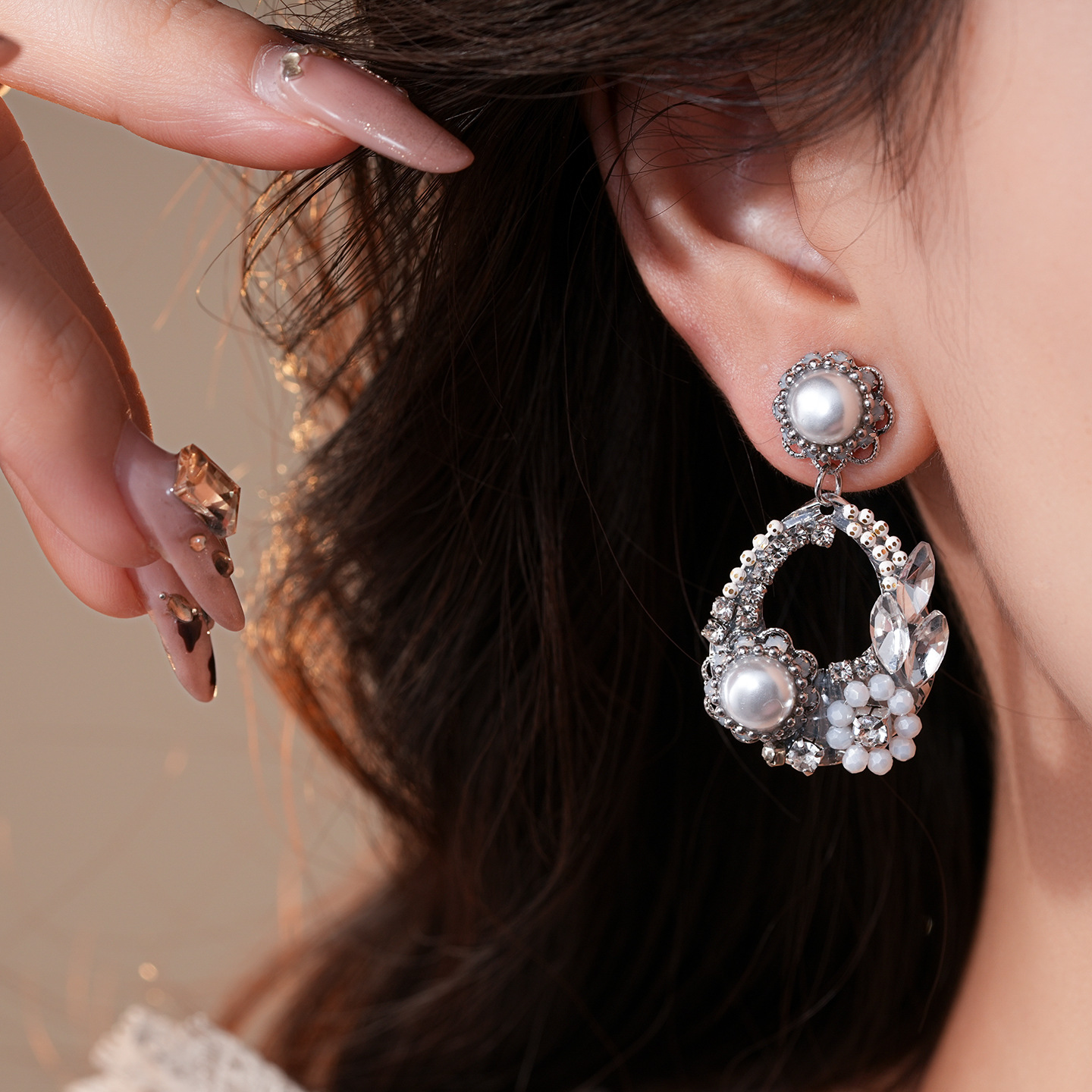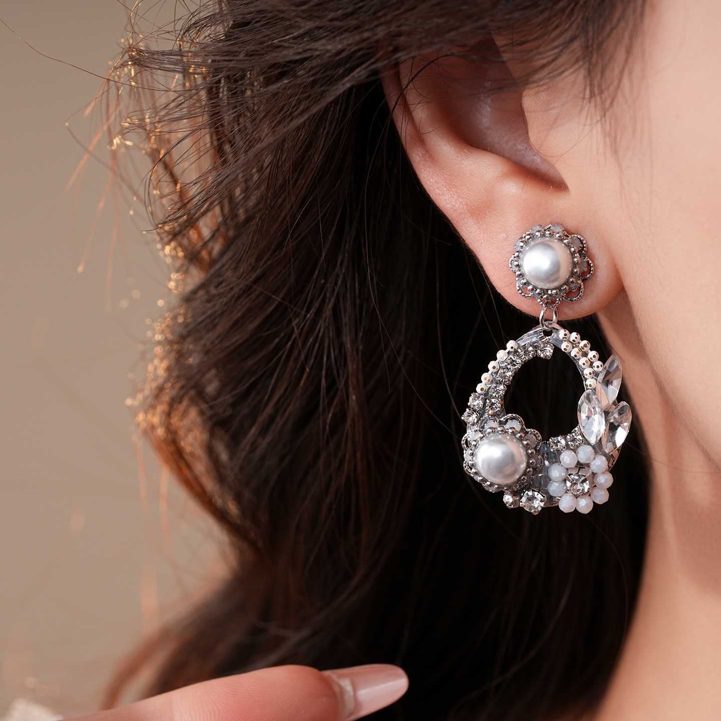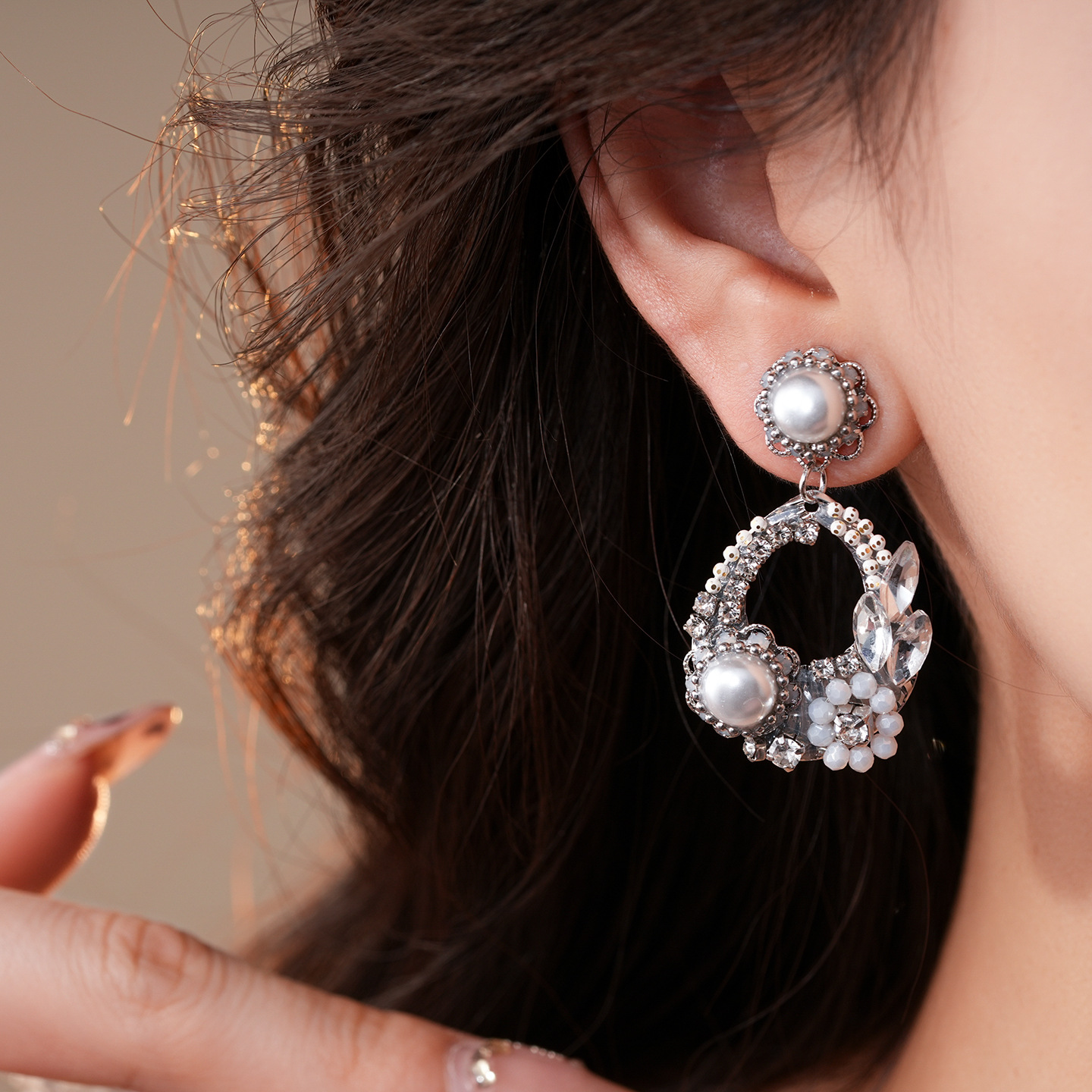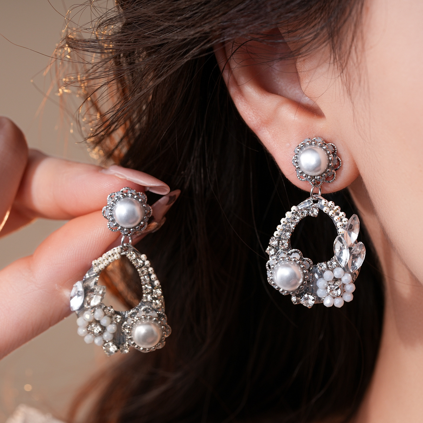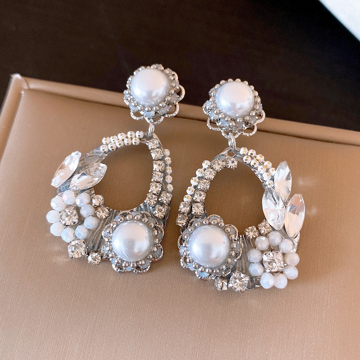 欧美跨境水滴镂空花朵珍珠耳环轻奢高级感耳钉精致气质小众耳饰女