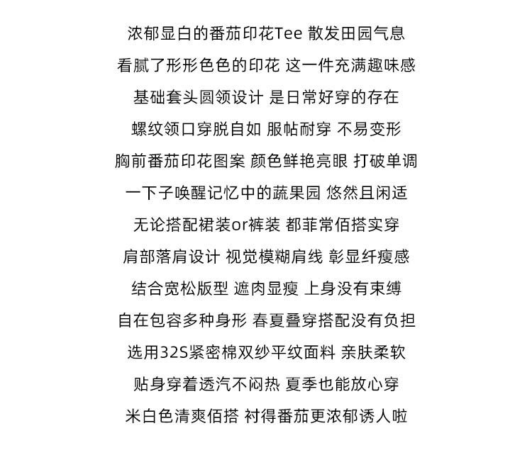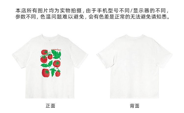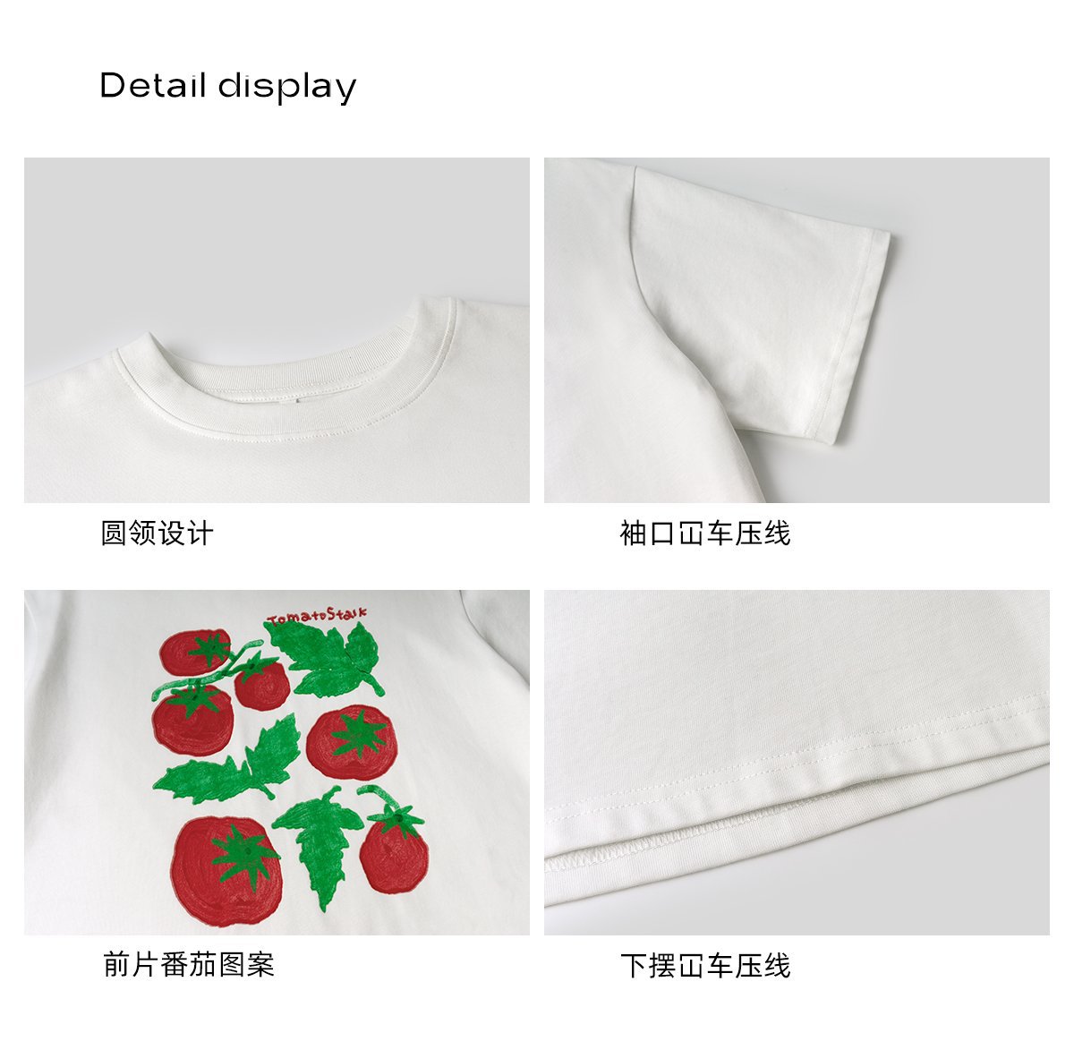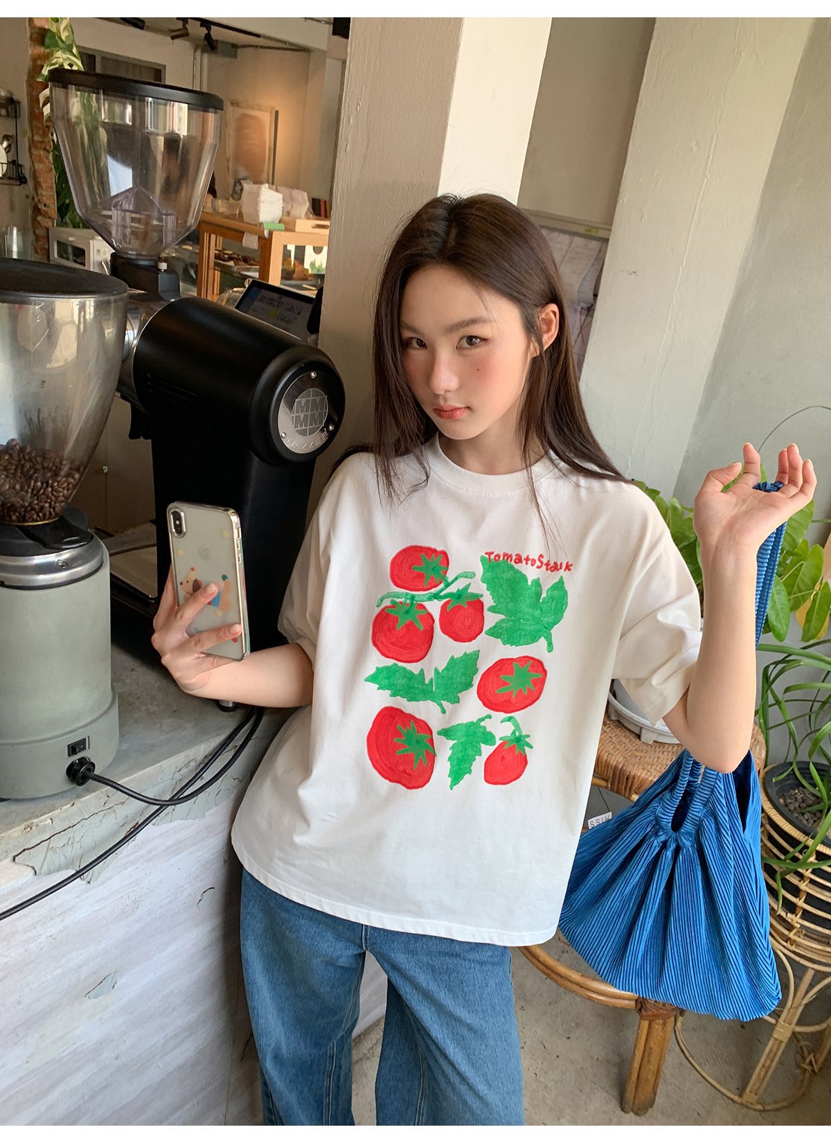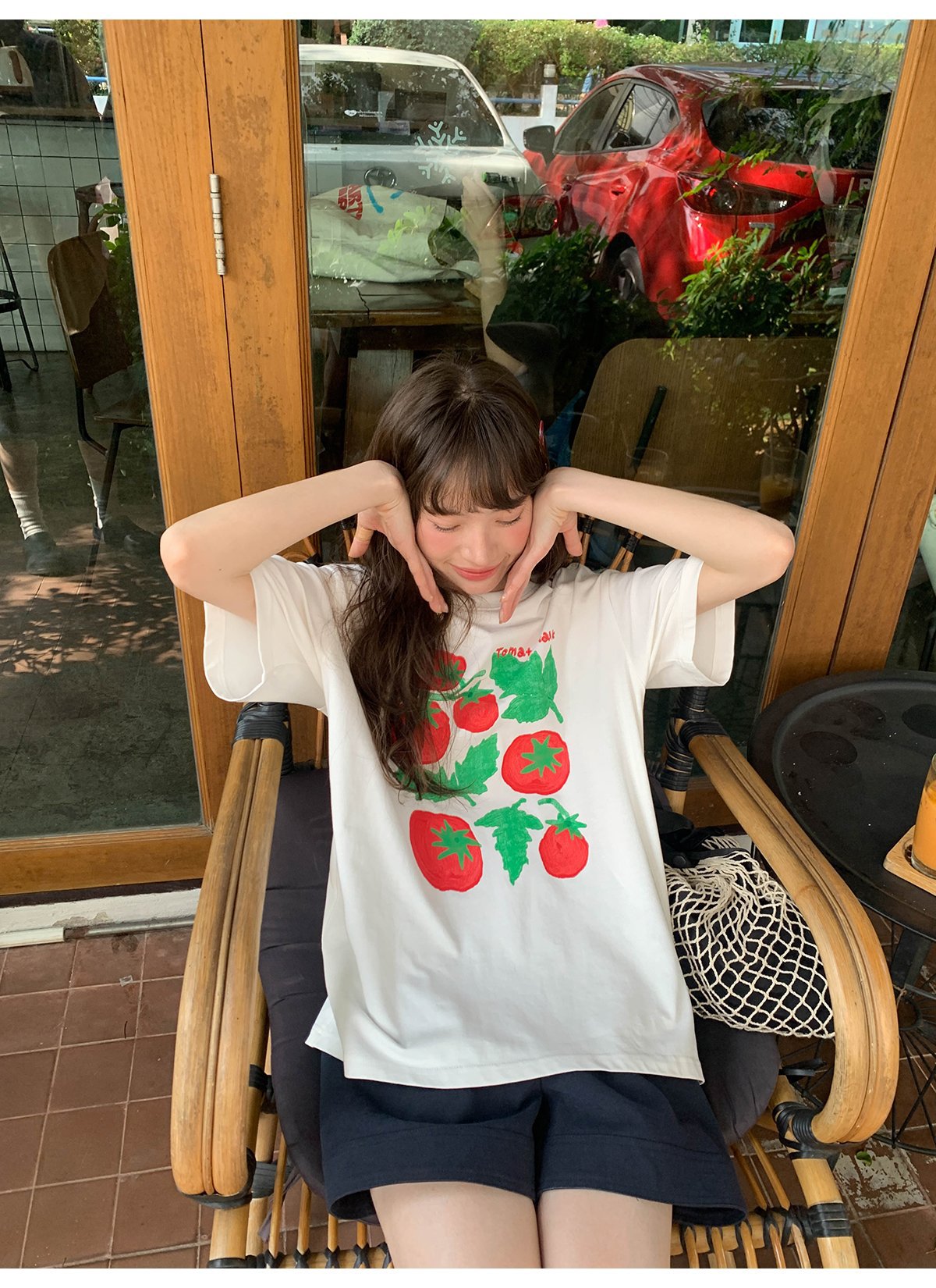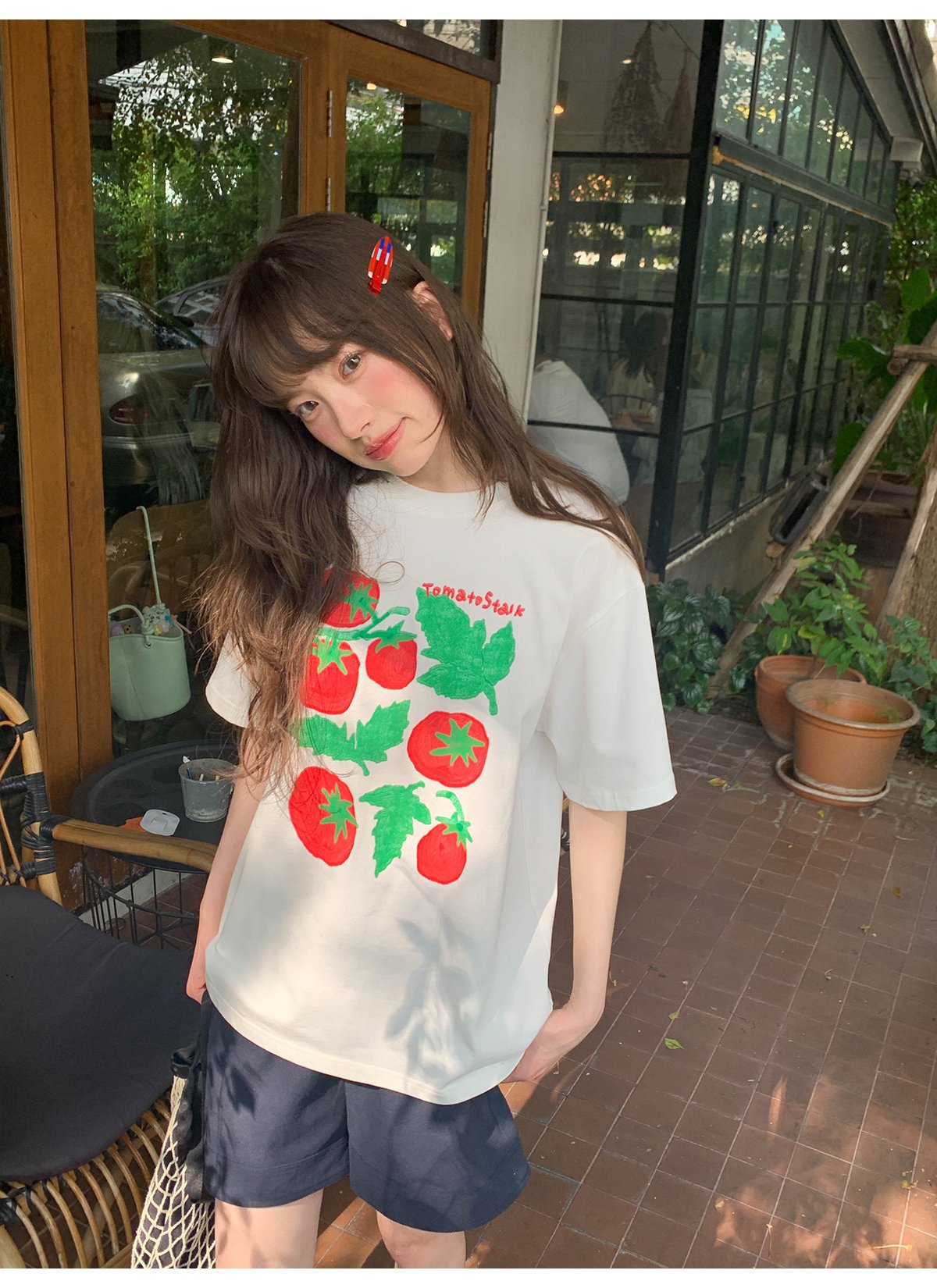 原创番茄印花休闲短袖t恤女夏新款独特宽松圆领纯棉上衣