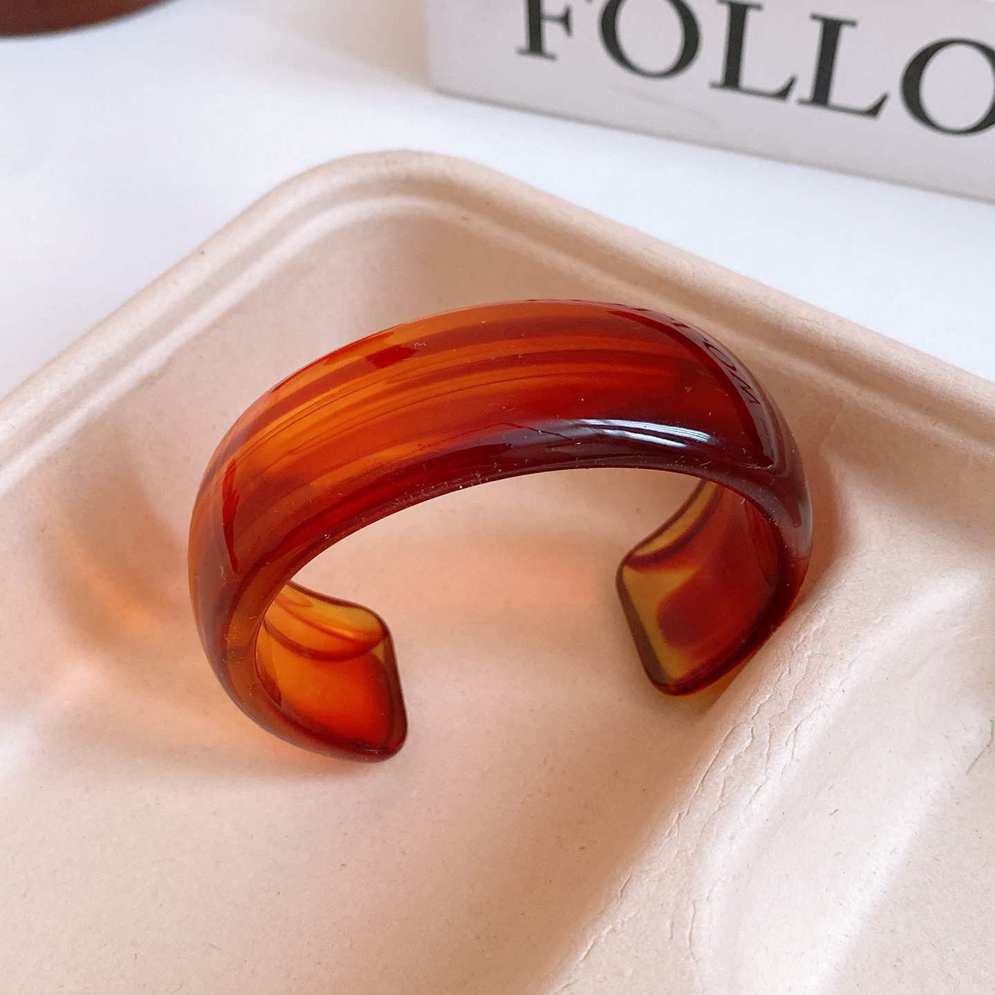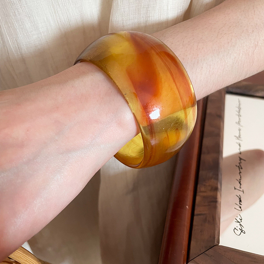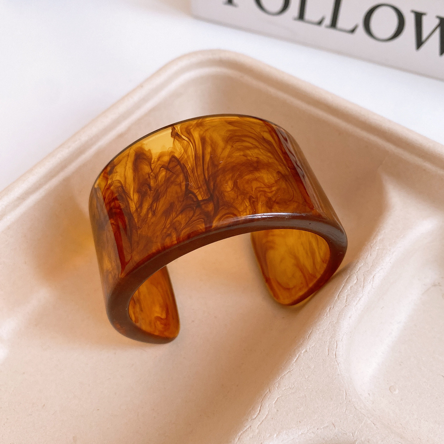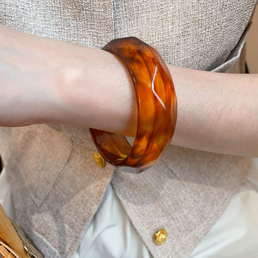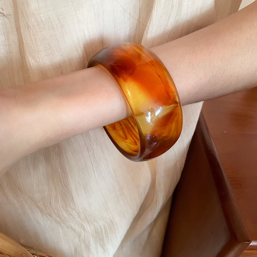 欧美跨境琥珀色晕染咖色树脂手镯简约时尚手环夸张个性高级感手饰