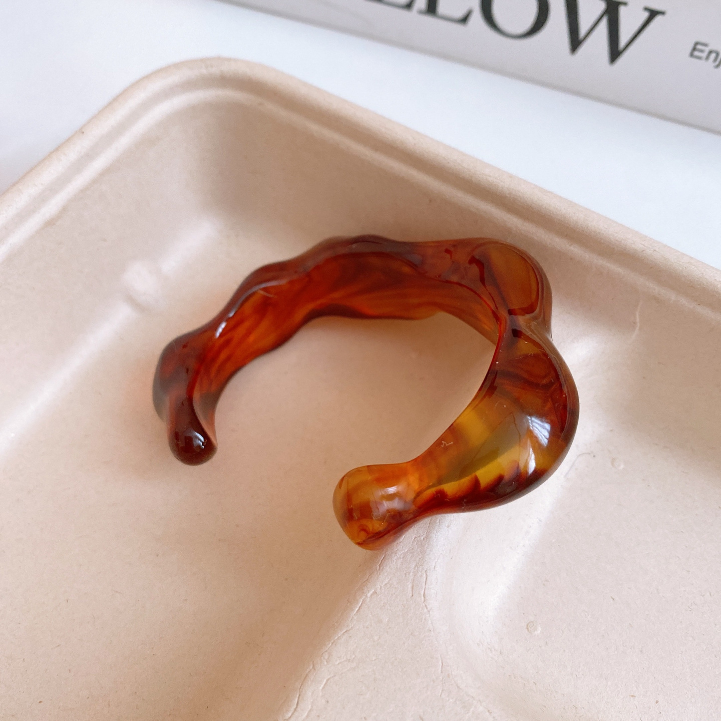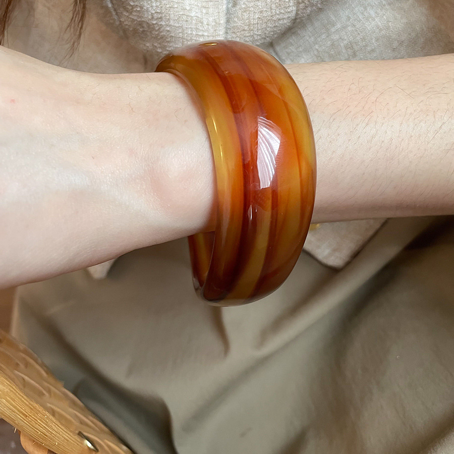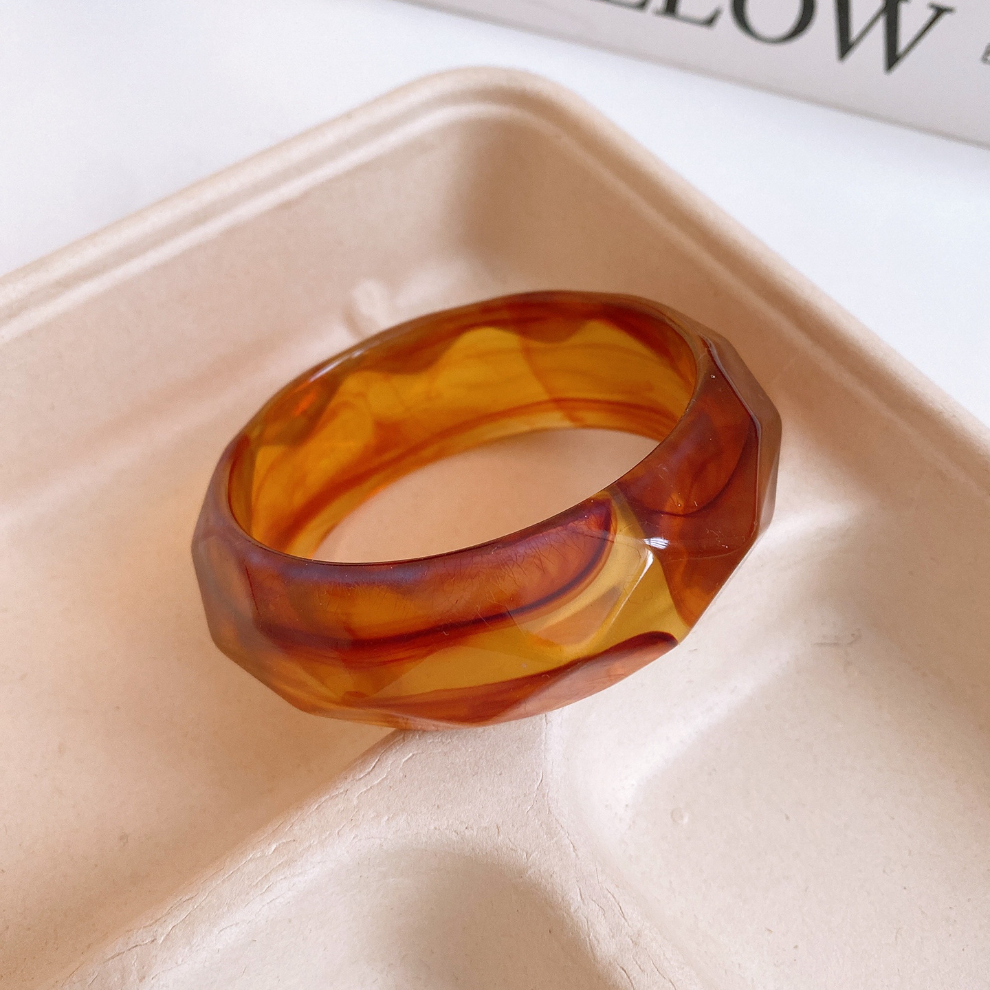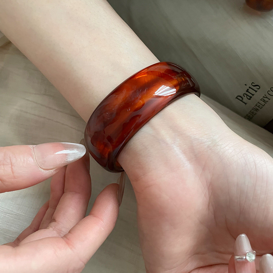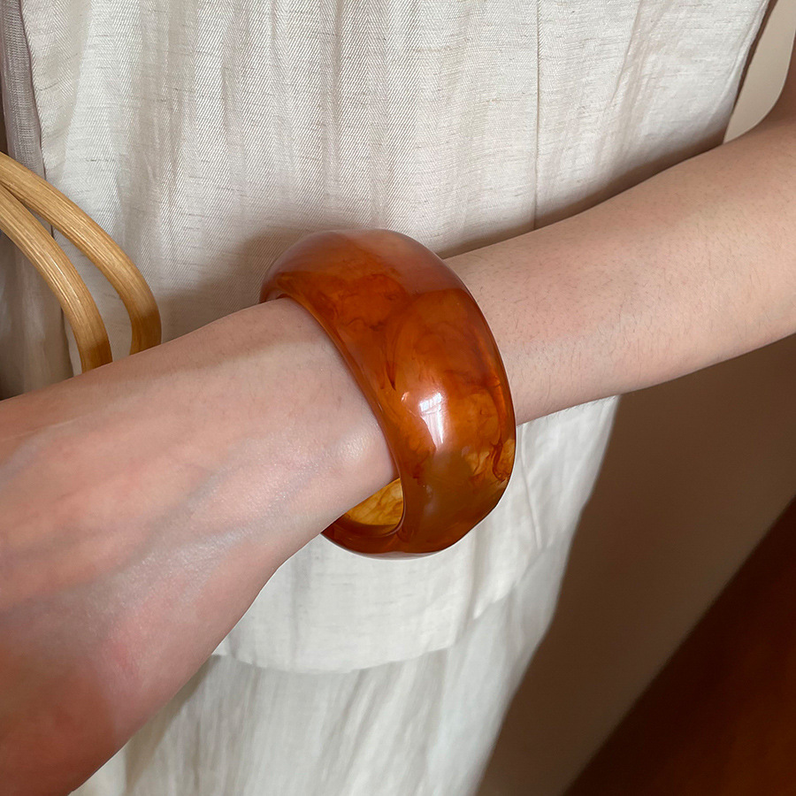 欧美跨境琥珀色晕染咖色树脂手镯简约时尚手环夸张个性高级感手饰