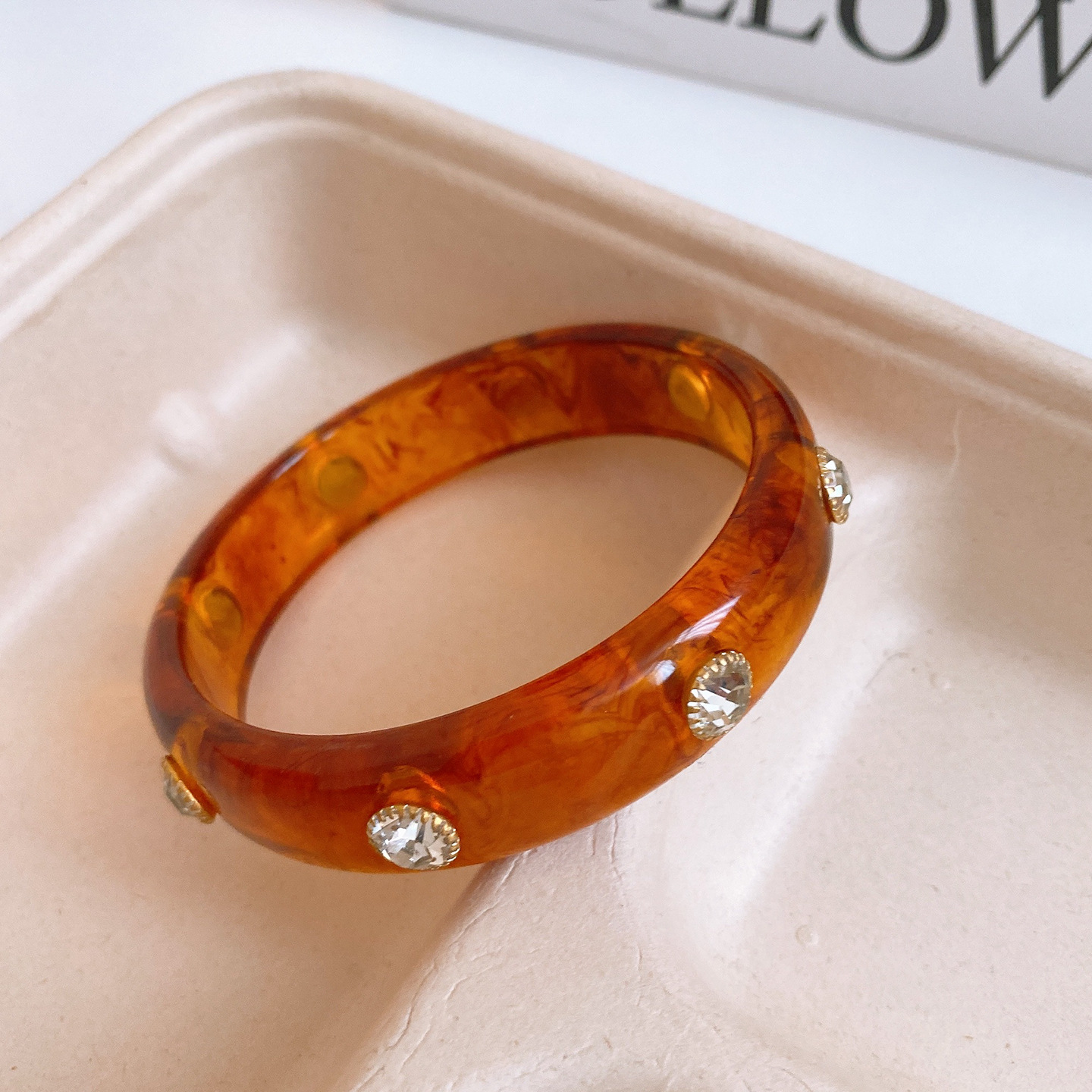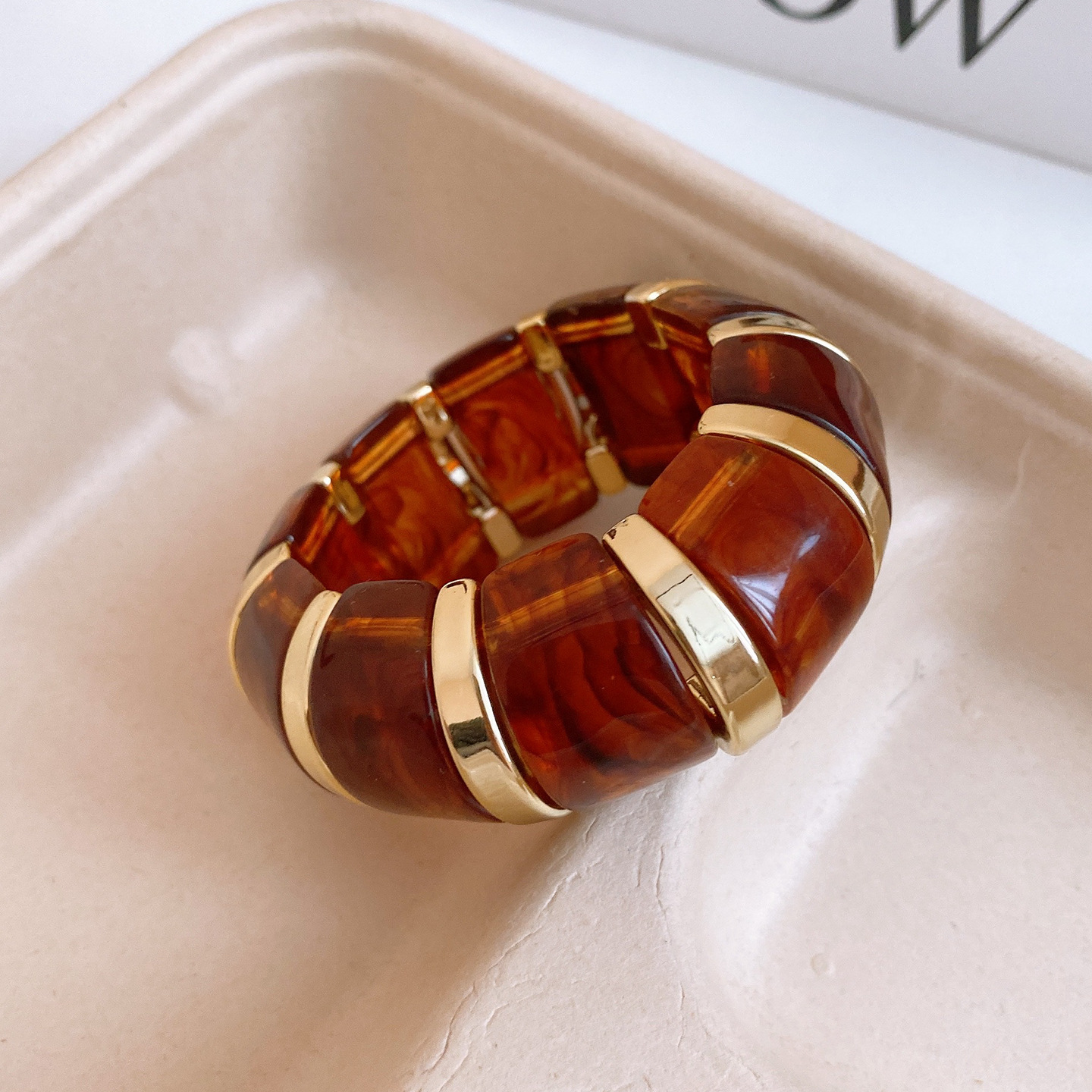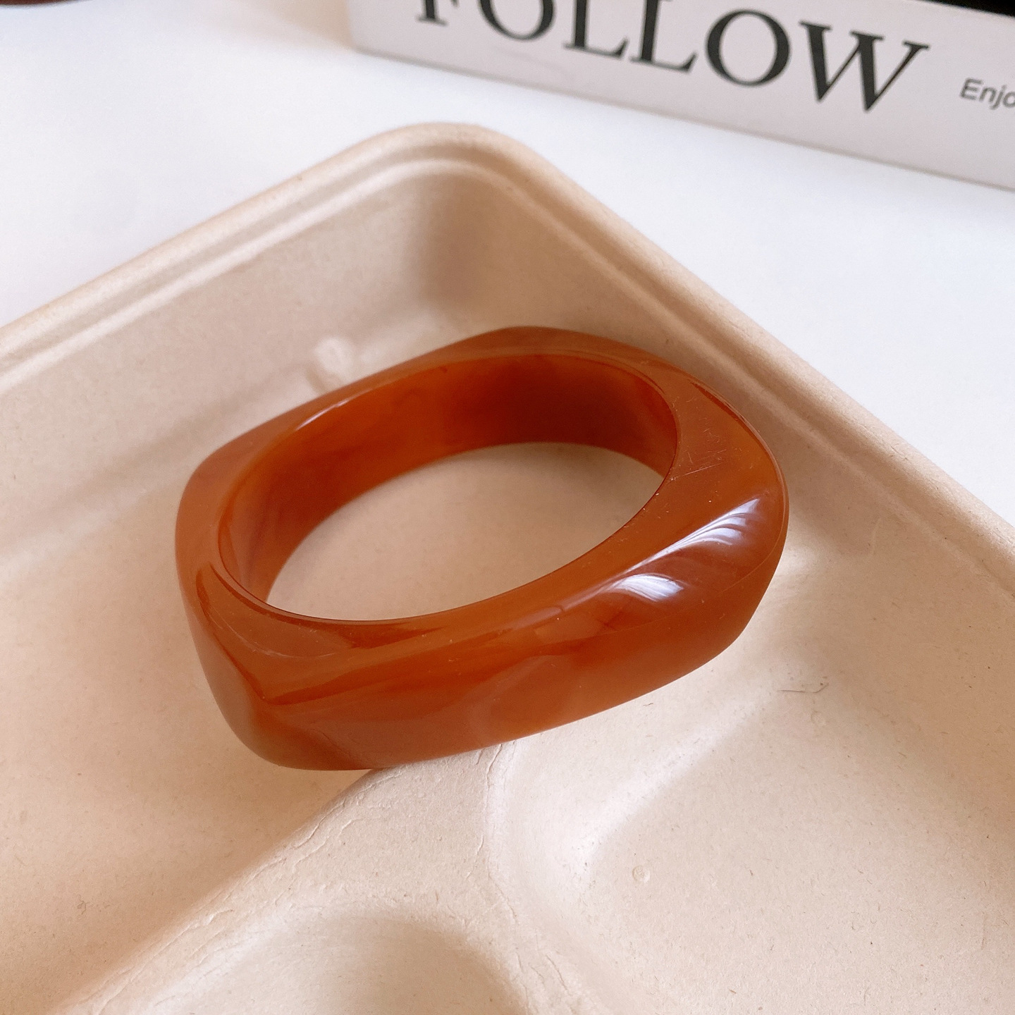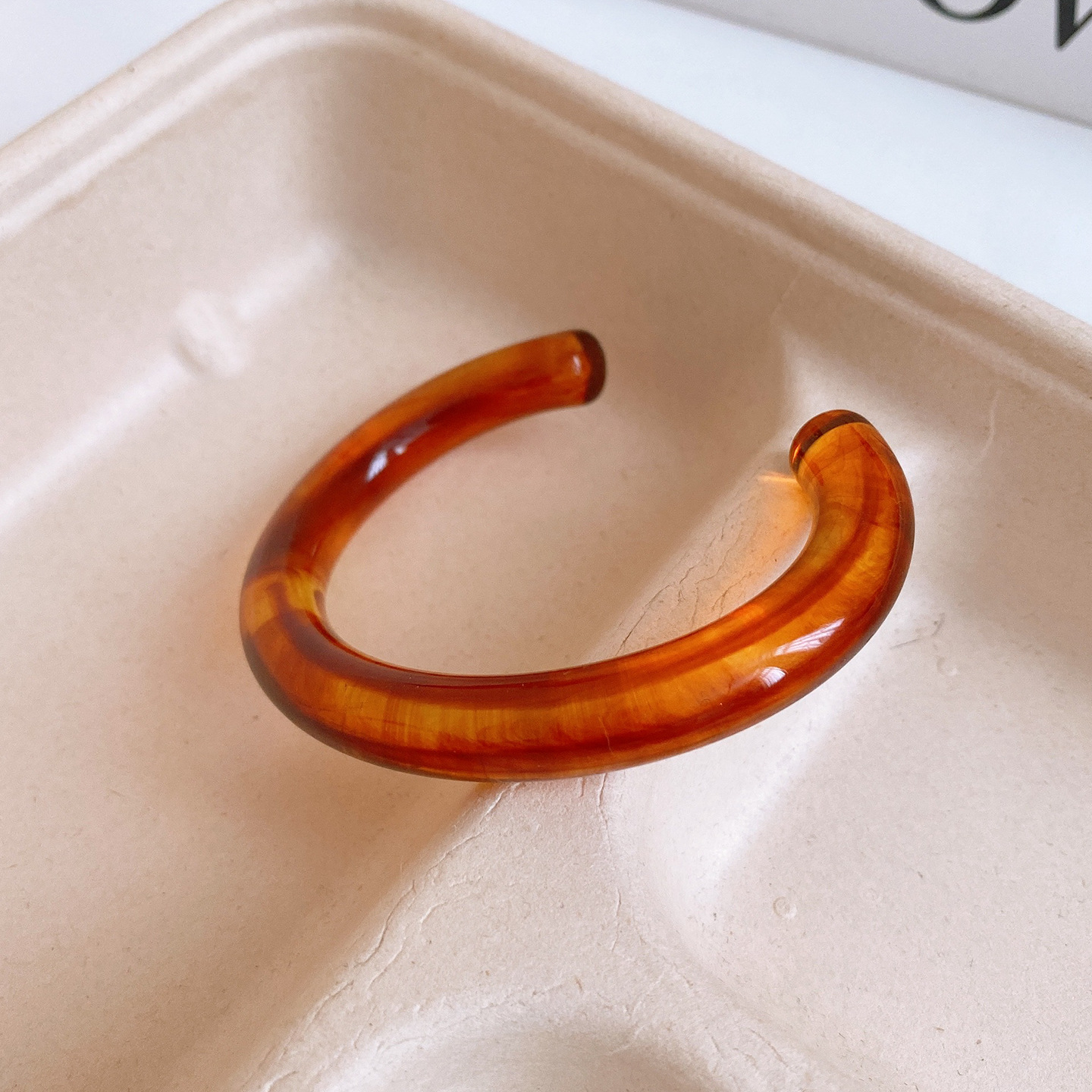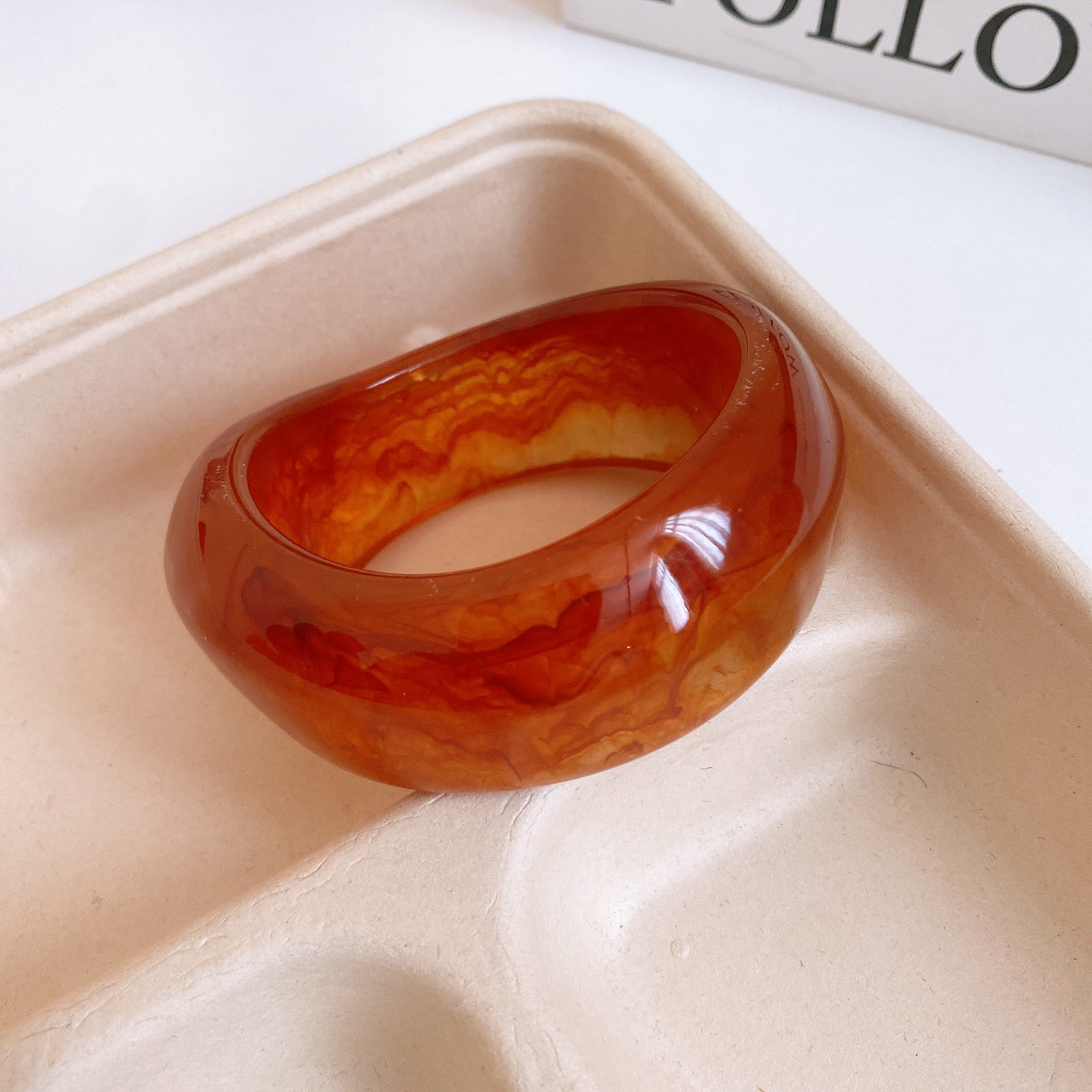 欧美跨境琥珀色晕染咖色树脂手镯简约时尚手环夸张个性高级感手饰