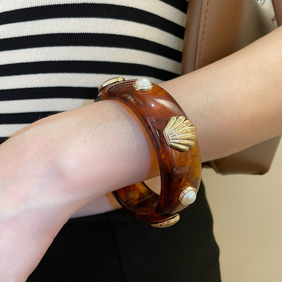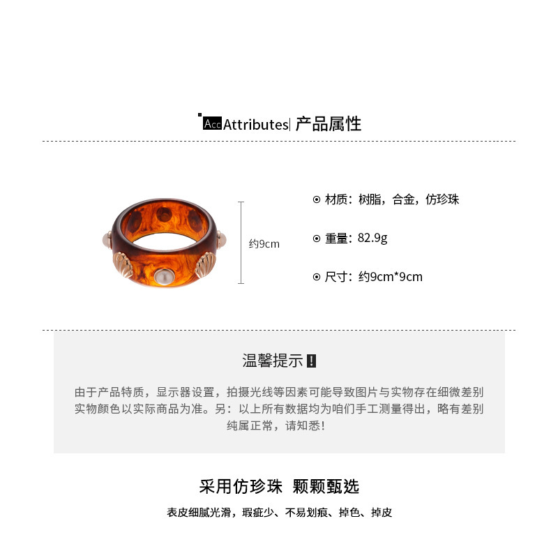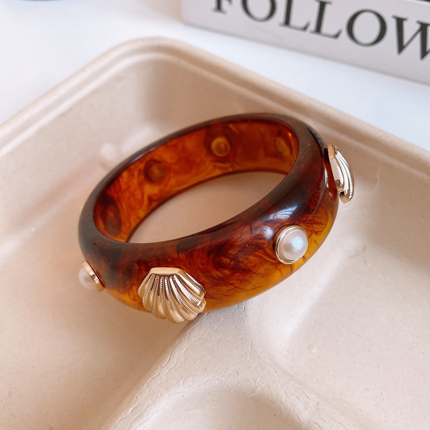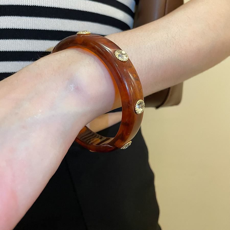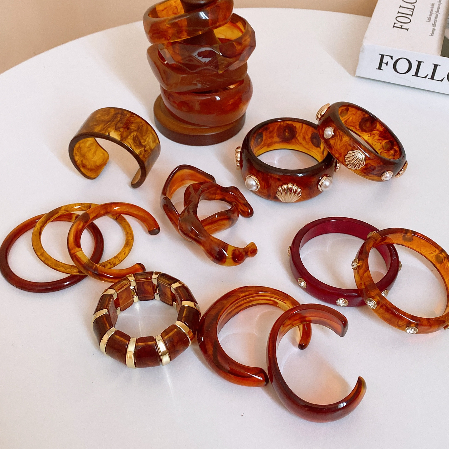 欧美跨境琥珀色晕染咖色树脂手镯简约时尚手环夸张个性高级感手饰