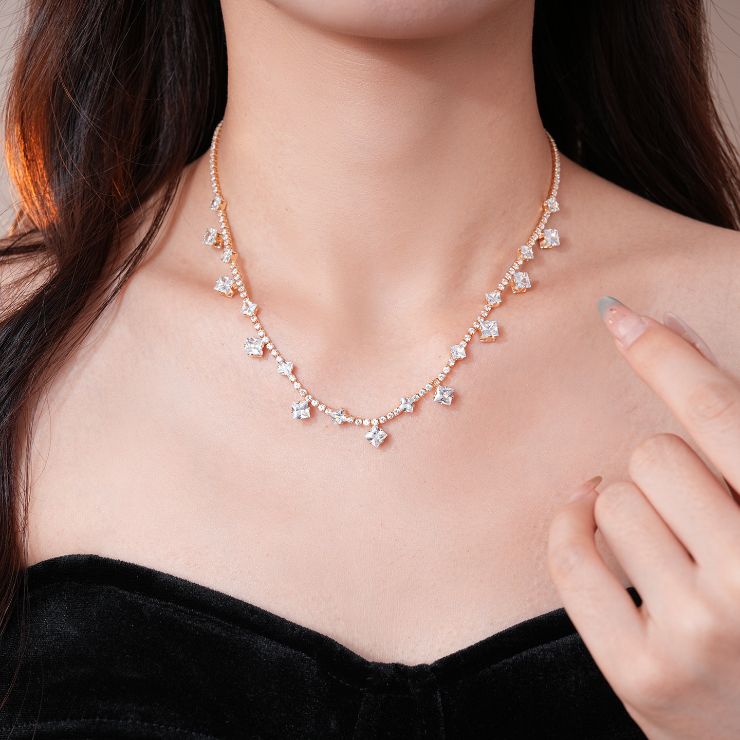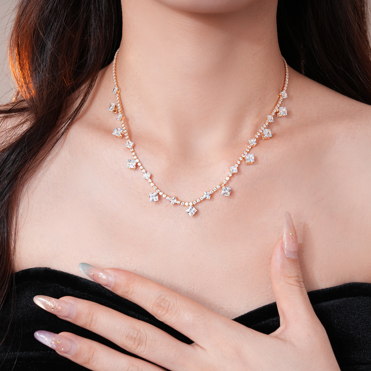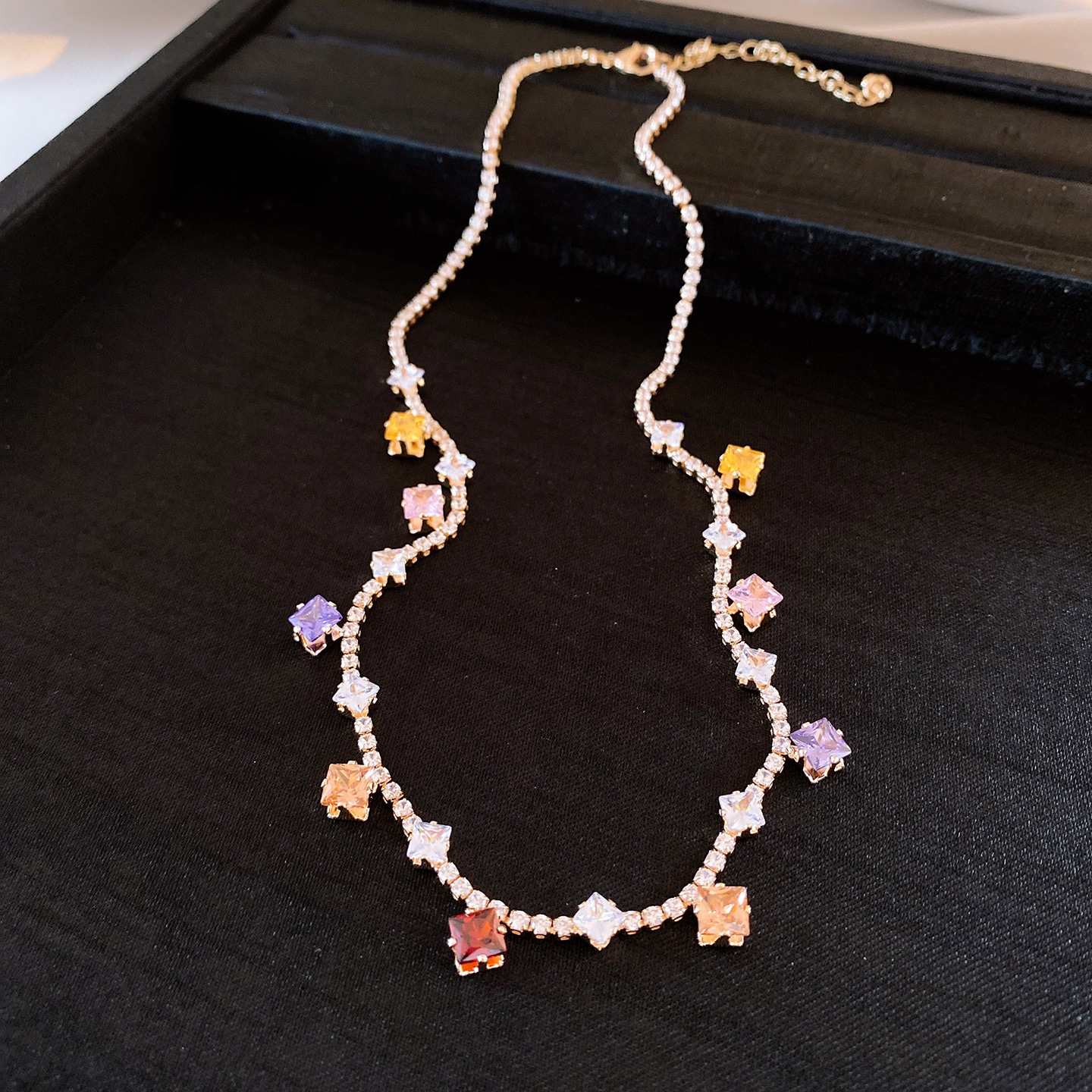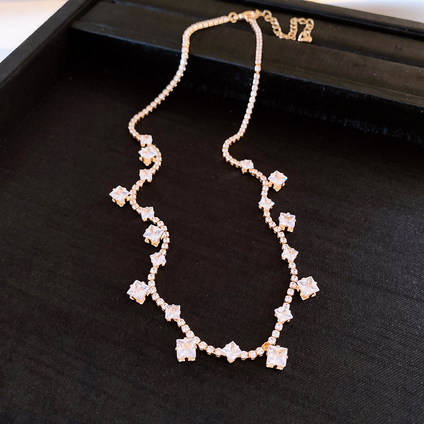 超闪锆石方形芒星吊坠项链轻奢高级感锁骨链欧美跨境气质百搭项饰