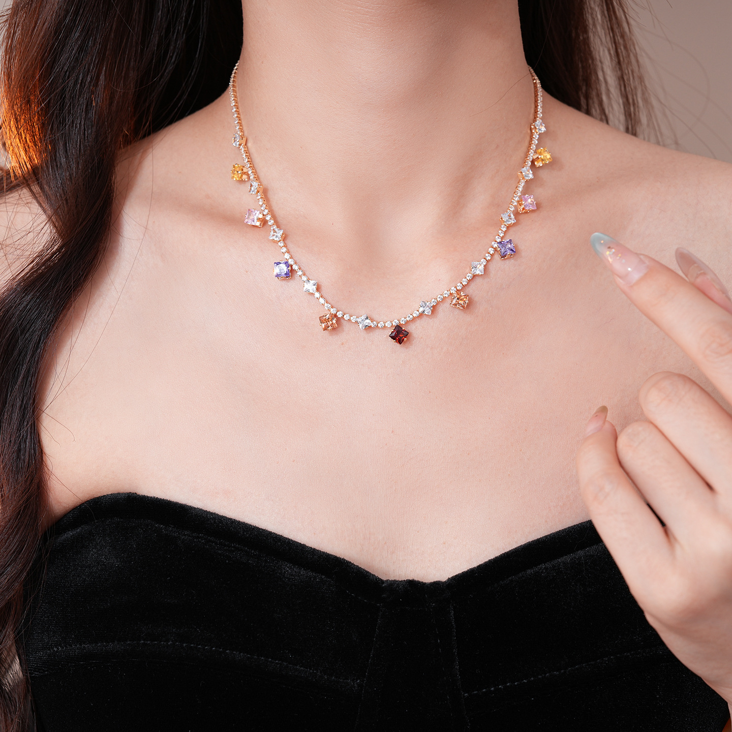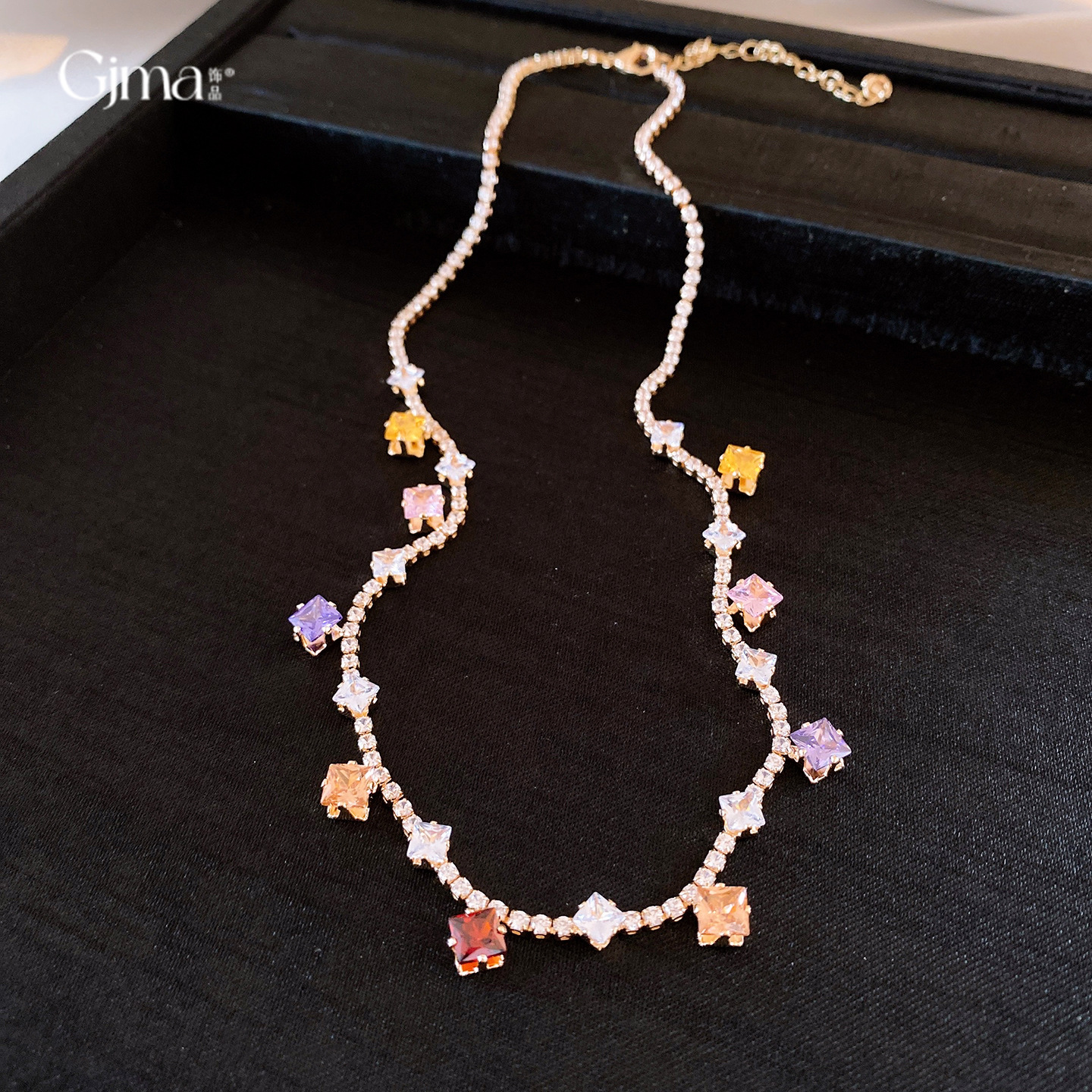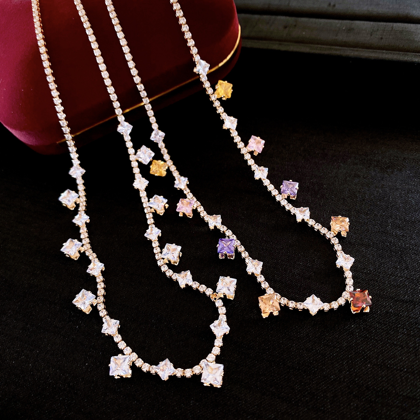 超闪锆石方形芒星吊坠项链轻奢高级感锁骨链欧美跨境气质百搭项饰
