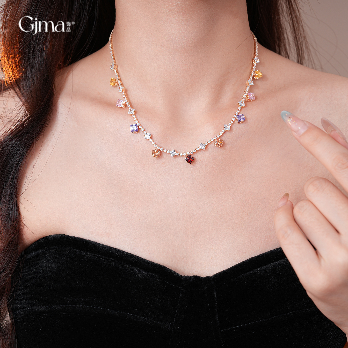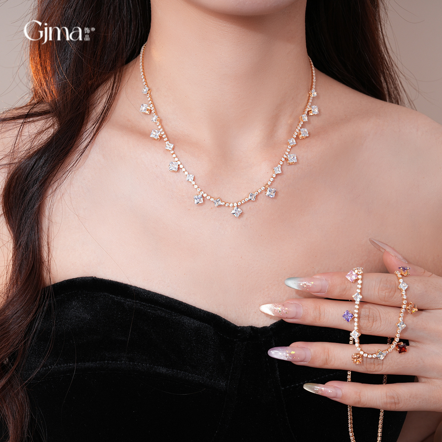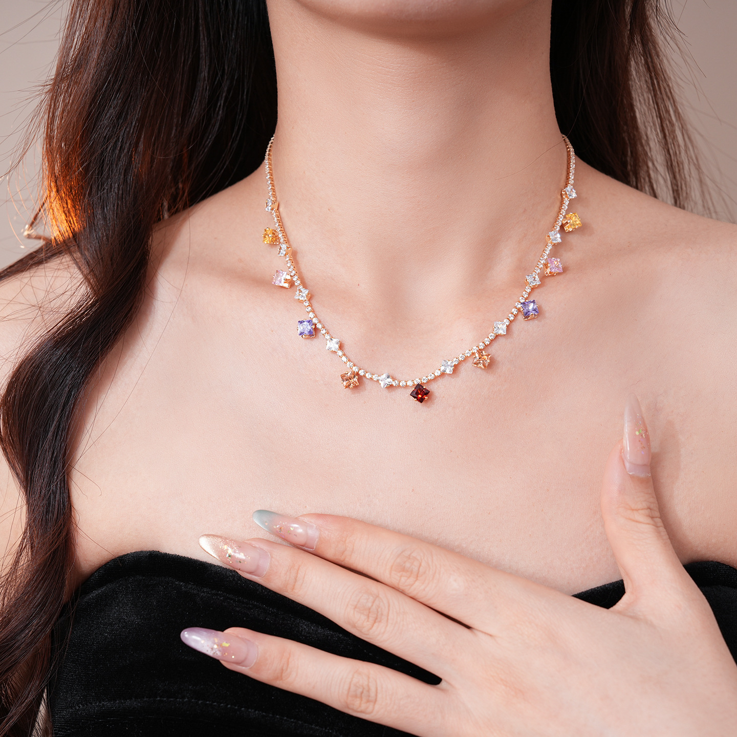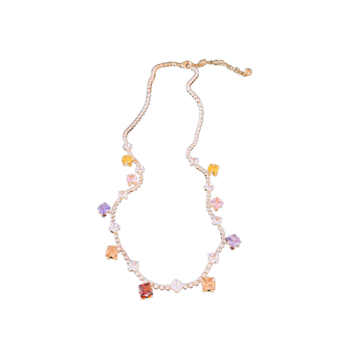 超闪锆石方形芒星吊坠项链轻奢高级感锁骨链欧美跨境气质百搭项饰
