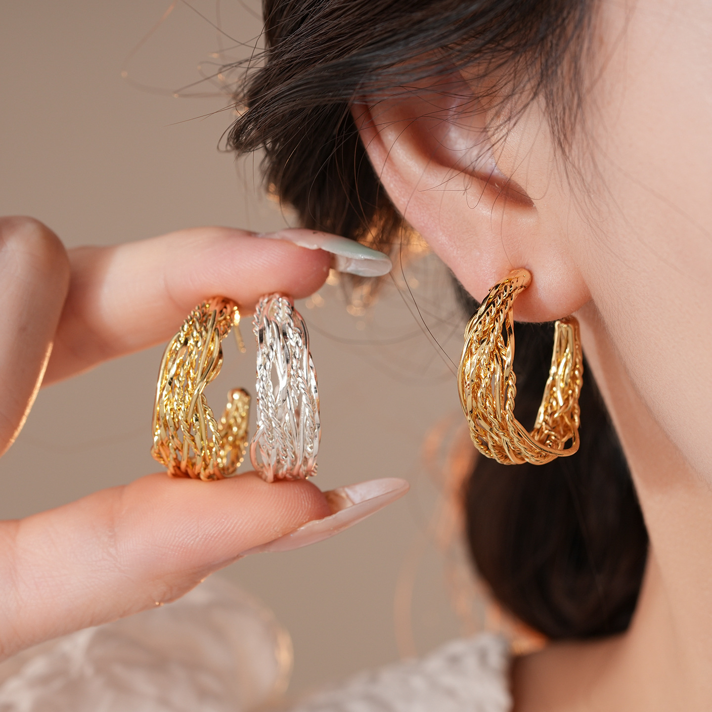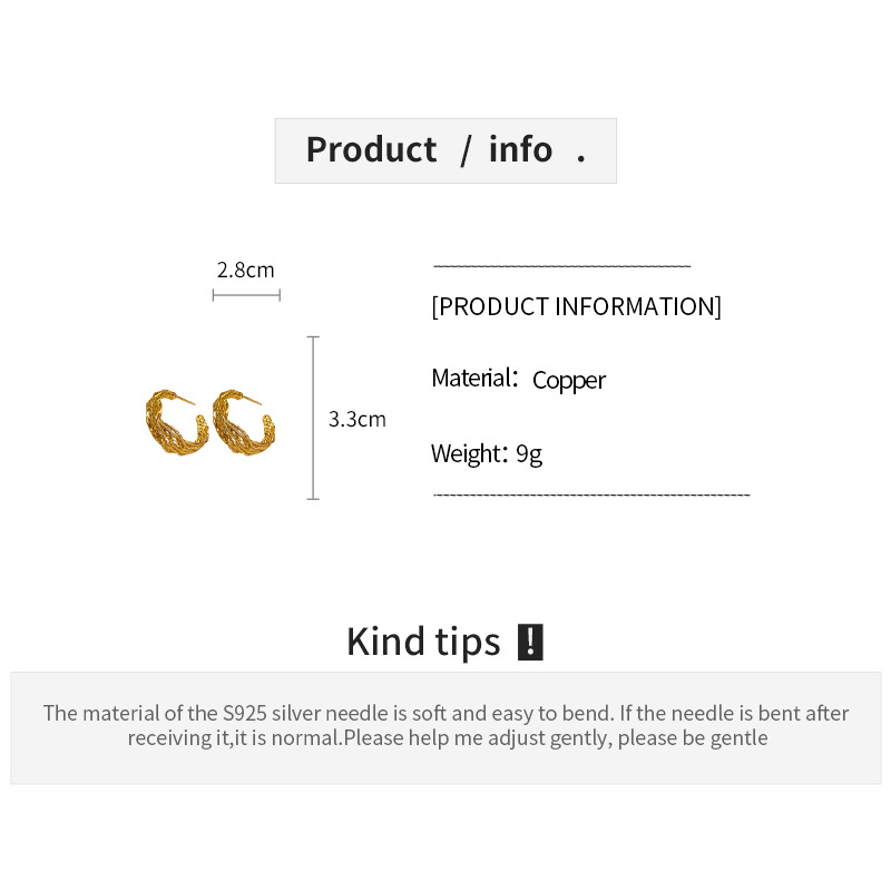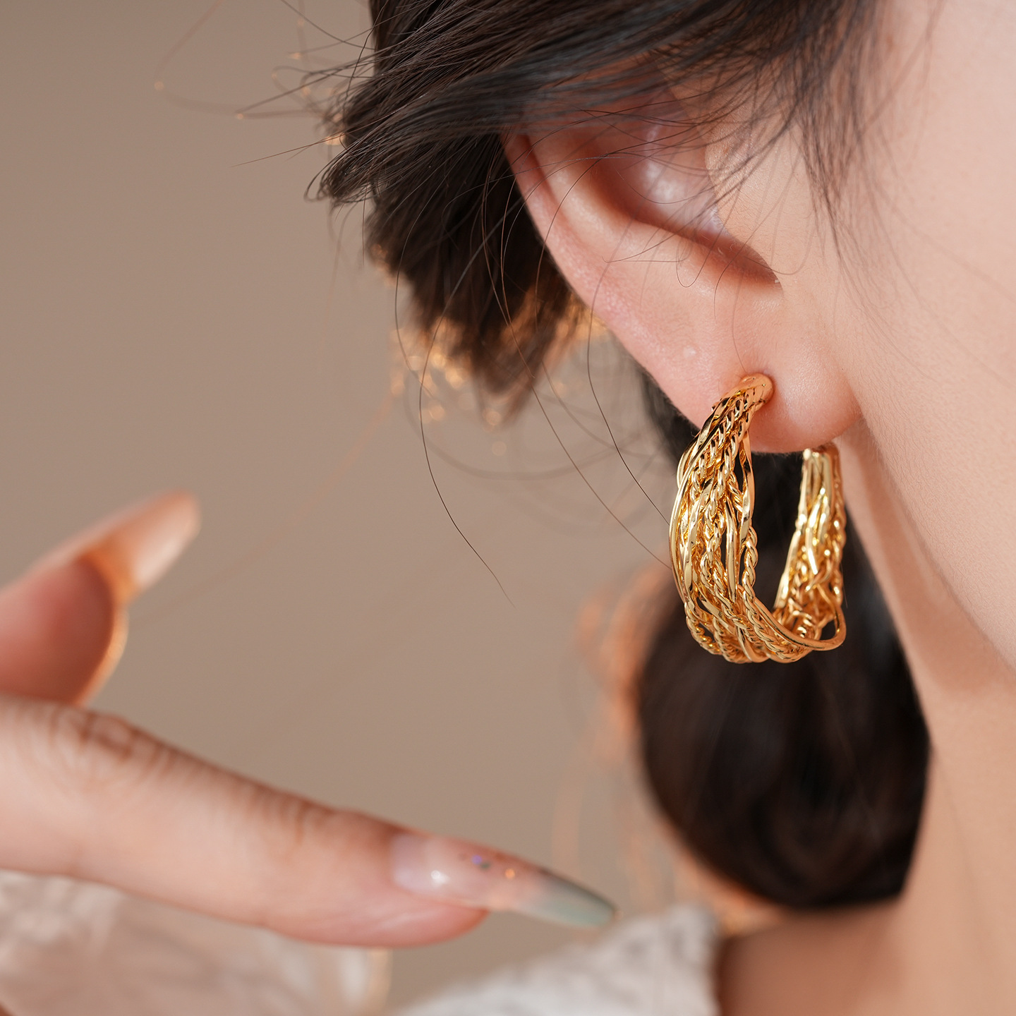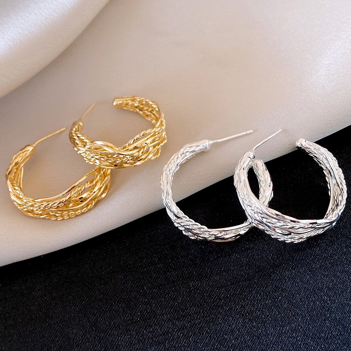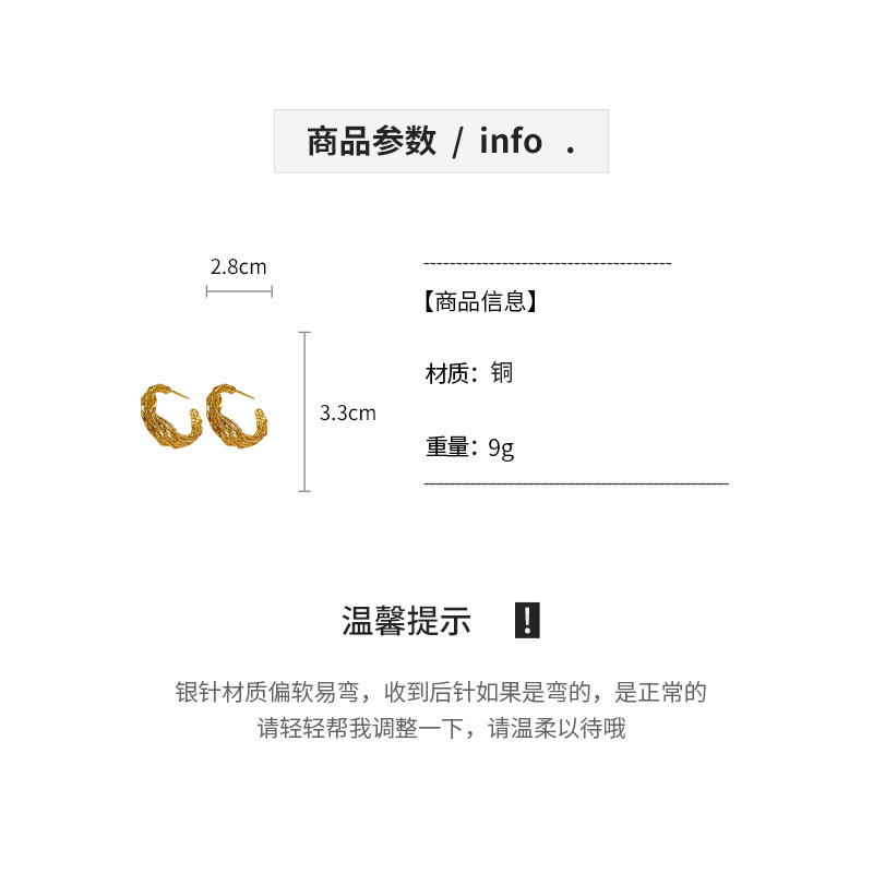 18K真金电镀银针麻花扭曲C形耳钉轻奢高级感耳环简约气质时尚耳饰