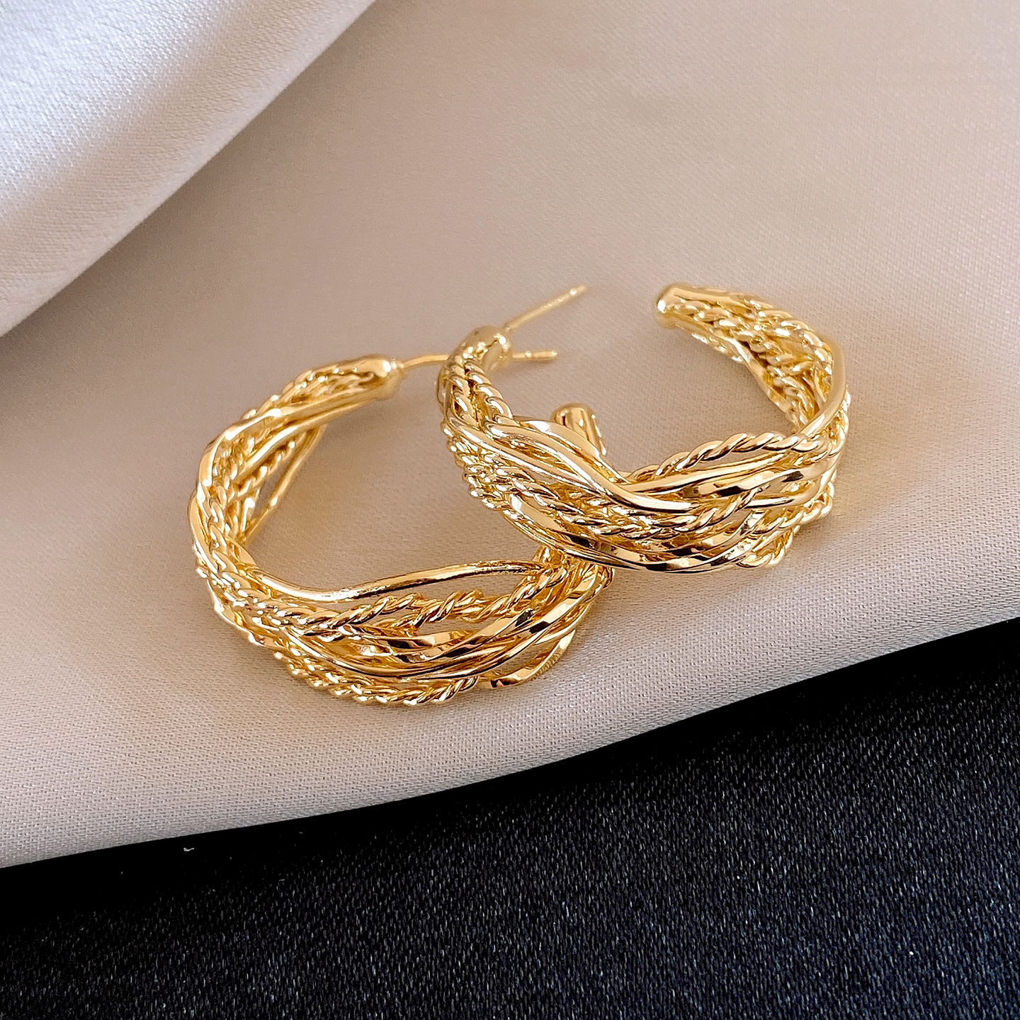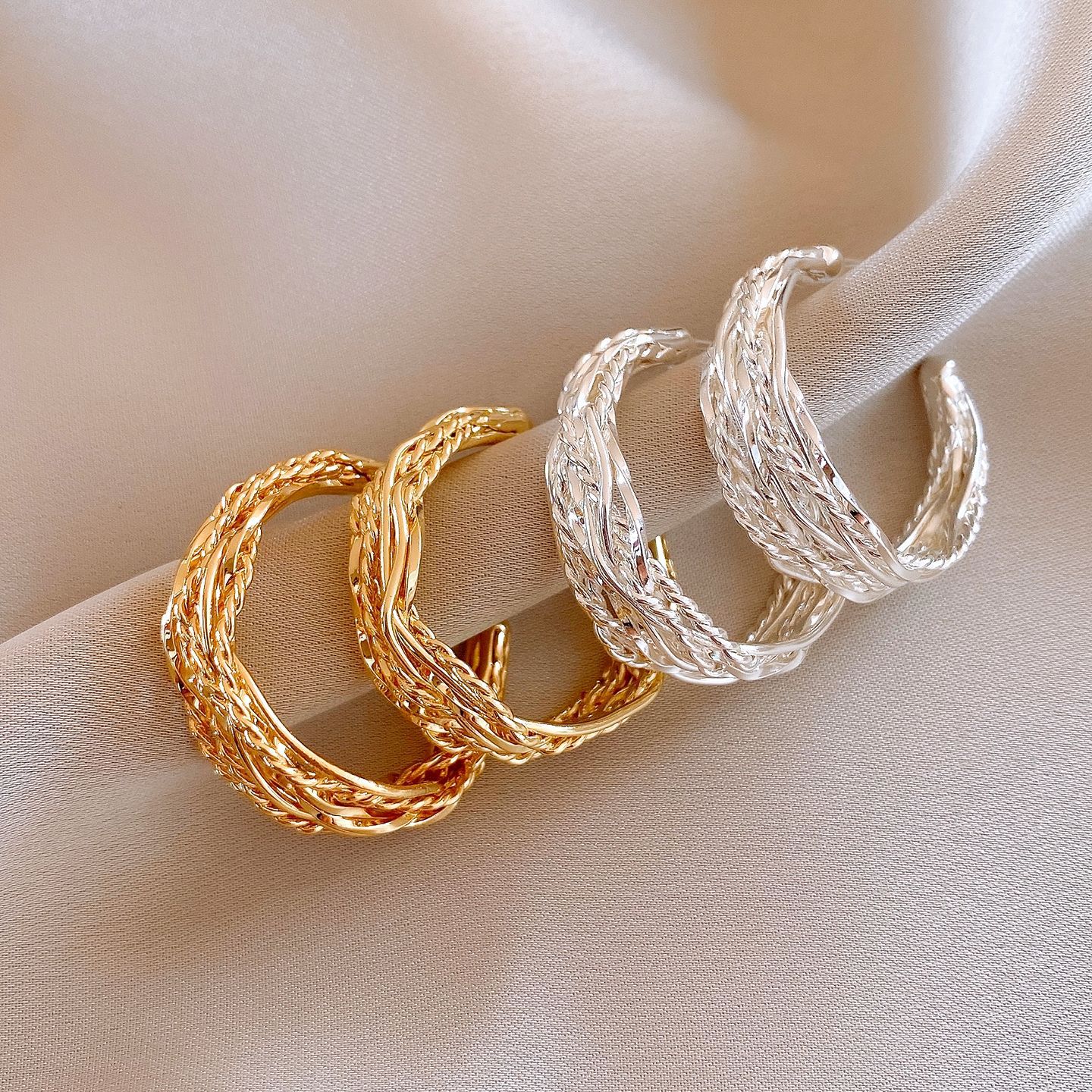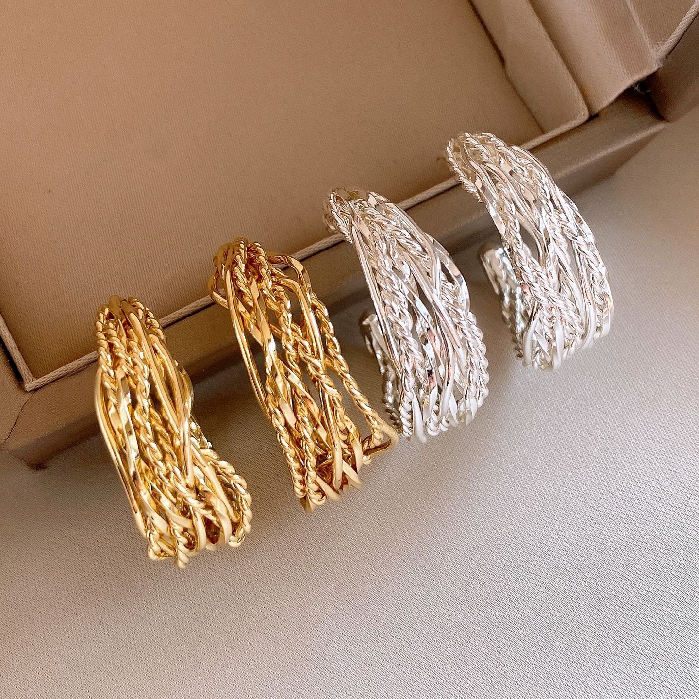 18K真金电镀银针麻花扭曲C形耳钉轻奢高级感耳环简约气质时尚耳饰