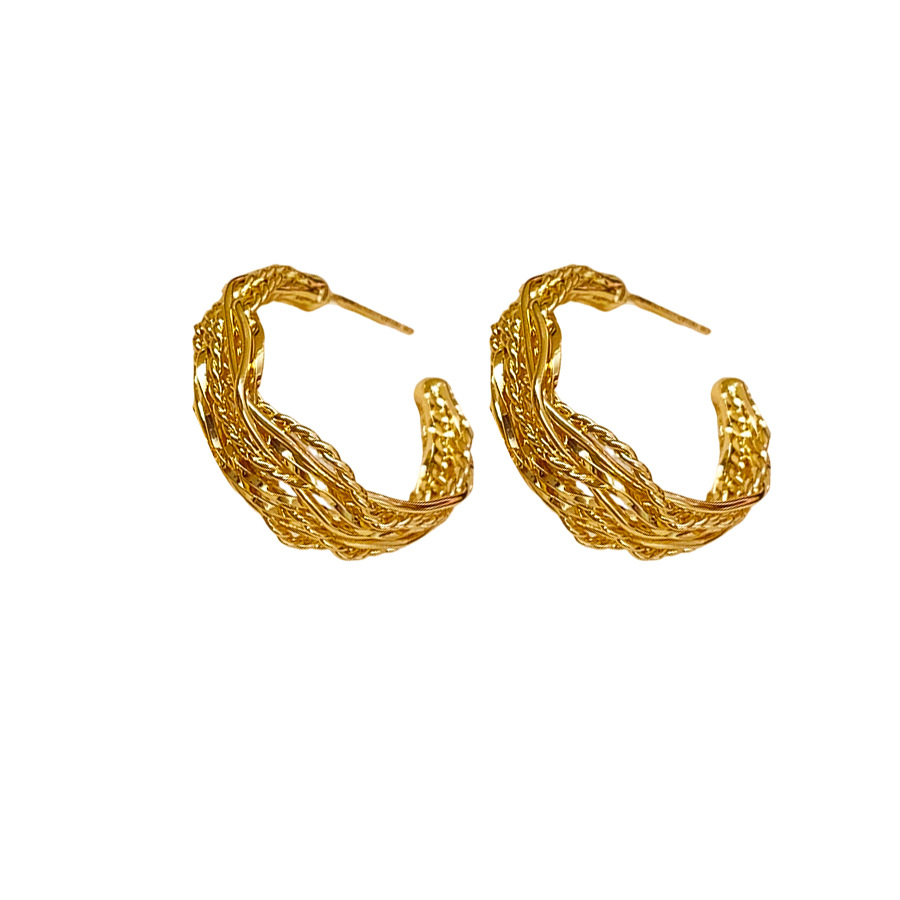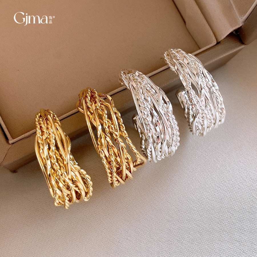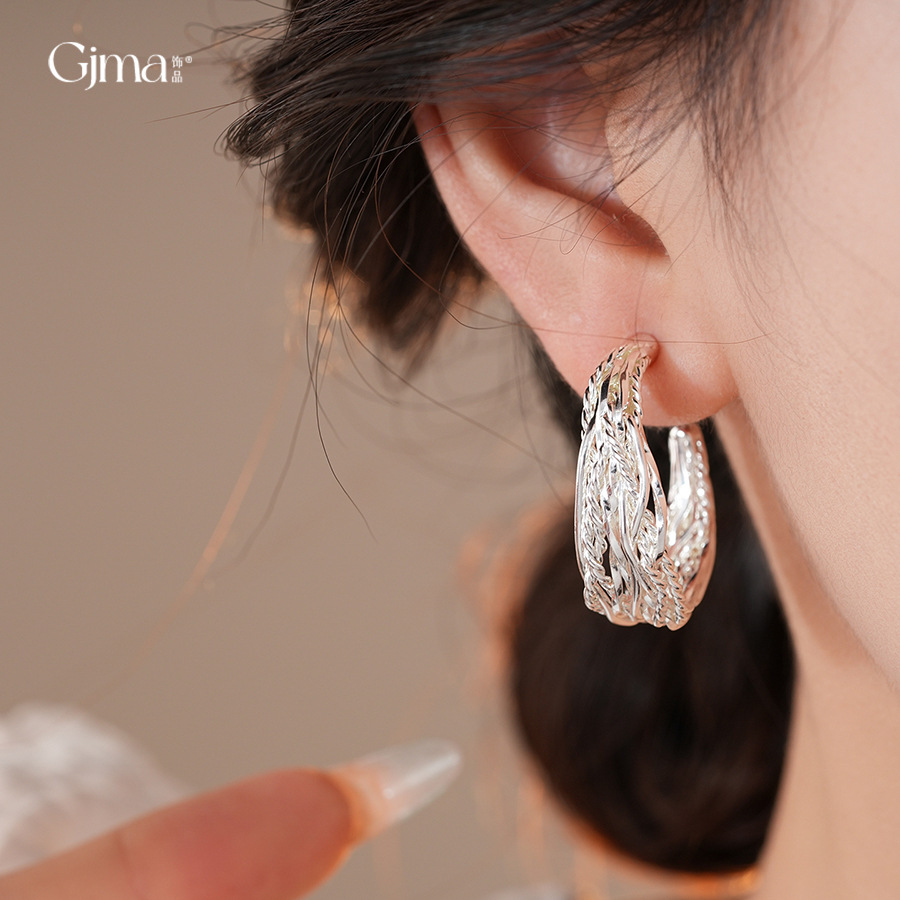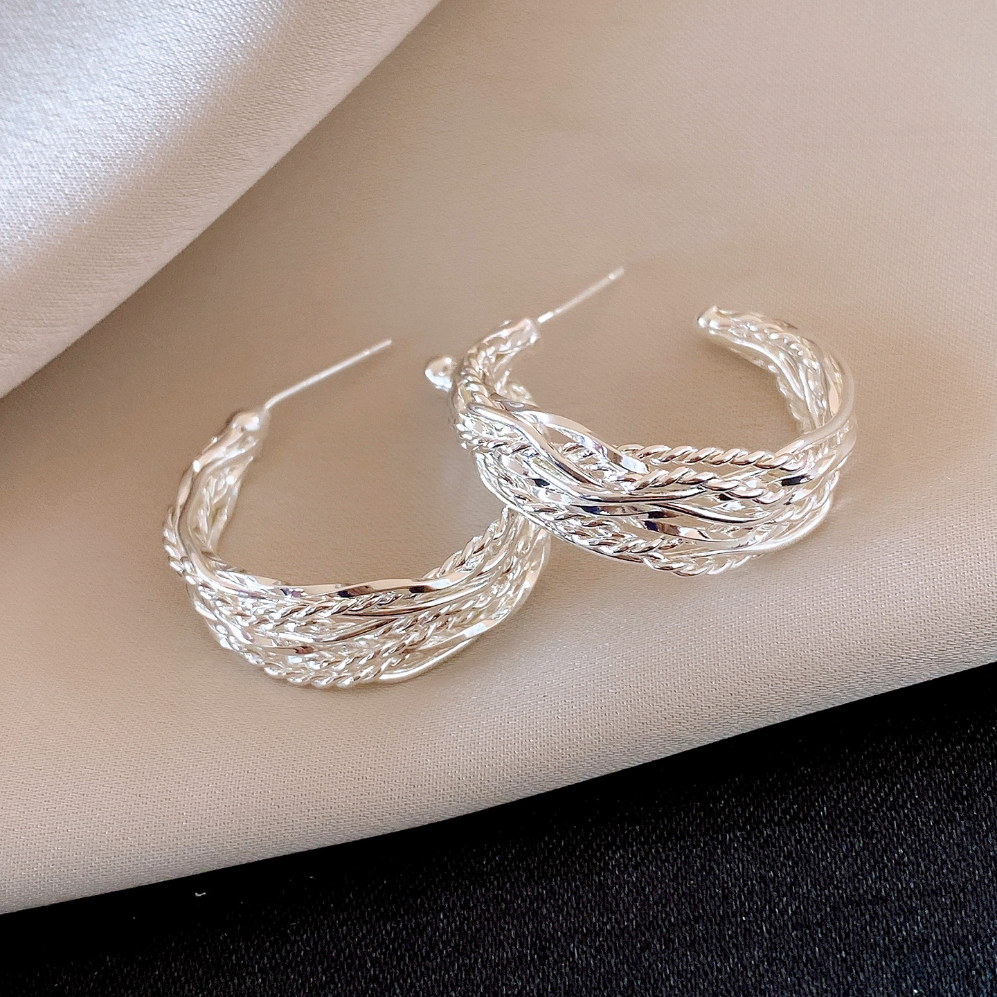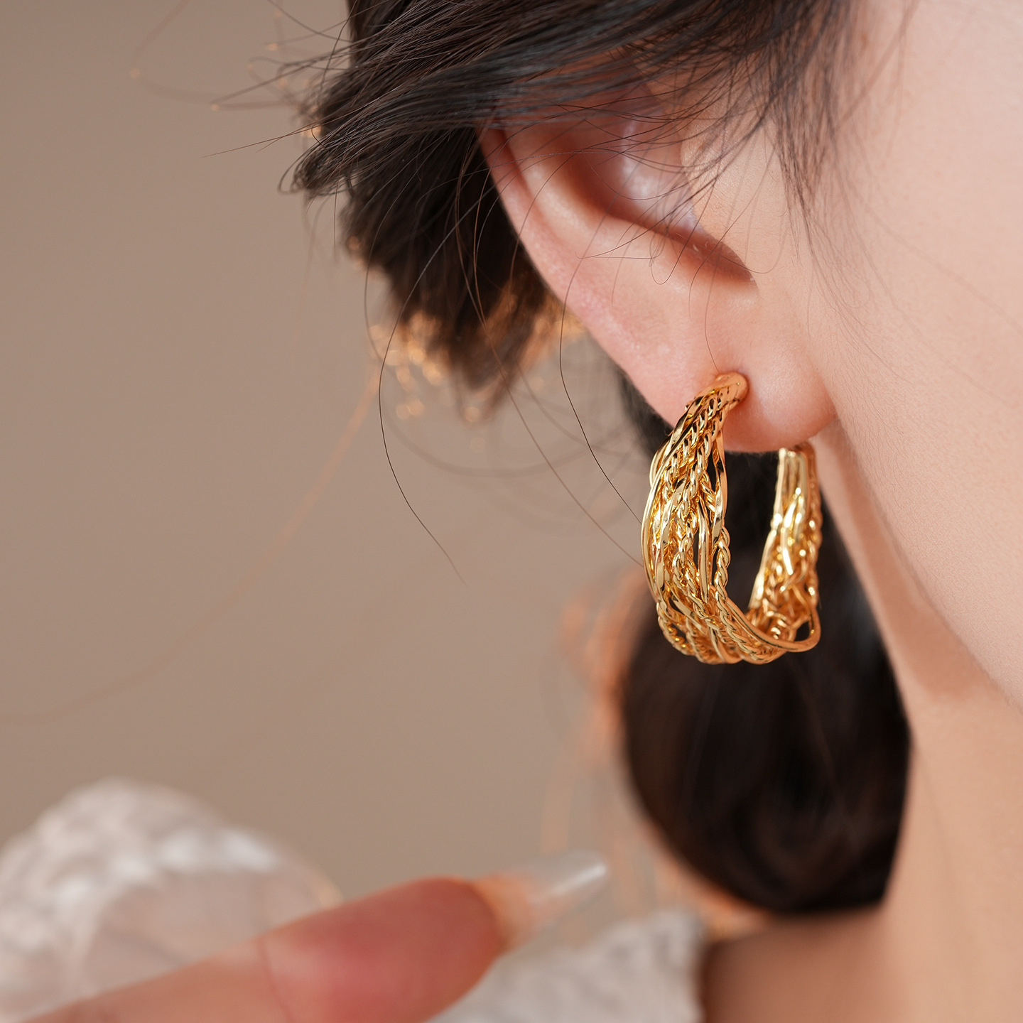 18K真金电镀银针麻花扭曲C形耳钉轻奢高级感耳环简约气质时尚耳饰