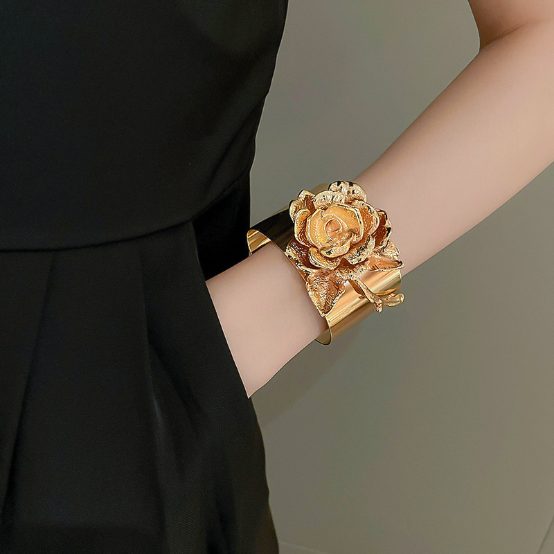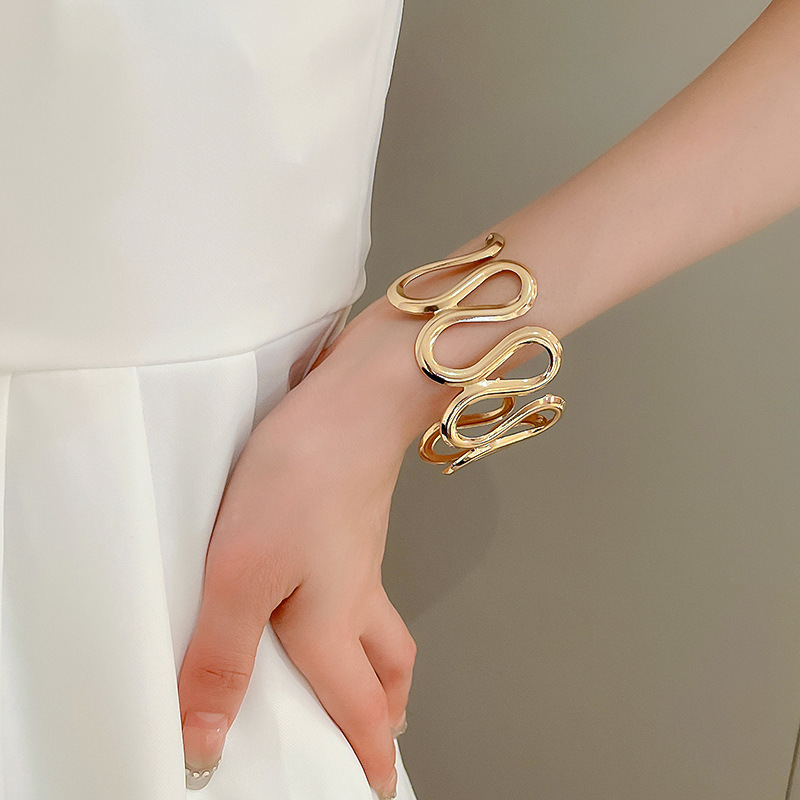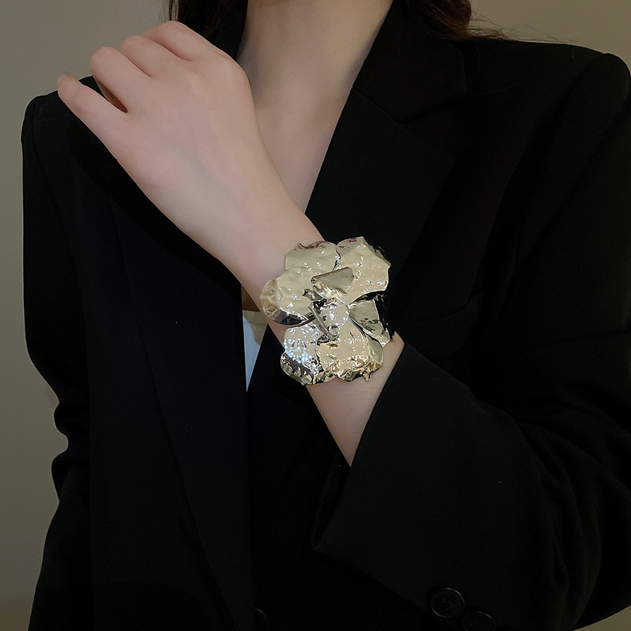 欧美跨境几何花朵方形光面手镯小众设计感手环轻奢高级感手饰批发