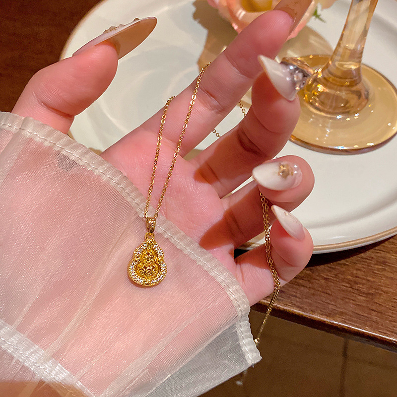新中式国潮葫芦吊坠钛钢项链女轻奢小众高级感精致镶钻锁骨链颈链