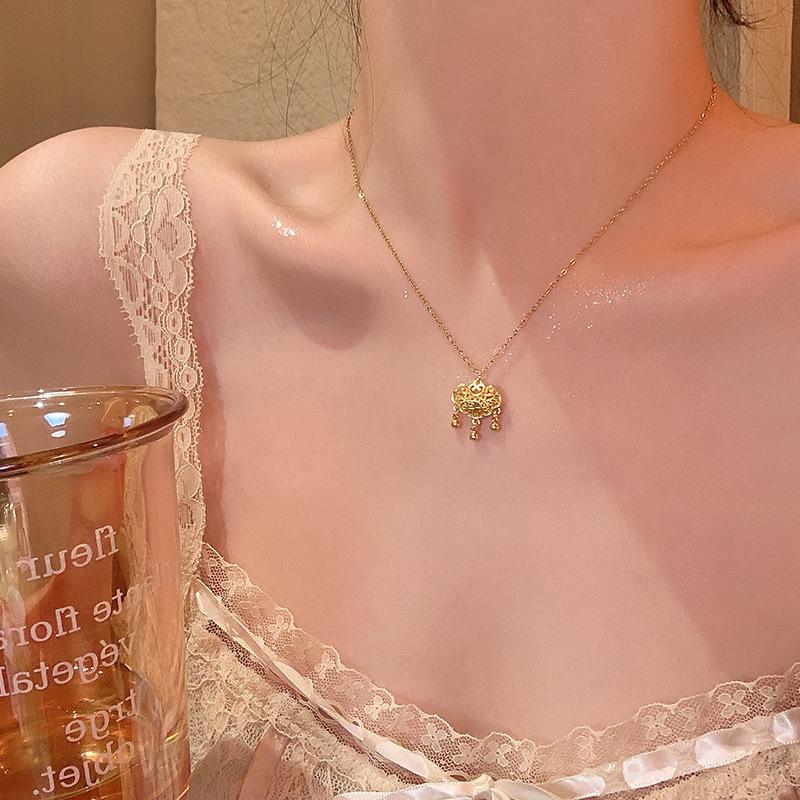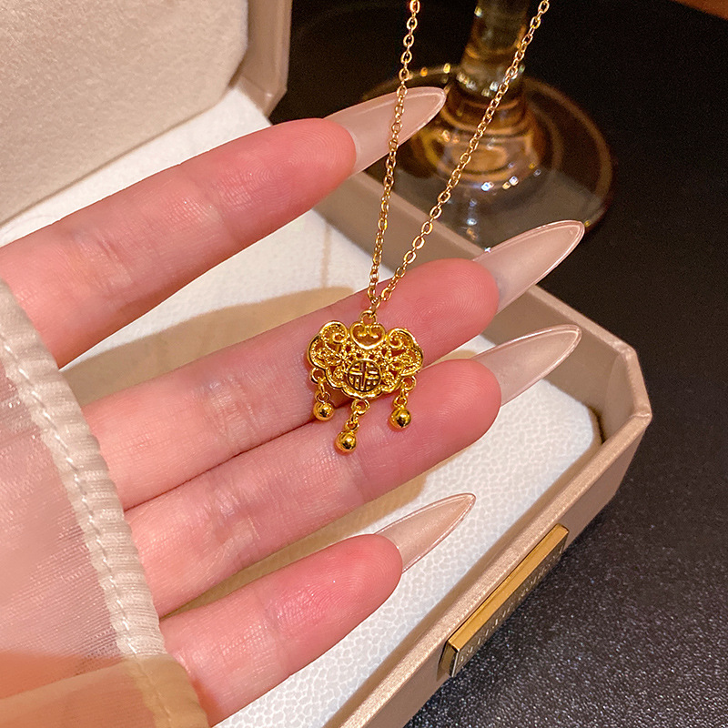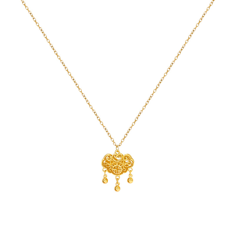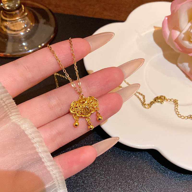 18K金电镀新中式复古平安锁吊坠项链女时尚气质高级感钛钢锁骨链