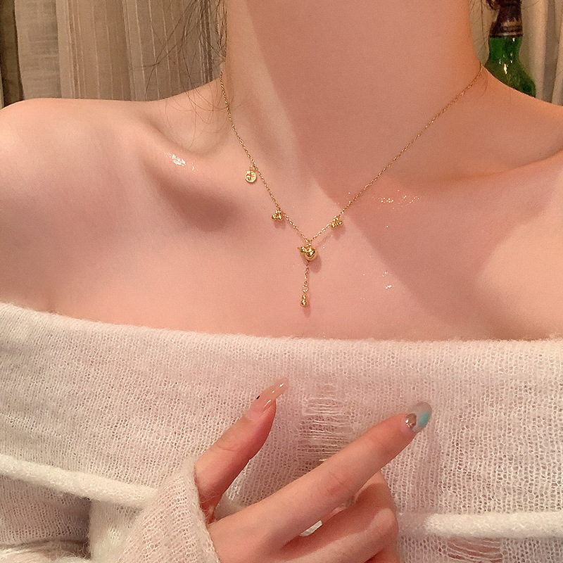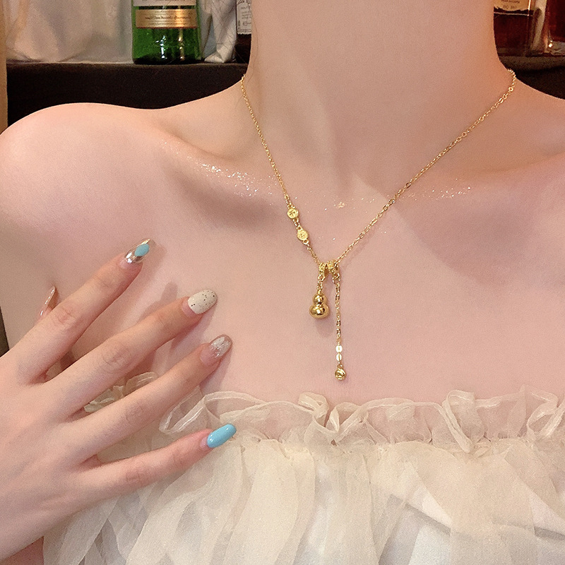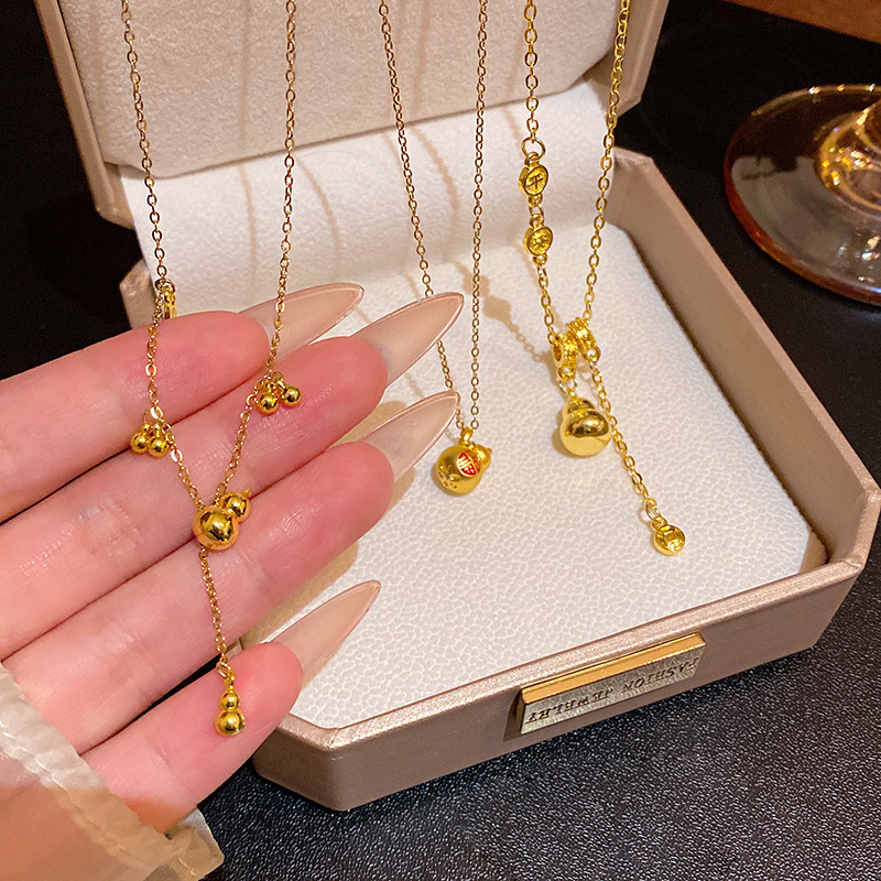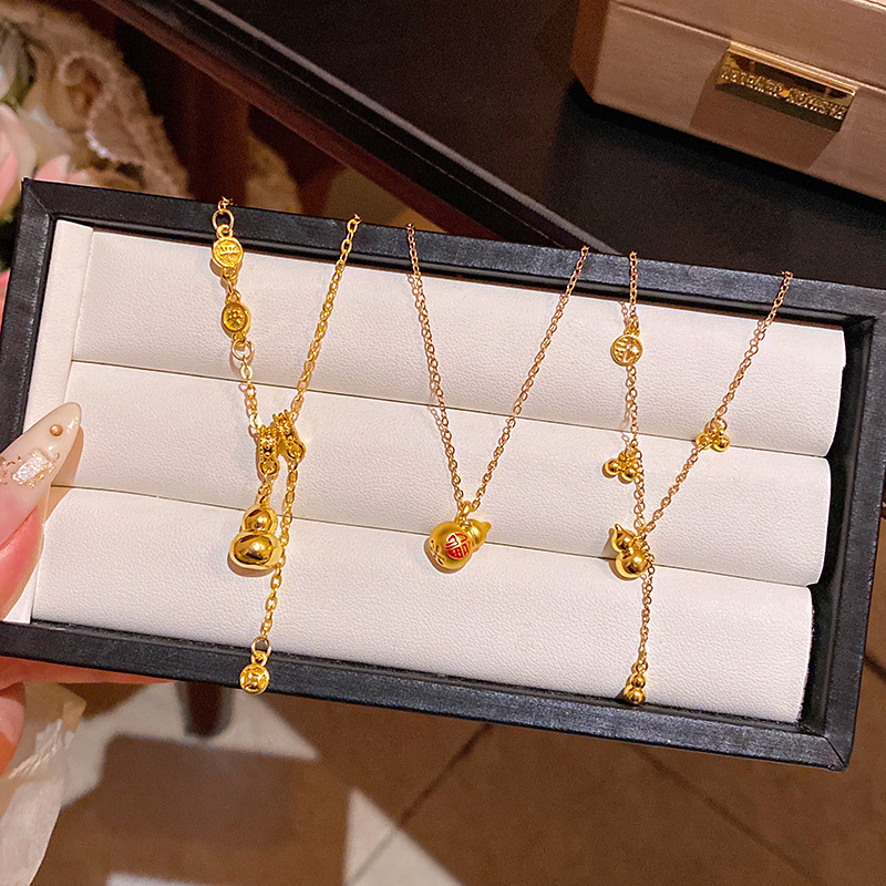 18K真金电镀福字葫芦吊坠项链女新中式中古风锁骨链网红同款颈链