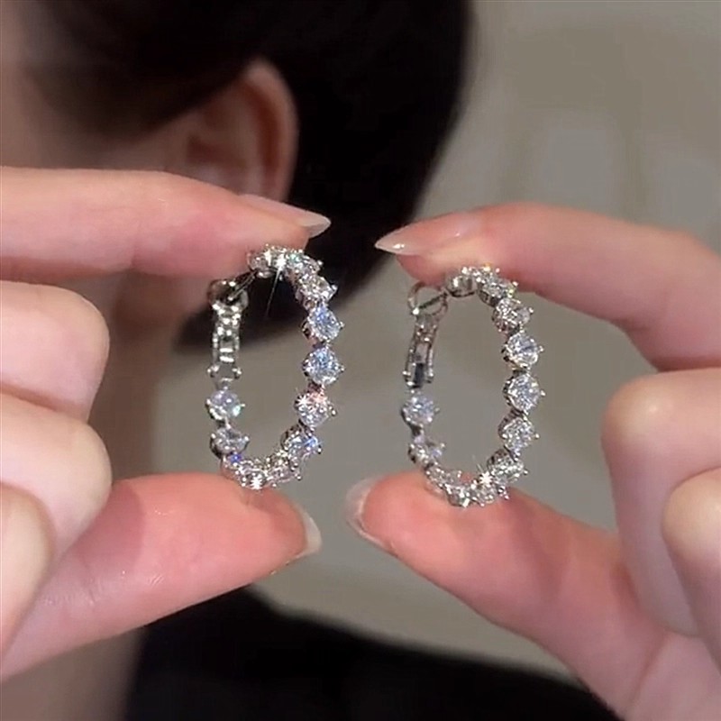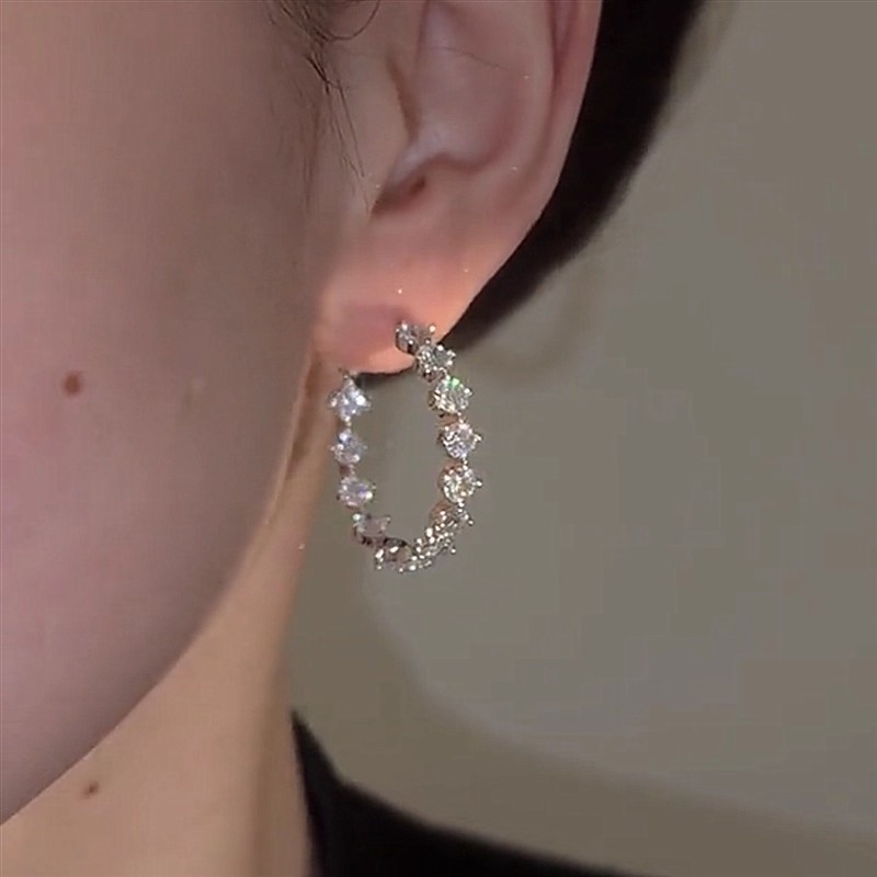 轻奢小众高级感爆闪满锆耳圈耳环时尚百搭气质个性大圆圈耳钉耳饰