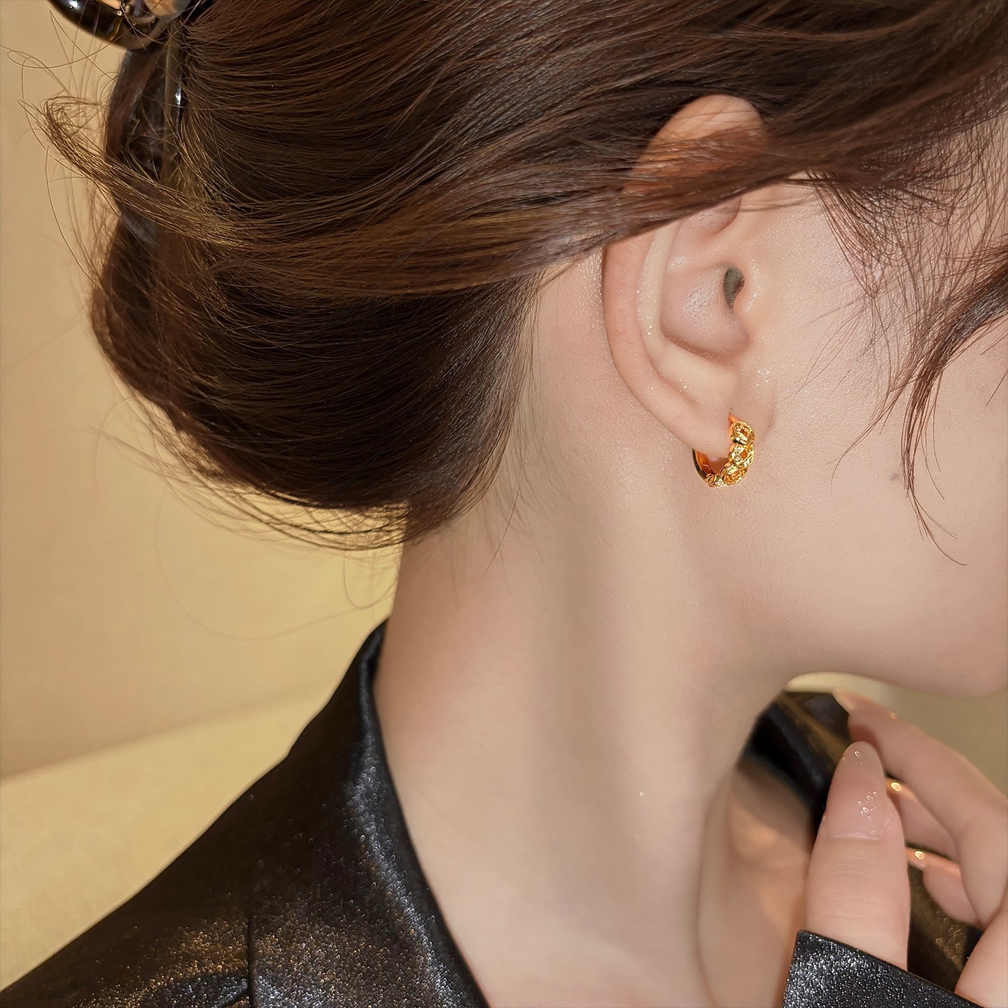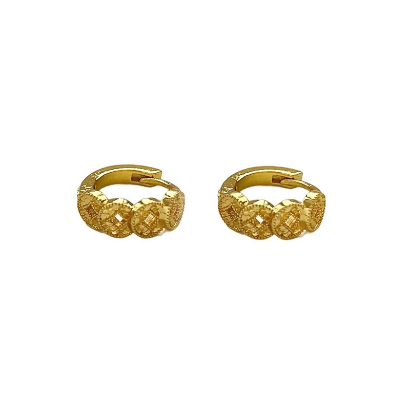 新中式国风碎碎冰五帝钱耳扣耳环女2025新款小圈耳钉高级感耳饰品