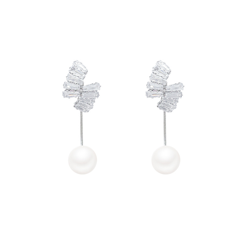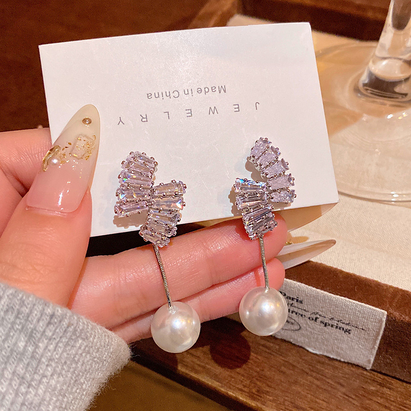 爆闪锆石几何形耳钉女轻奢小众高级感一款两戴珍珠流苏耳环耳饰品